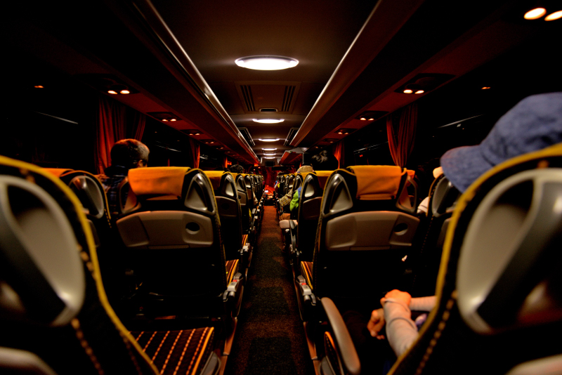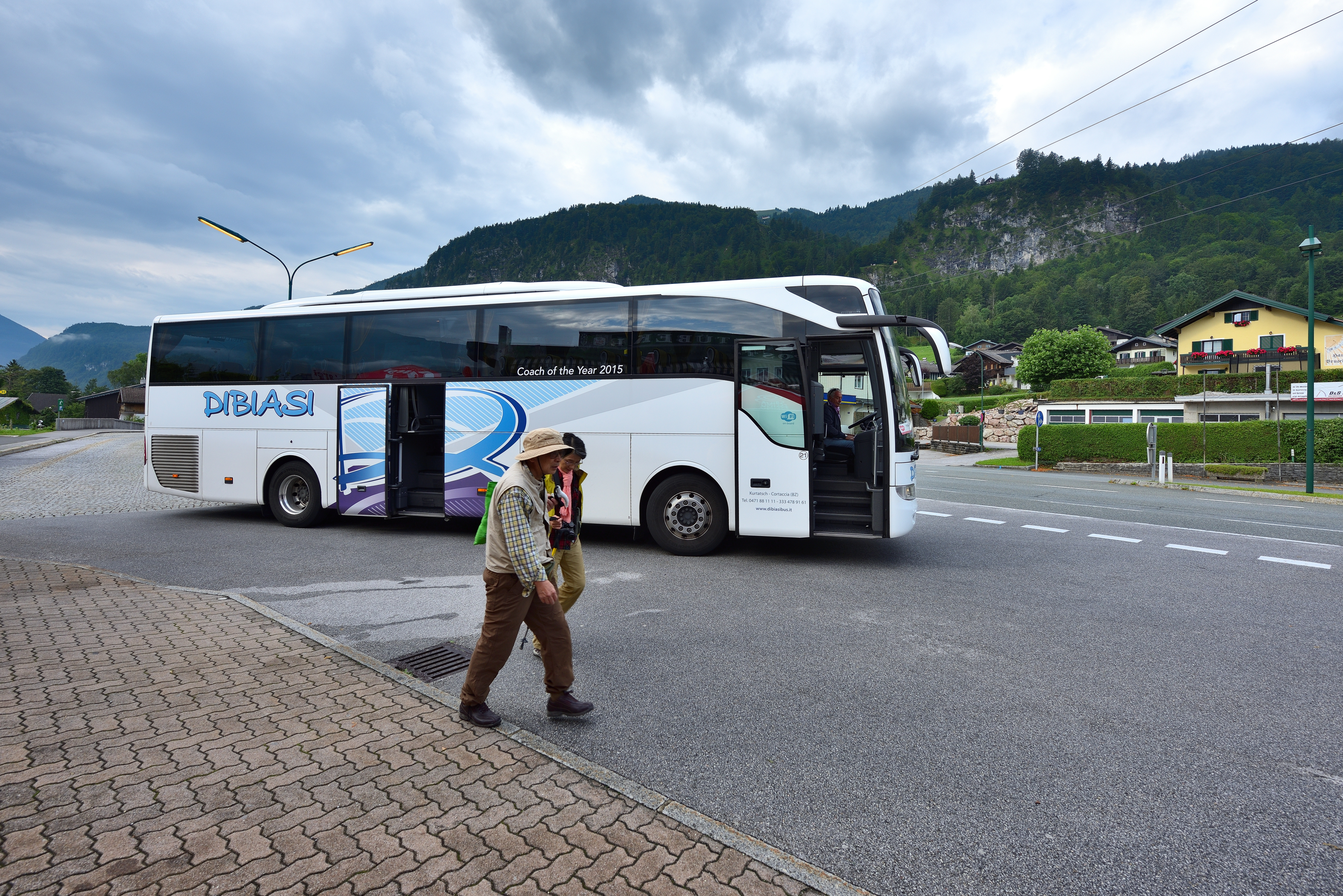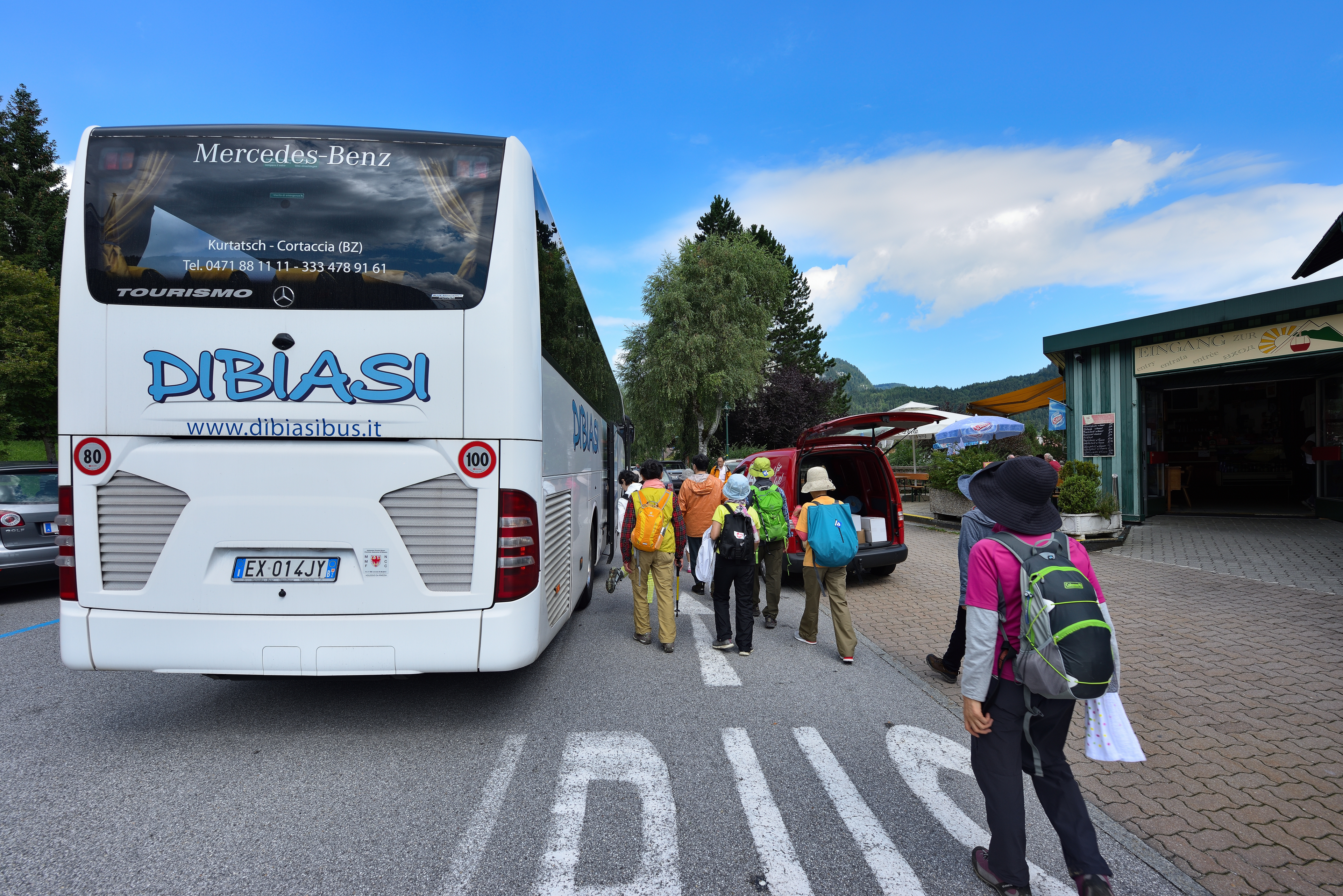 観光のため、昨夜から駐車中のバスへ向かう (7:49)