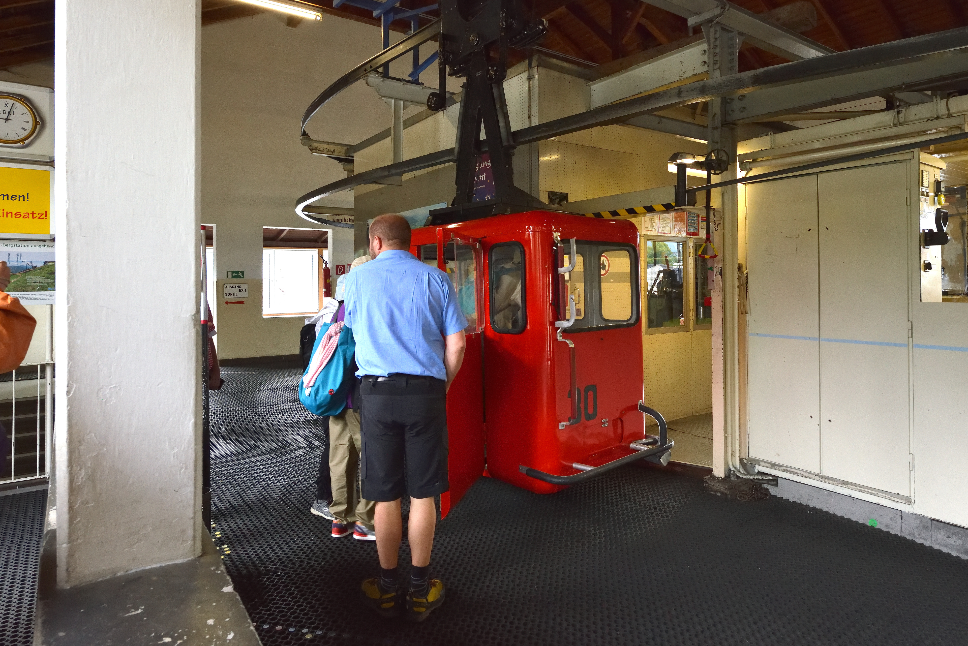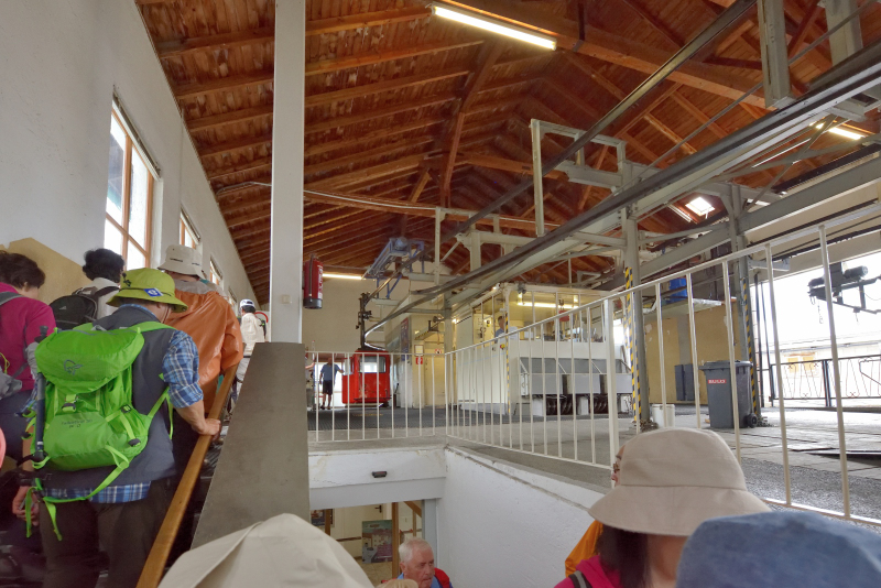 中央部の通路から二階に上がり、ゴンドラの搭乗に向かう。