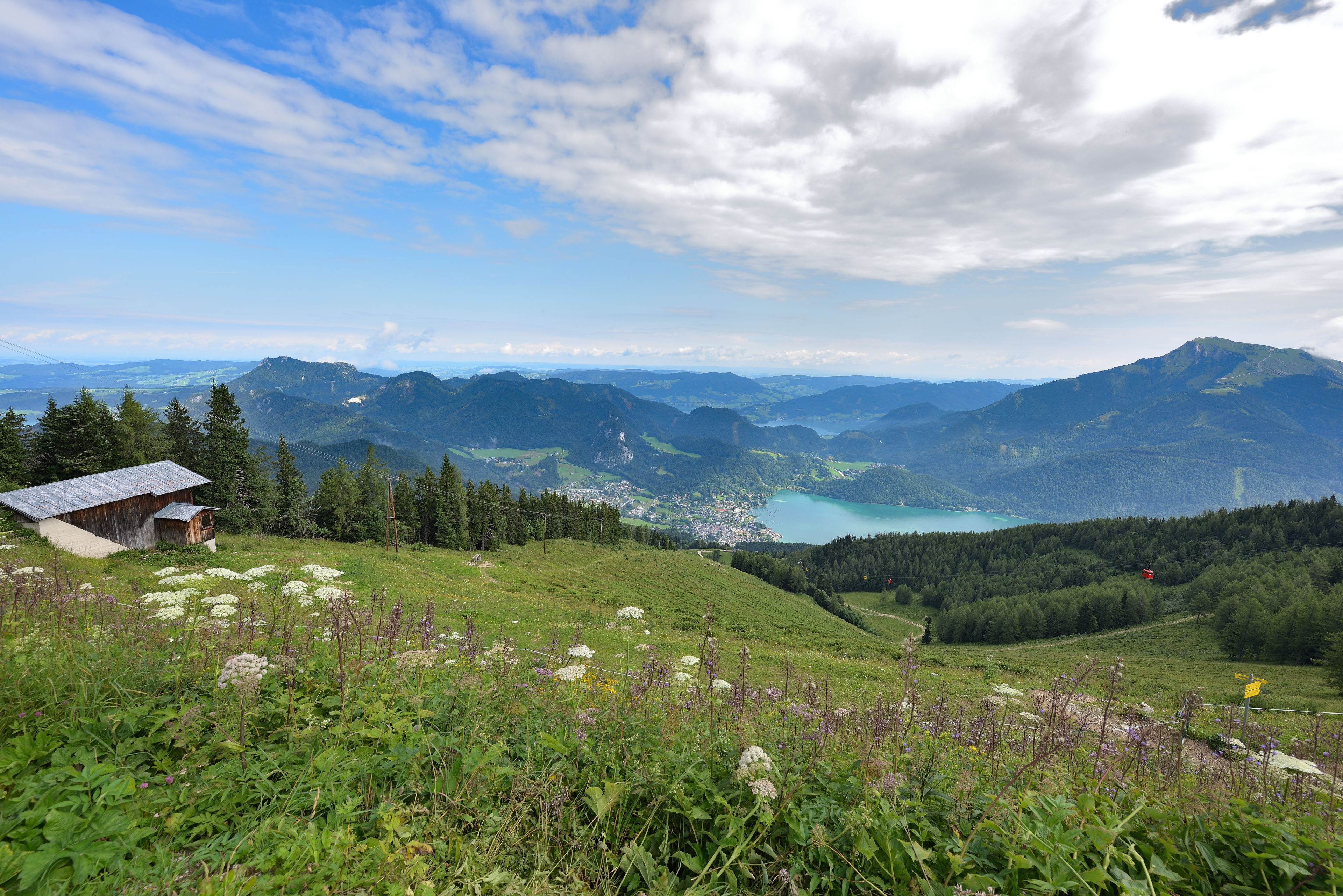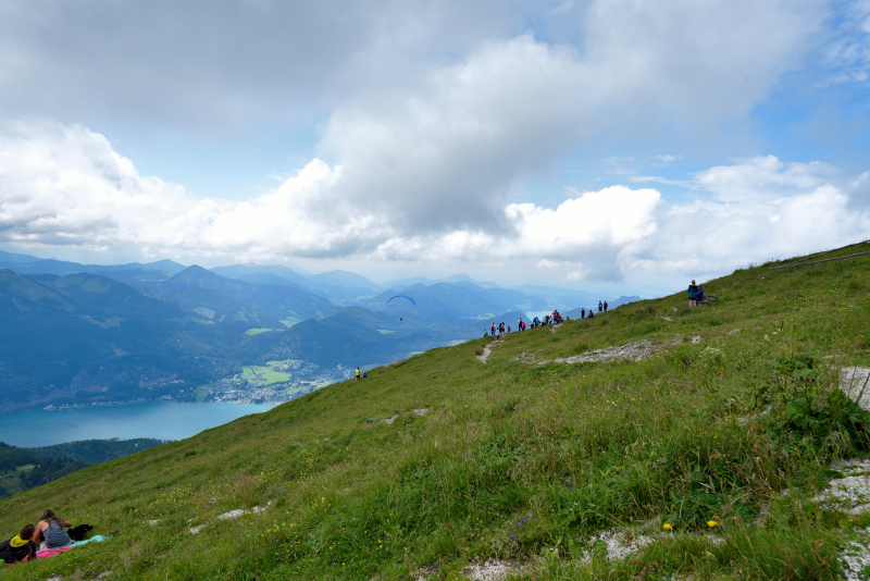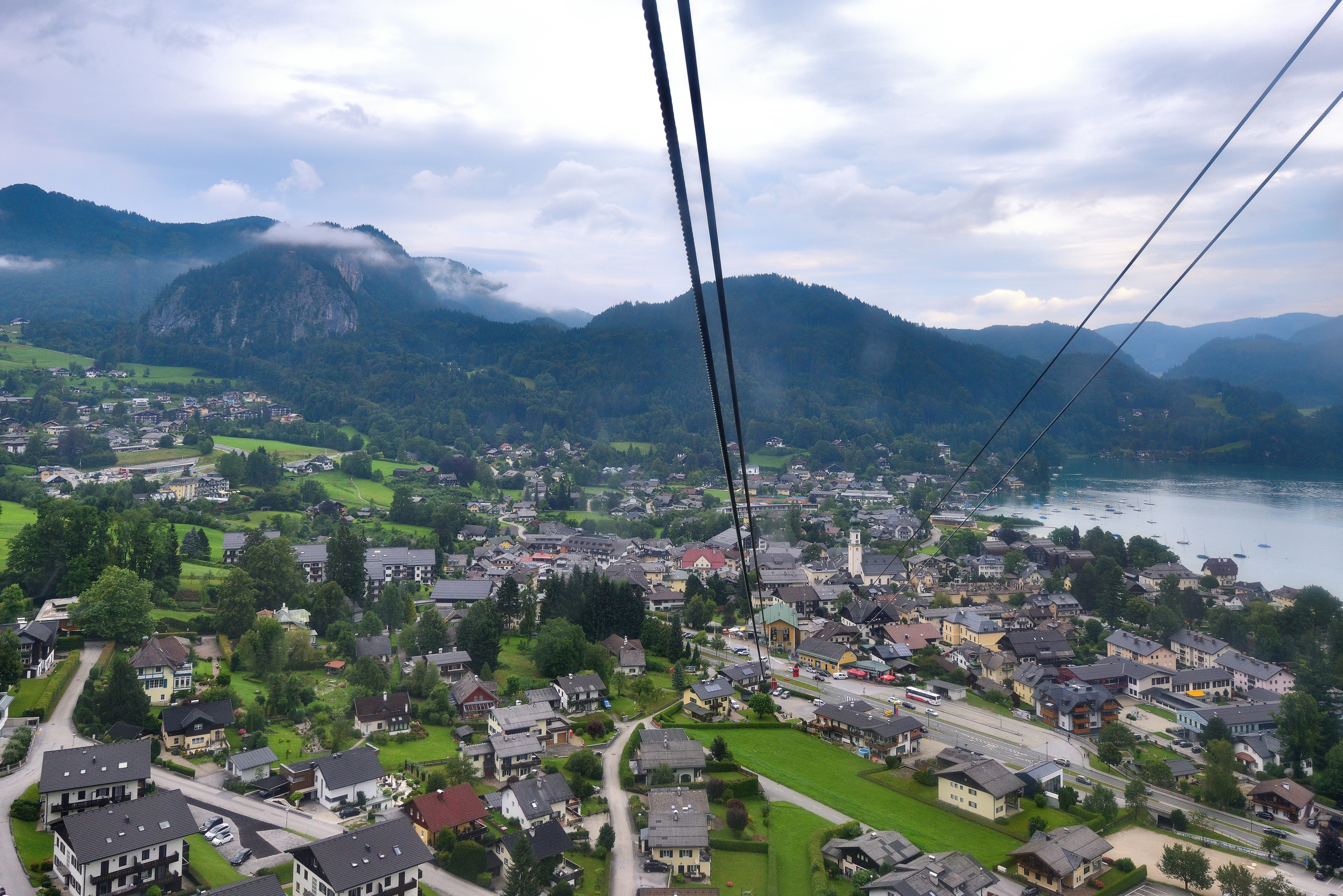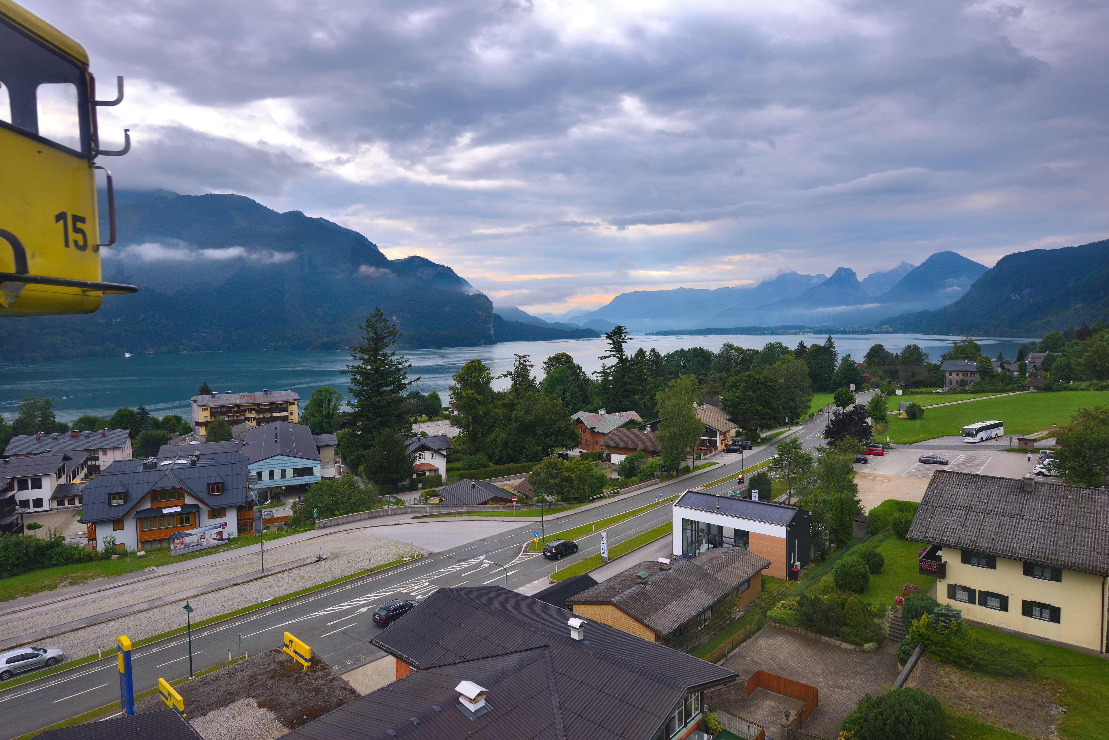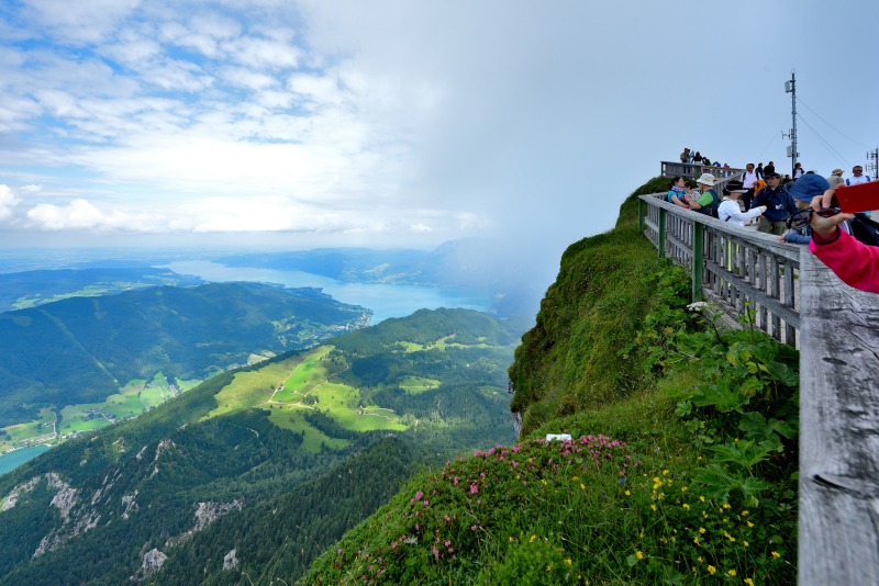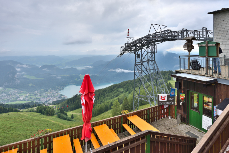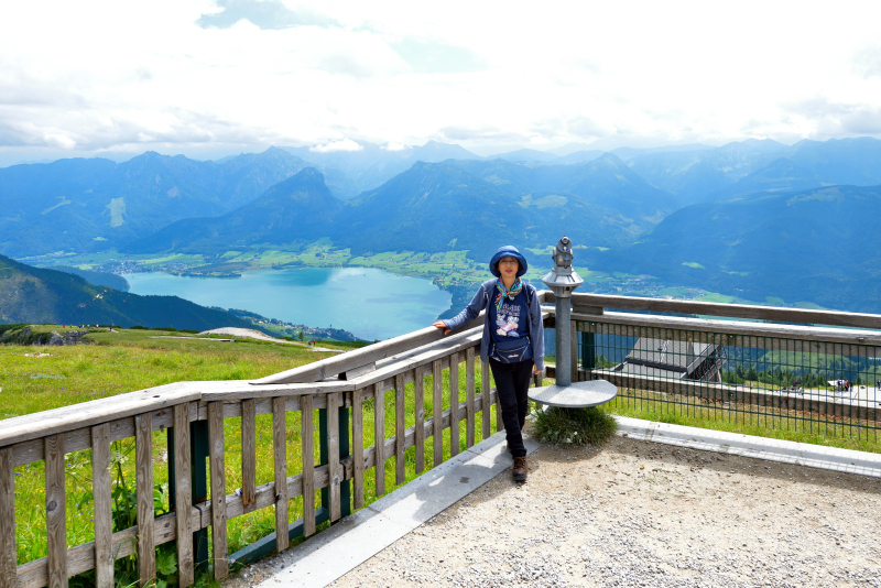 眼下に見えるのは、ヴォルフガング湖 [Wolfgangsee] と、その北西湖畔に位置するザンクト ギルゲン [Sankt Gilgen] の町。