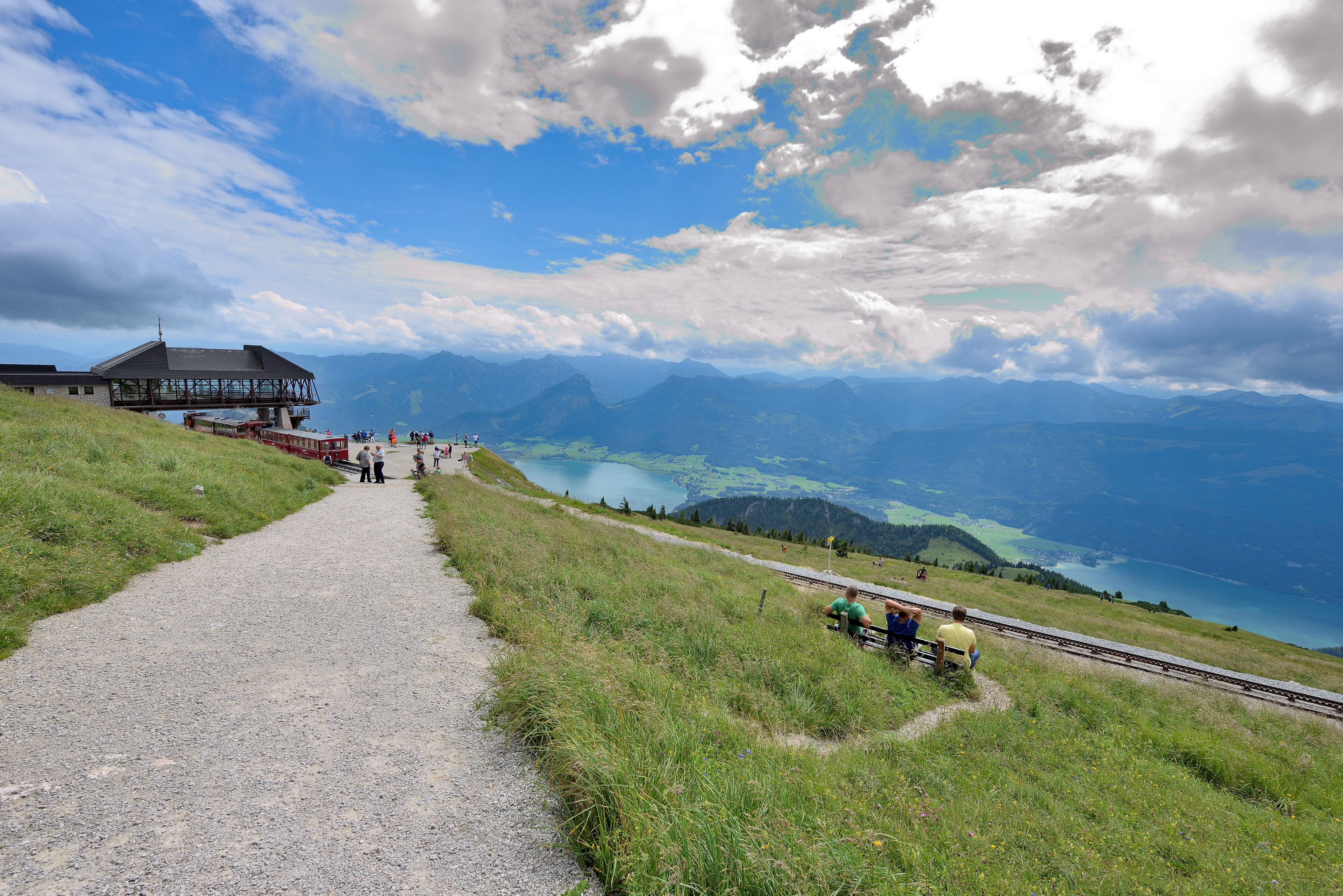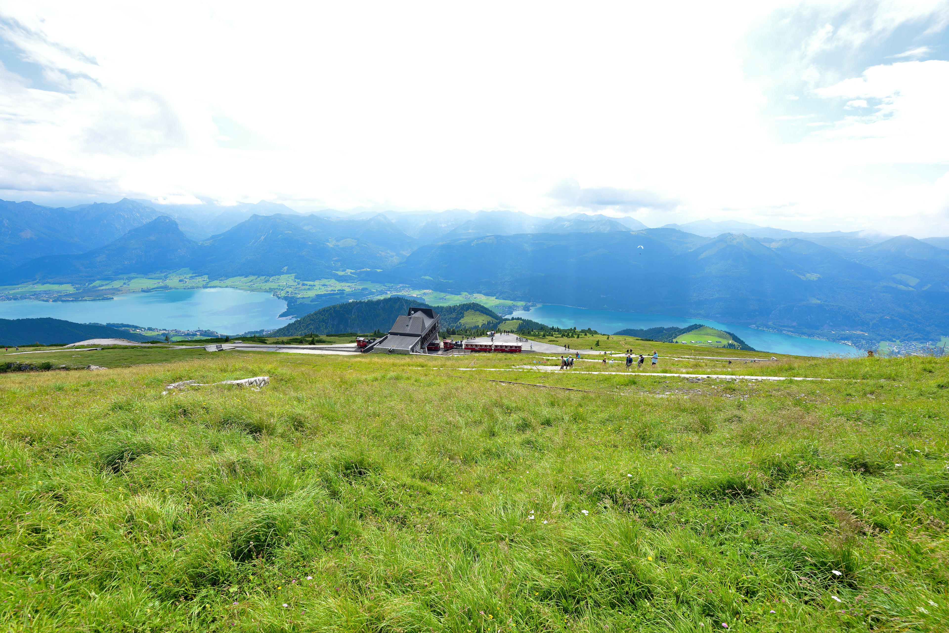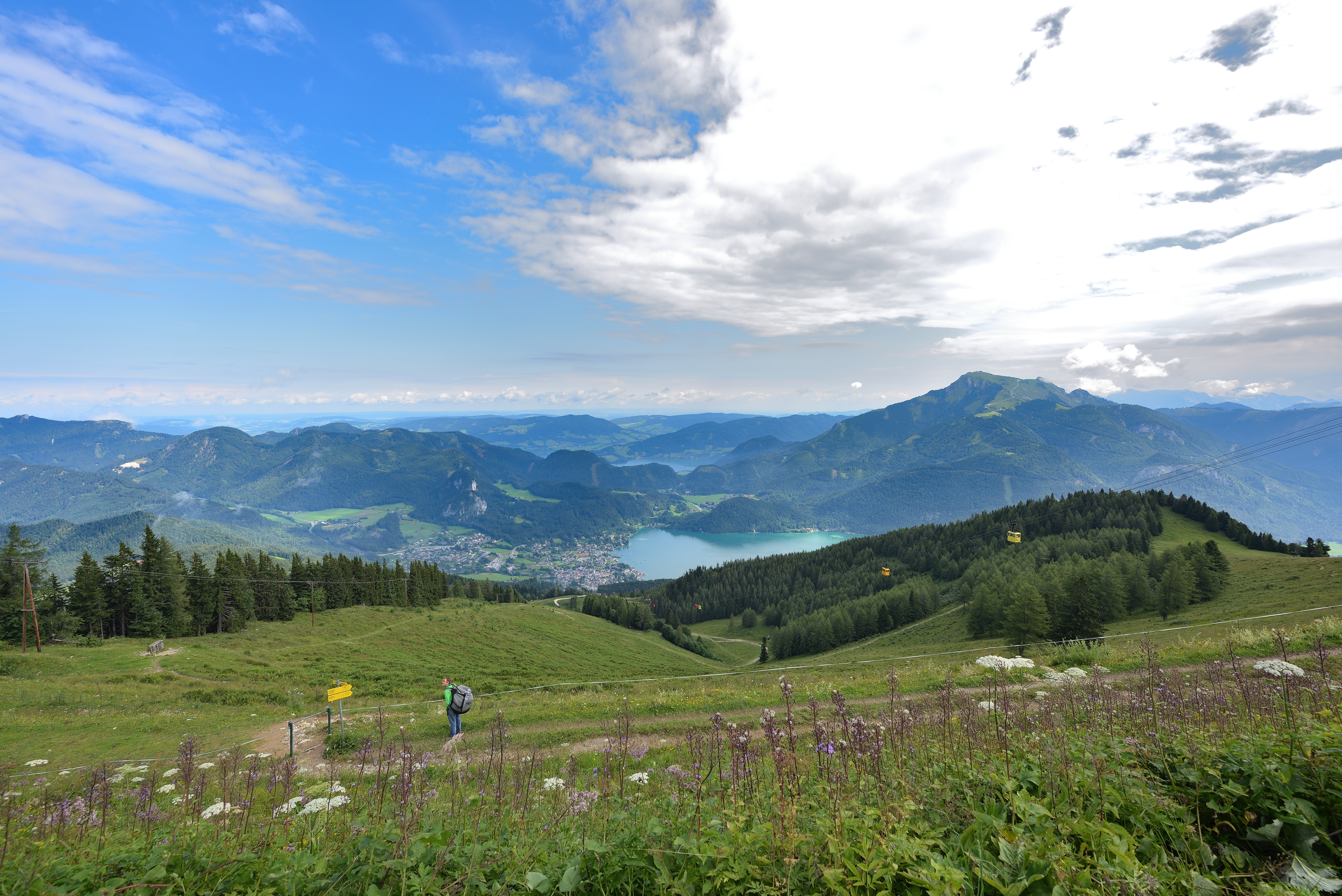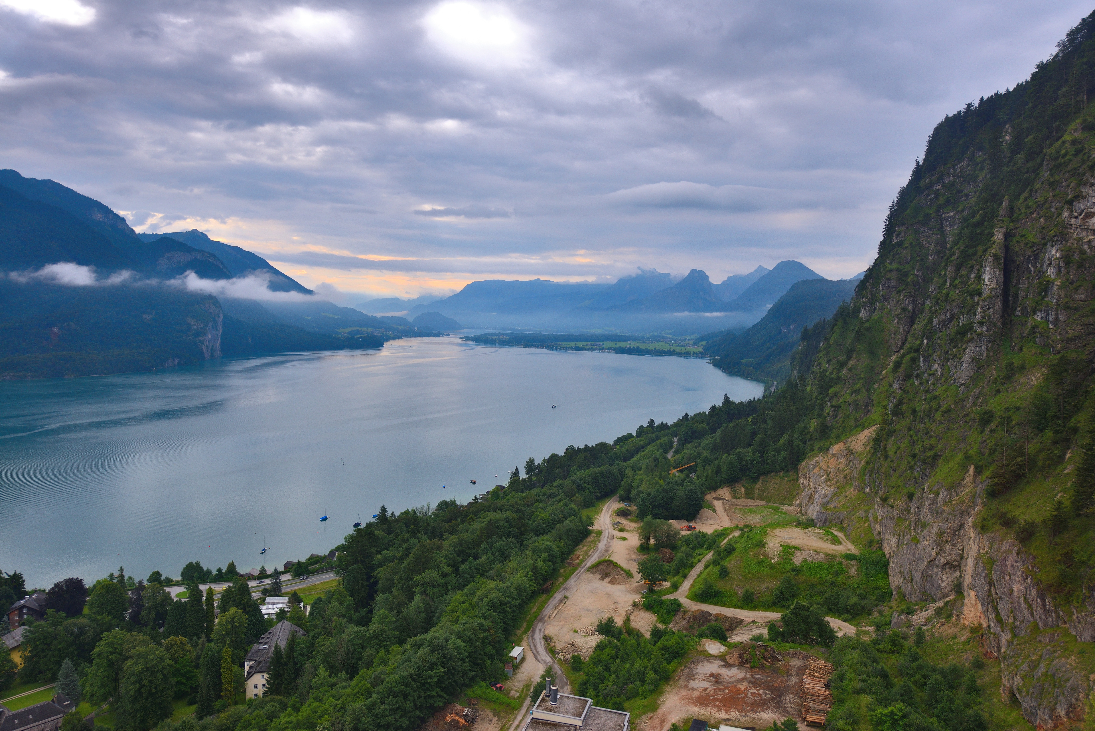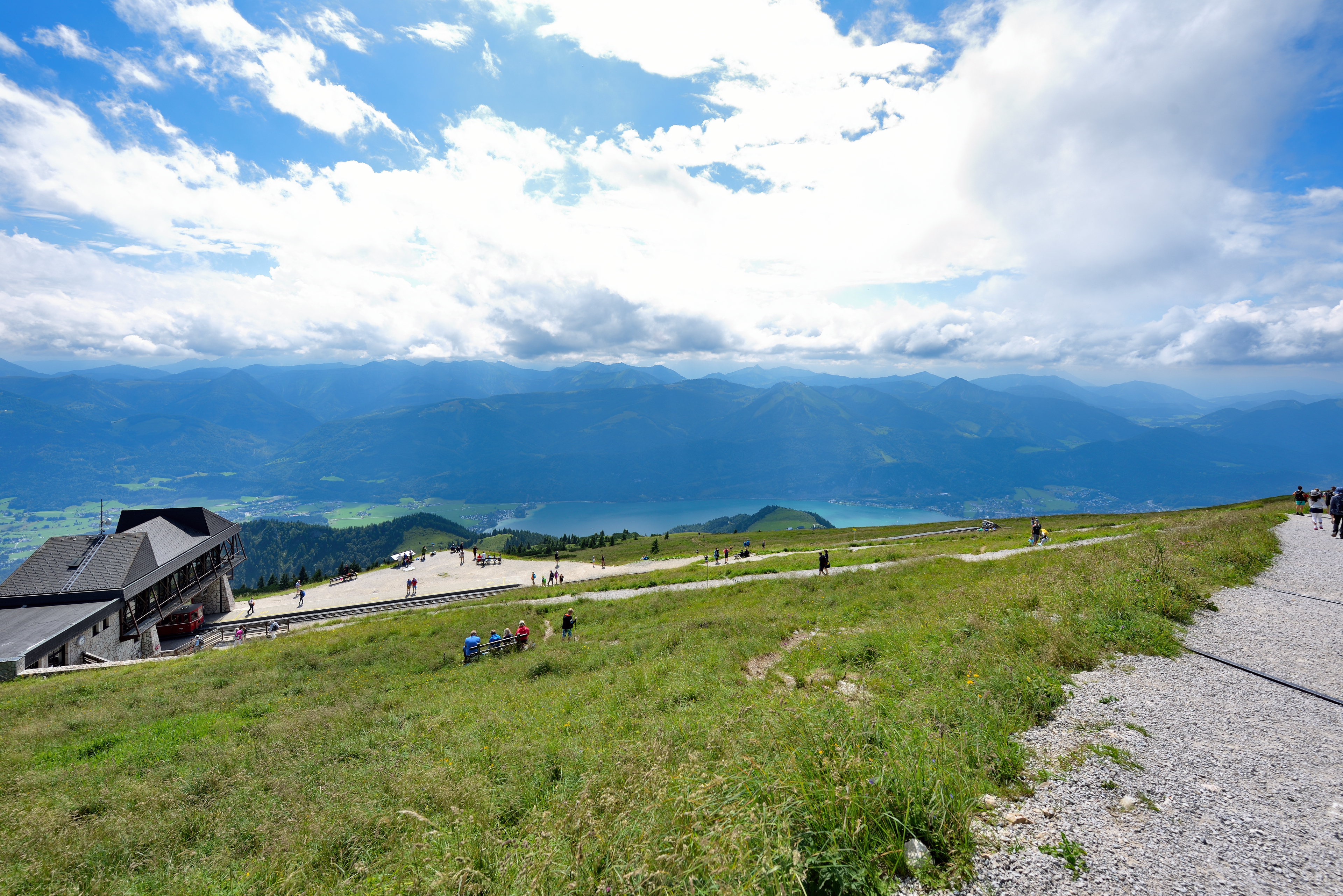 眼下に見えるのは、ヴォルフガング湖 [Wolfgangsee] と、その北西湖畔に位置するザンクト ギルゲン [Sankt Gilgen] の町。
