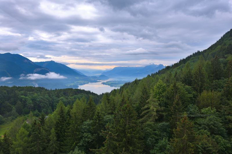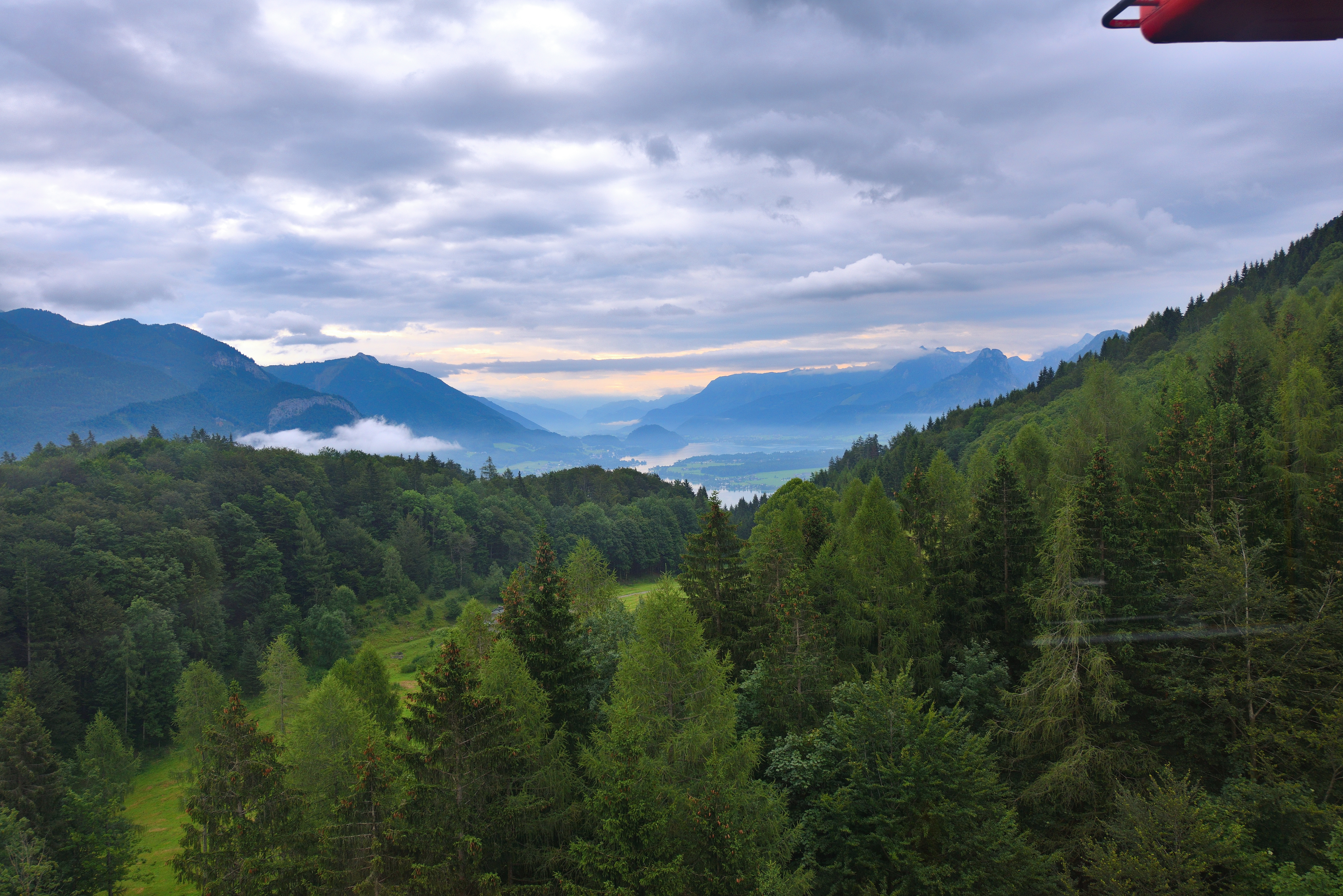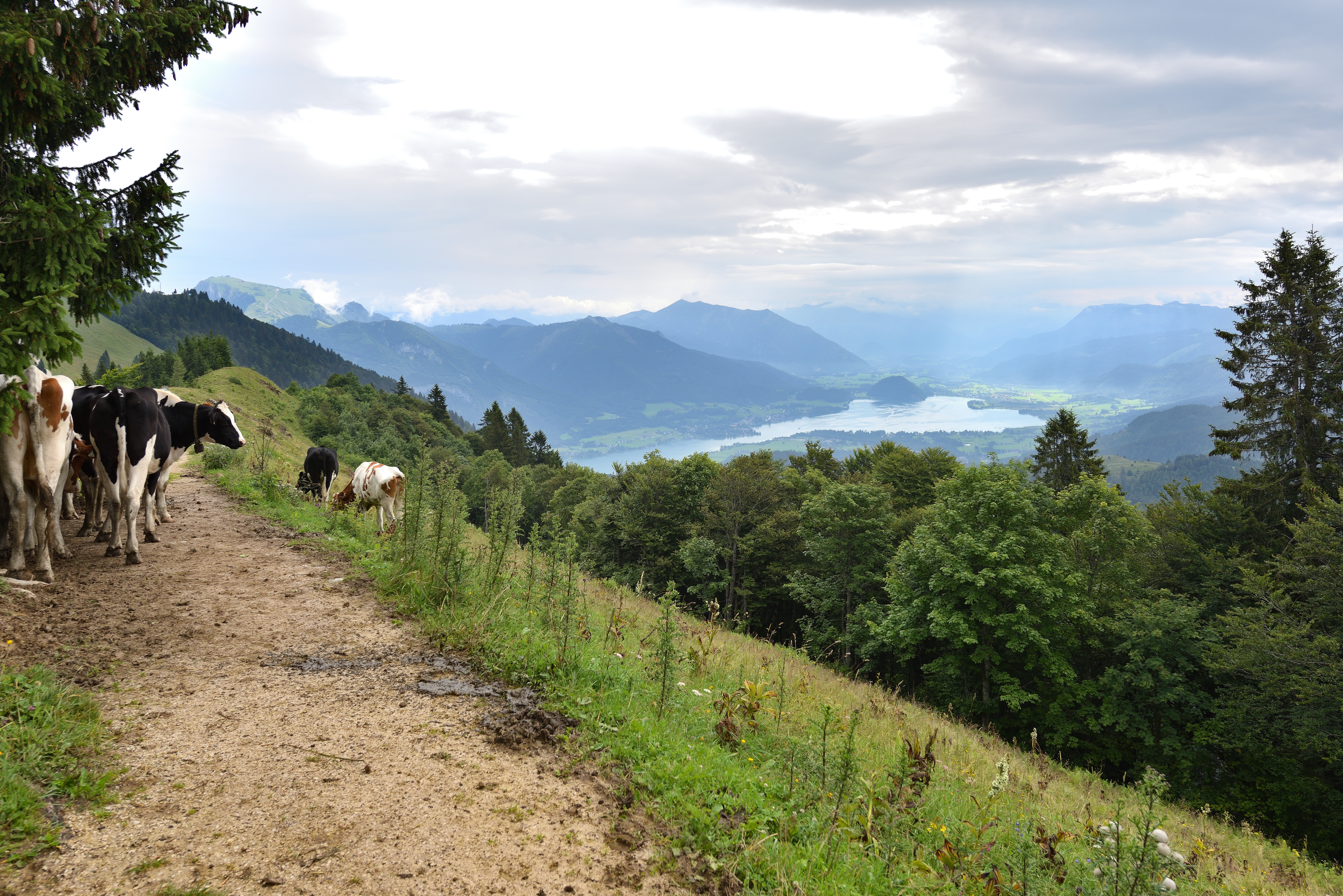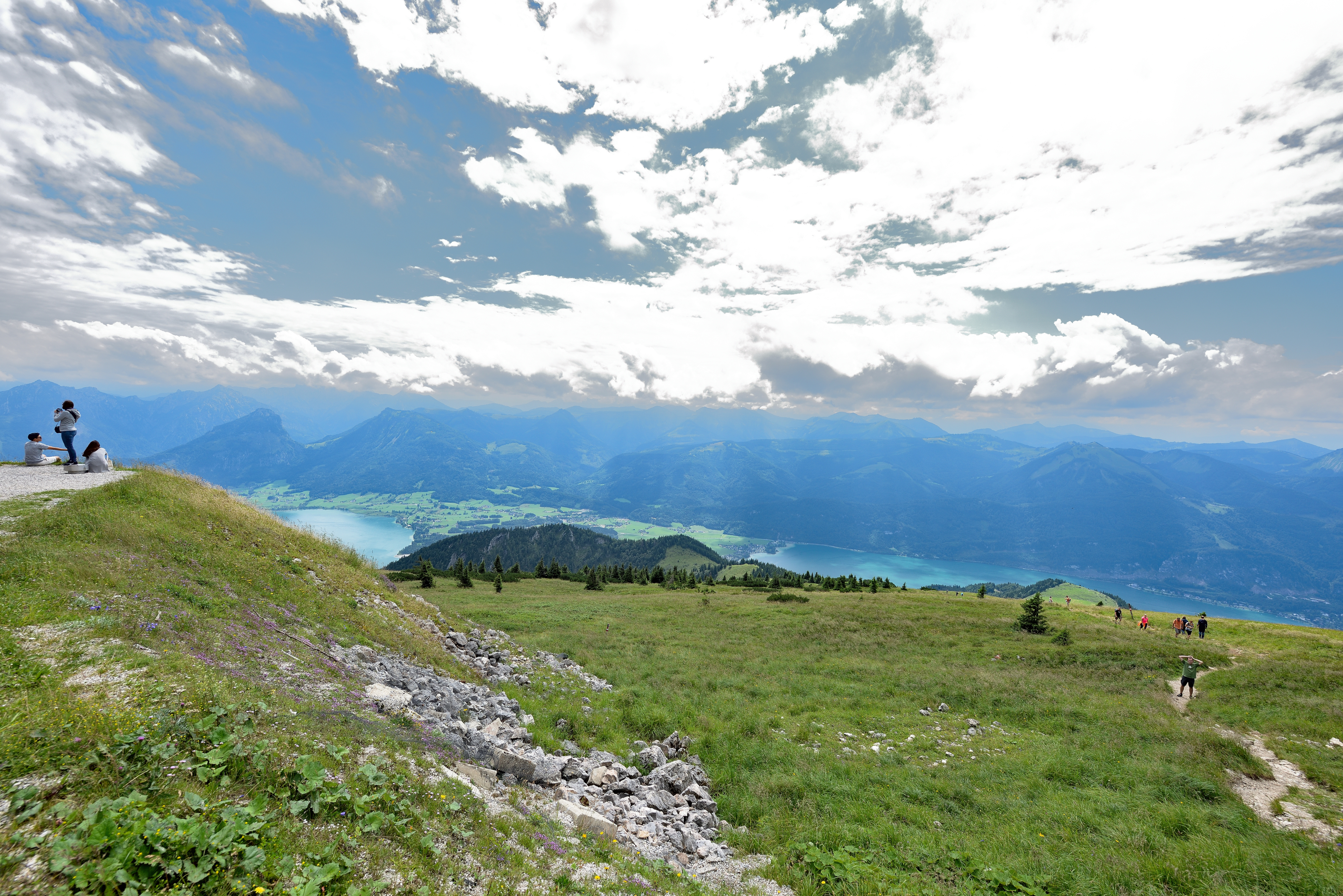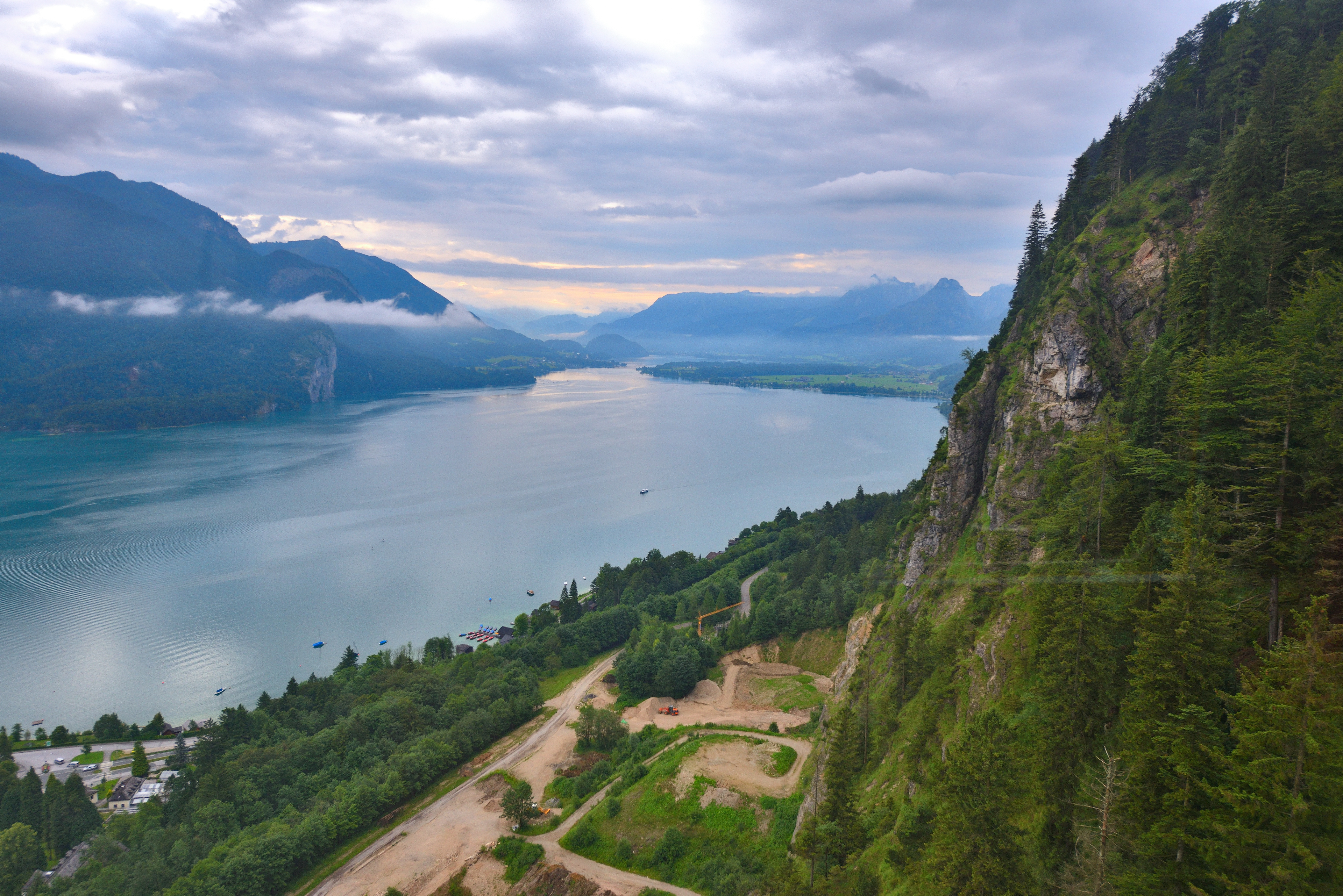 眼下に見えるのは、ヴォルフガング湖 [Wolfgangsee] と、その北西湖畔に位置するザンクト ギルゲン [Sankt Gilgen] の町。