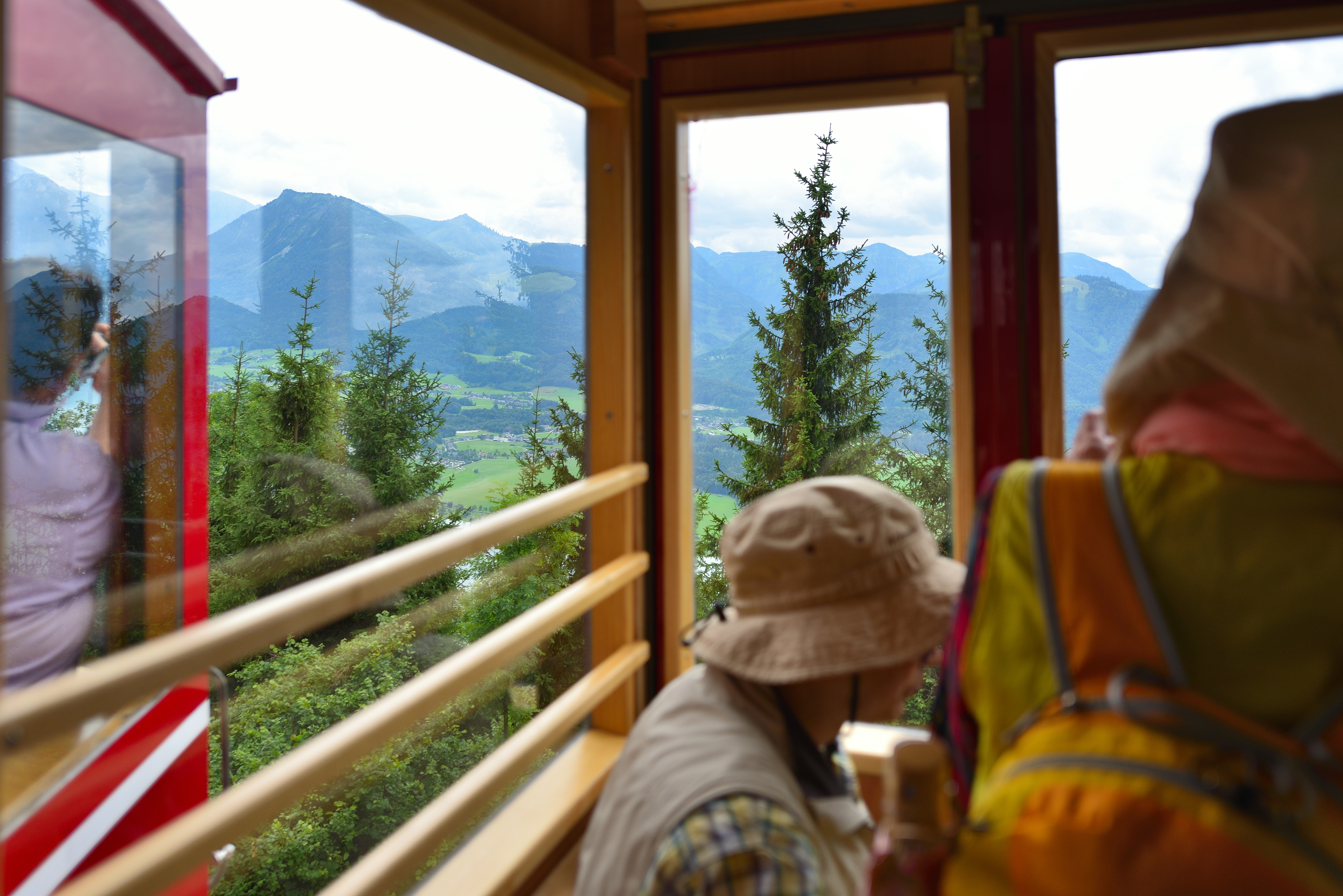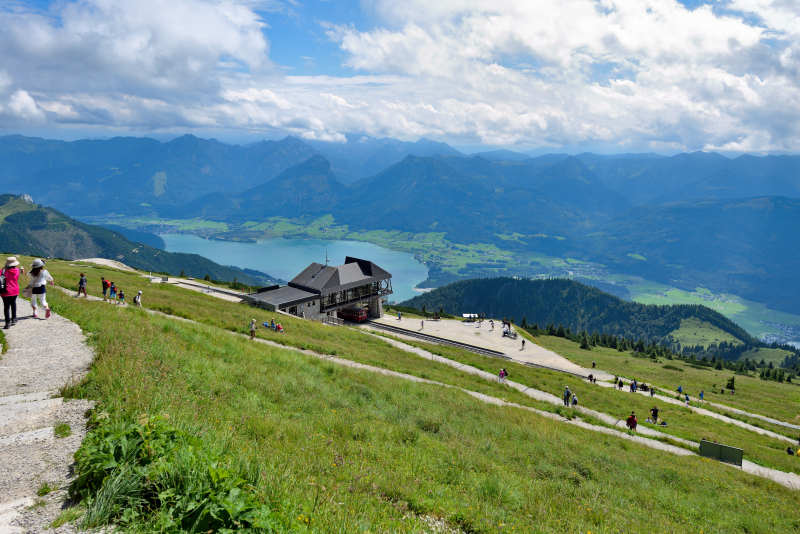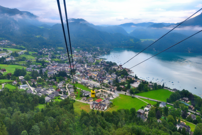 ヴォルフガング湖 [Wolfgangsee] とザンクト ギルゲン[Sankt Gilgen] の町並みを眺めながら頂上駅へ向かう。