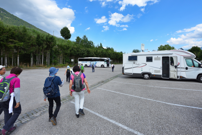 観光のため、昨夜から駐車中のバスへ向かう (7:50)