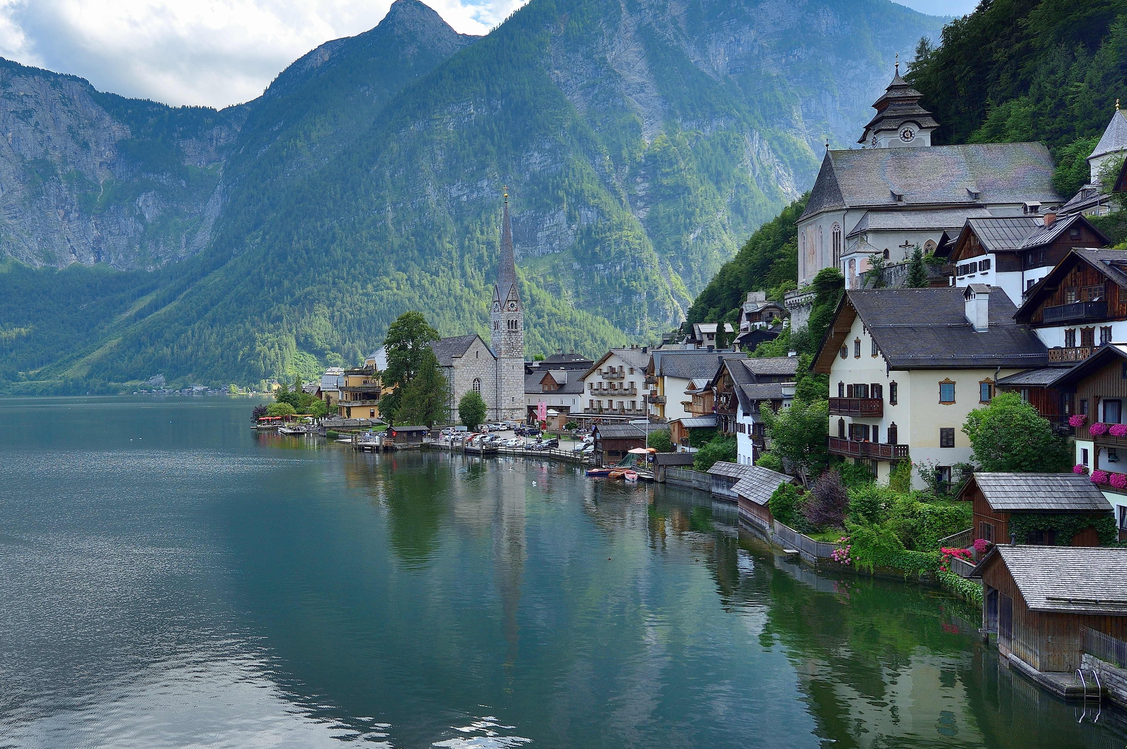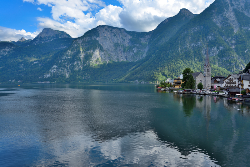 ハルシュタット湖にしがみつく様に建つ美しい町並み。