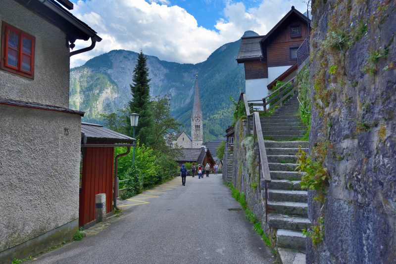 世界で一番美しい湖岸の町といわれるハルシュタット。 ゴーザウミュール通り [Gosaumühlstraß] からの眺め。