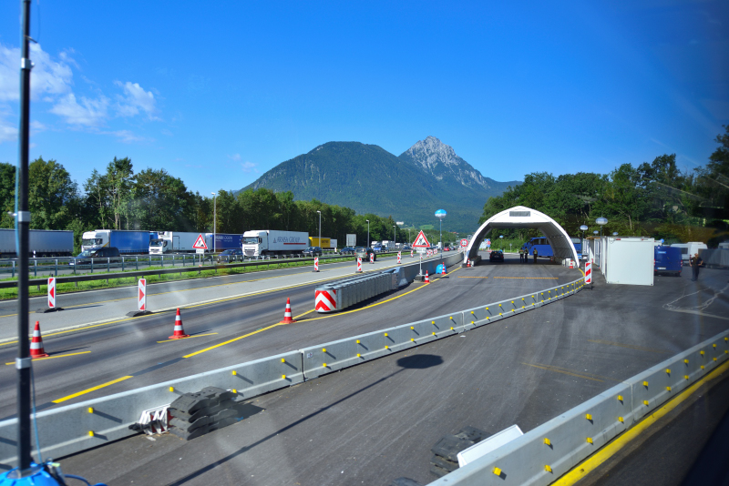 | 検問所 (09:22) 密輸業者や不法入国難民を対象とした検問所。 シェンゲン協定は、加盟国間の国境検査を原則廃止し、人や物の自由な移動を認めるものであるが、これにより域外からの不法入国や域内での密輸、難民問題への対処が複雑化している。 通常は国境管理のないシェンゲン協定加盟国であるドイツおよび他の国々は、100万人を超える難民や移民が欧州に流入した事により、2015年に緊急国境管理を導入した。 「西」 |