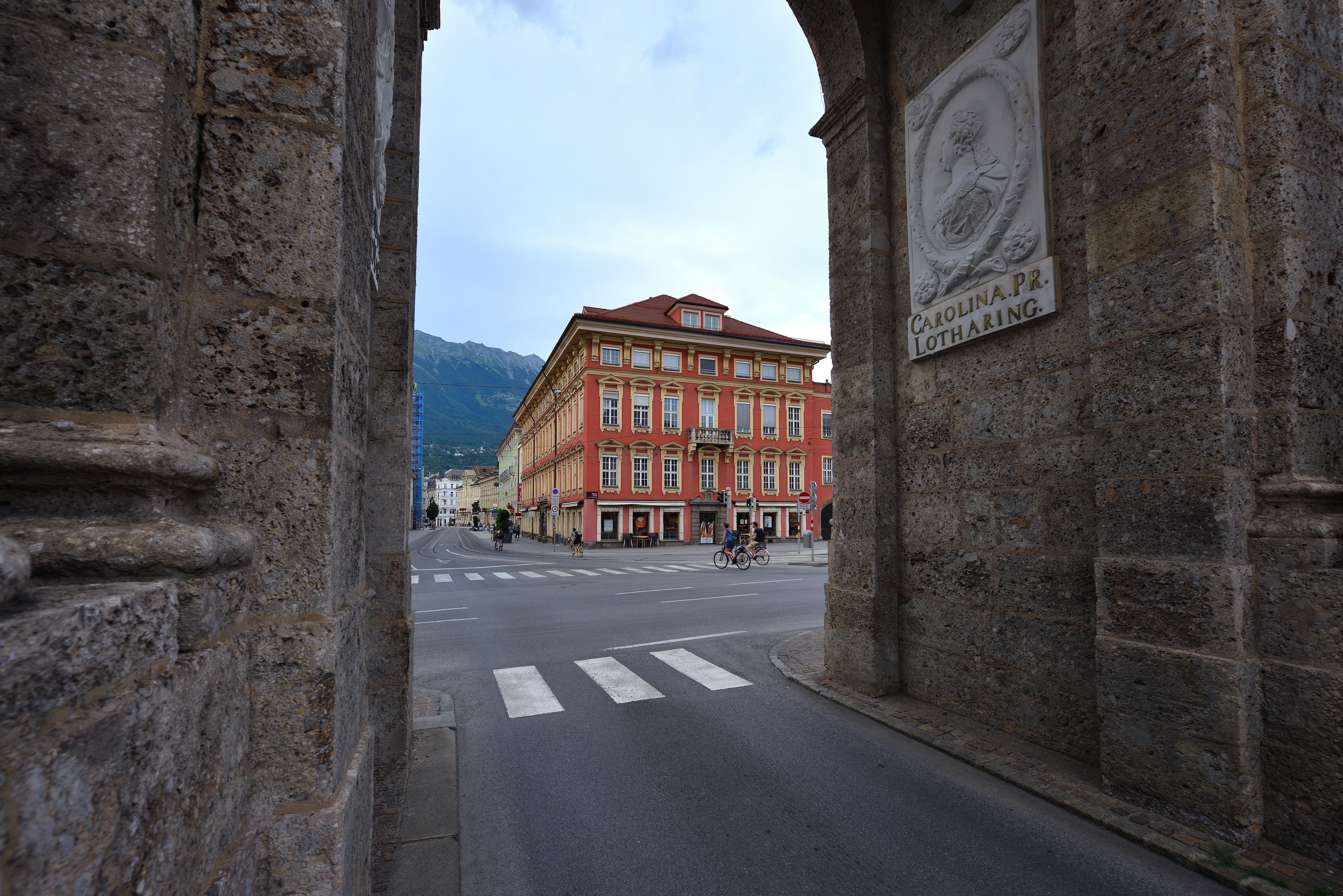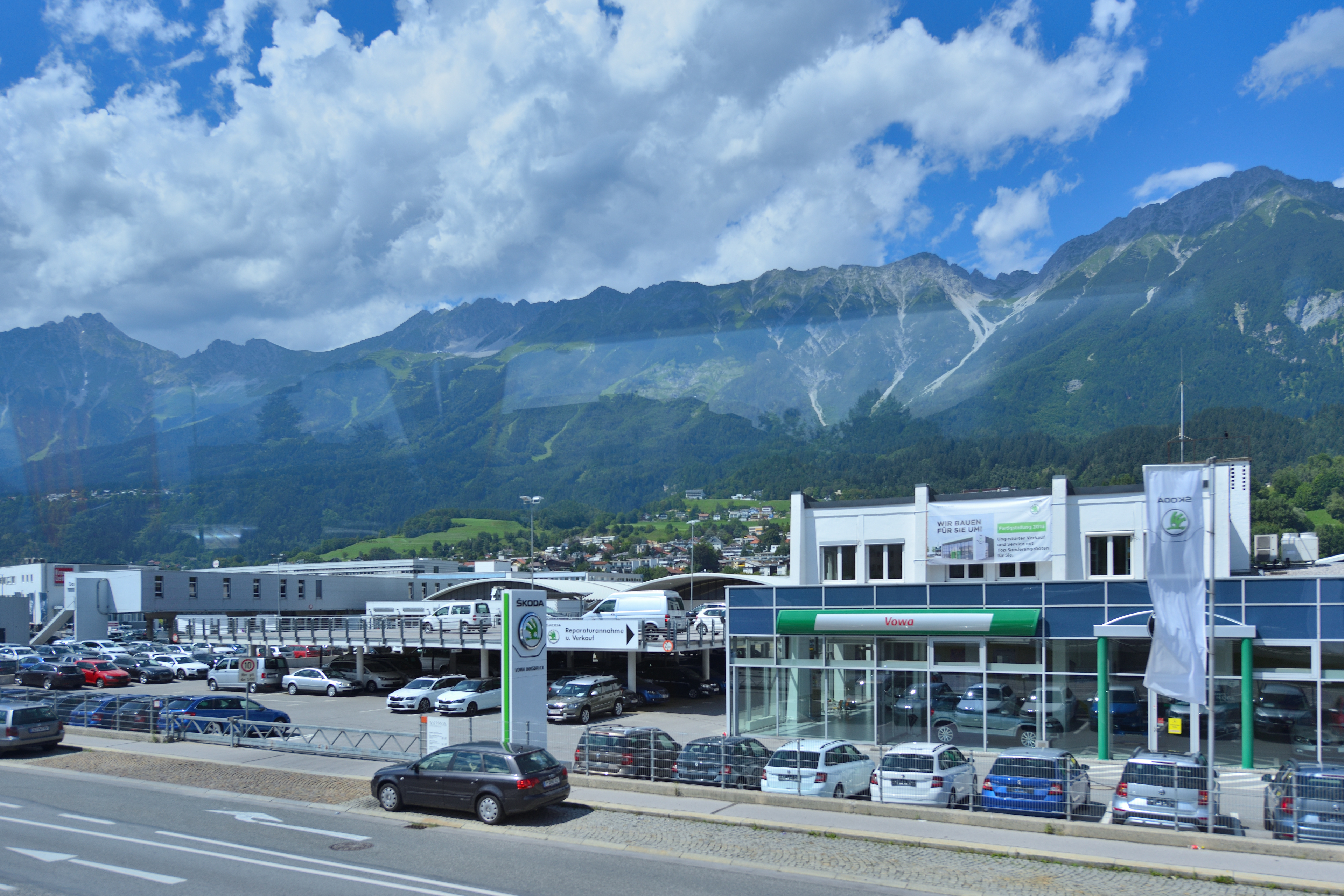 | イン橋 [Innbrücke] (11:19) 橋の下を通る道路は、イン渓谷高速道路 [Inntal Autobahn = Inn Valley Autobahn] 。 「南西」 |