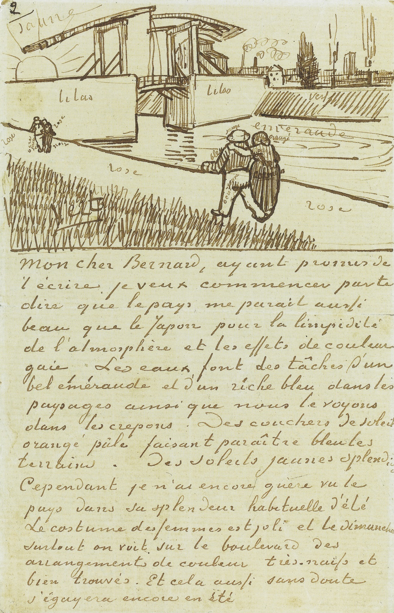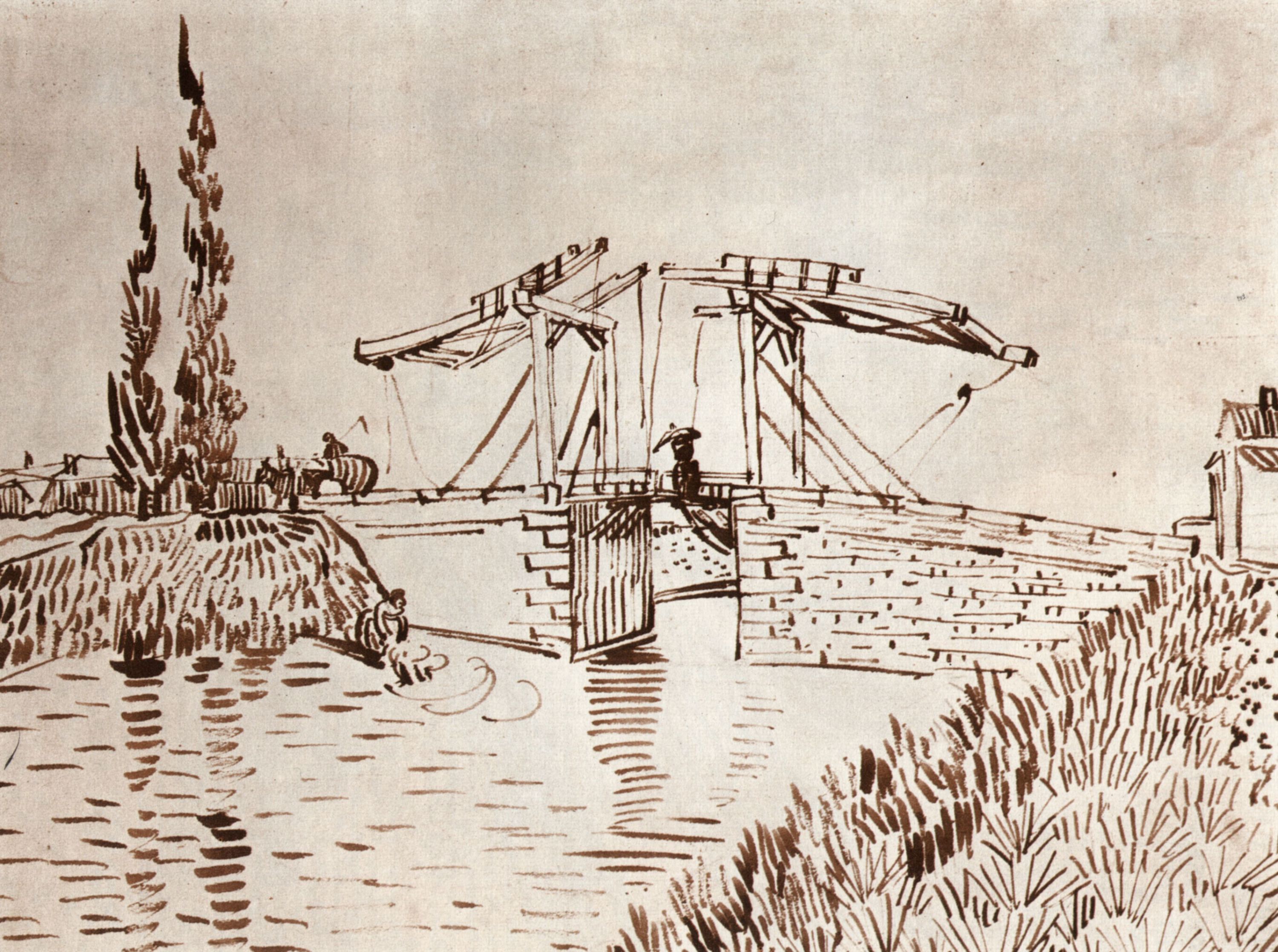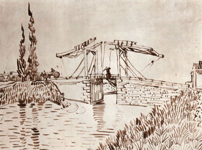 ゴッホが、画家エミール・ベルナール [Émile Bernard] に送った手紙に添えられた、 跳ね橋のスケッチ。