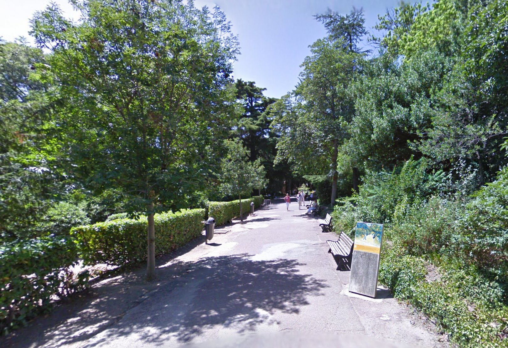 publics à Arles" を描いた場所。 (MAP) 右手に見えるパネルは、ゴッホが描いた作品 "L'entrée des jardins publics à Arles" の解説パネル。 (画像出典:Google) |