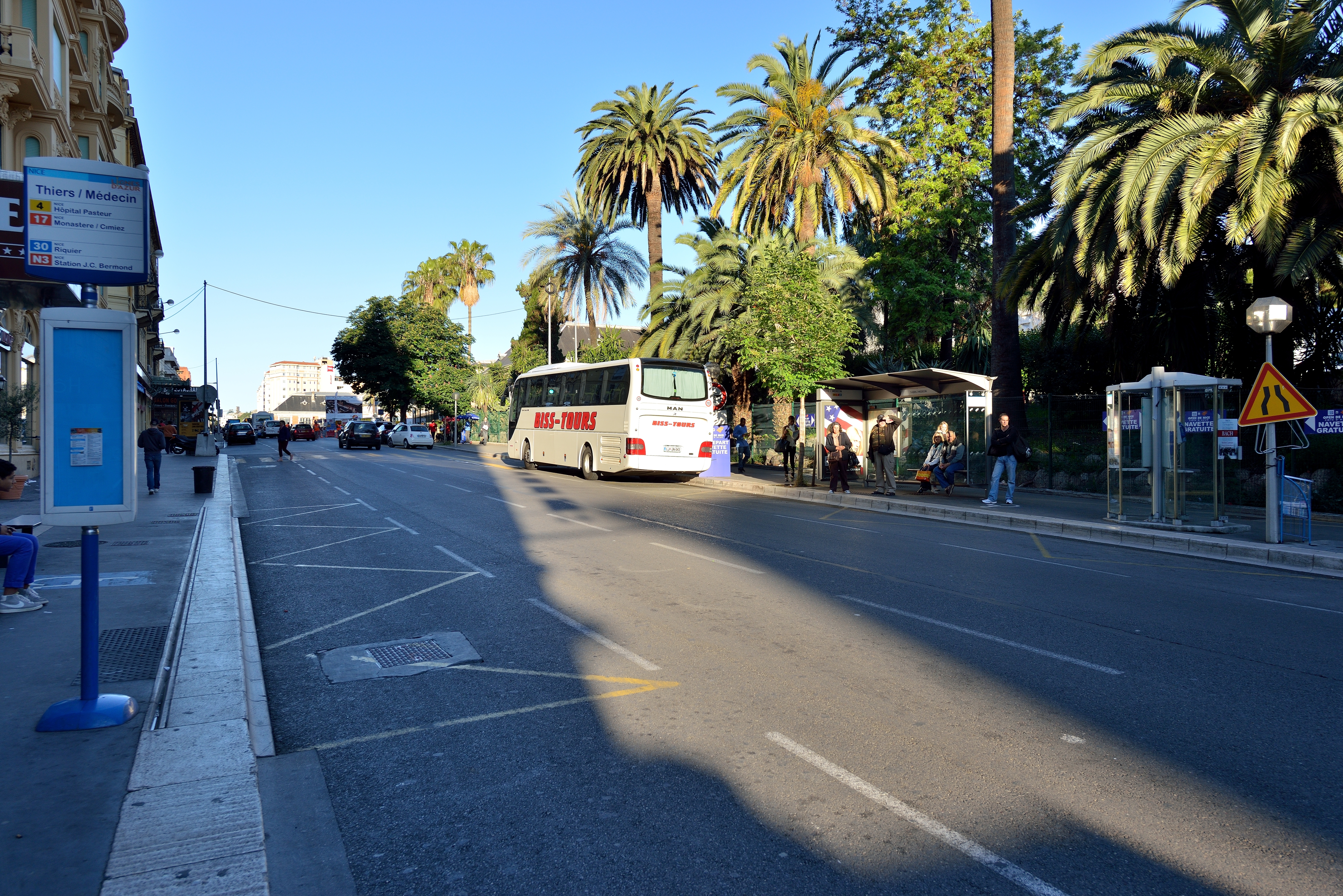 | ティエール通り [Avenue Thiers] (ホテル周辺を散策) (07:11) ニース駅前通り。 「西」MAPLay. A |