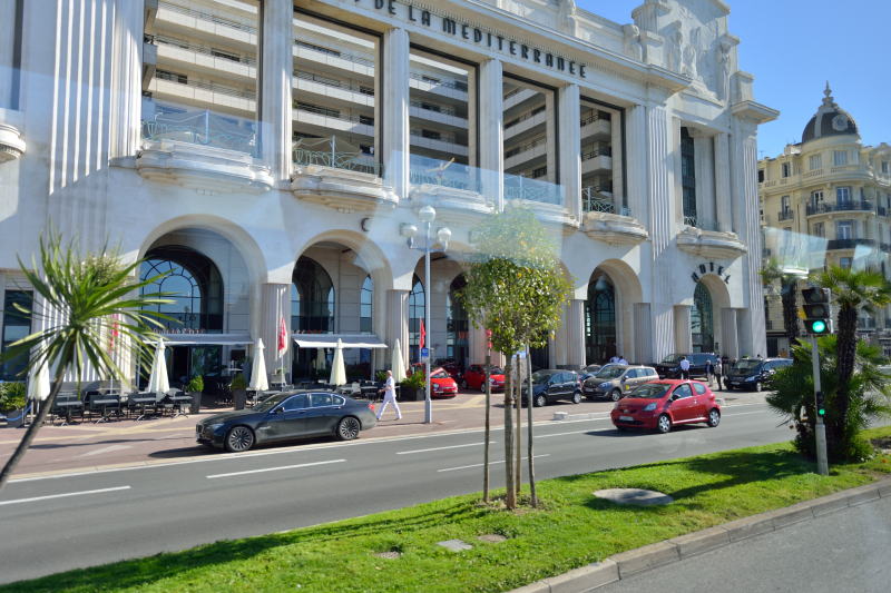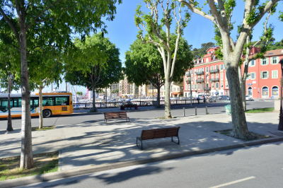 | プロムナード・デ・ザングレ [Promenade des Anglais] (18:30) プロムナートは散歩を、、アングレはイギリス人を意味し、"イギリス人の遊歩道" とか "英国人の散歩道" と呼ばれている。 この名の由来は、イギリス人の利用者が多いと言うこともあったが、元々は19世紀の頃、北ヨーロッパが寒波に見舞われ、多くの人々は避寒地を求めて南へ移動してきた。 そのためニースには失業者が増えてしまい、当時ニースに滞在していたイギリス人の牧師 "ルイス・ウェイ牧師" [Reverend Lewis Way] が募金を募り、そのお金を元手に失業者を雇い、海岸通りに2m幅の遊歩道を造ったのが始まり。 その後、ニース市が改修工事を行い、現在ではニース空港から旧市街を結ぶ7kmの海岸通りを "プロムナード・デ・ザングレ" と呼んでいる。 「東」MAPLay. C |