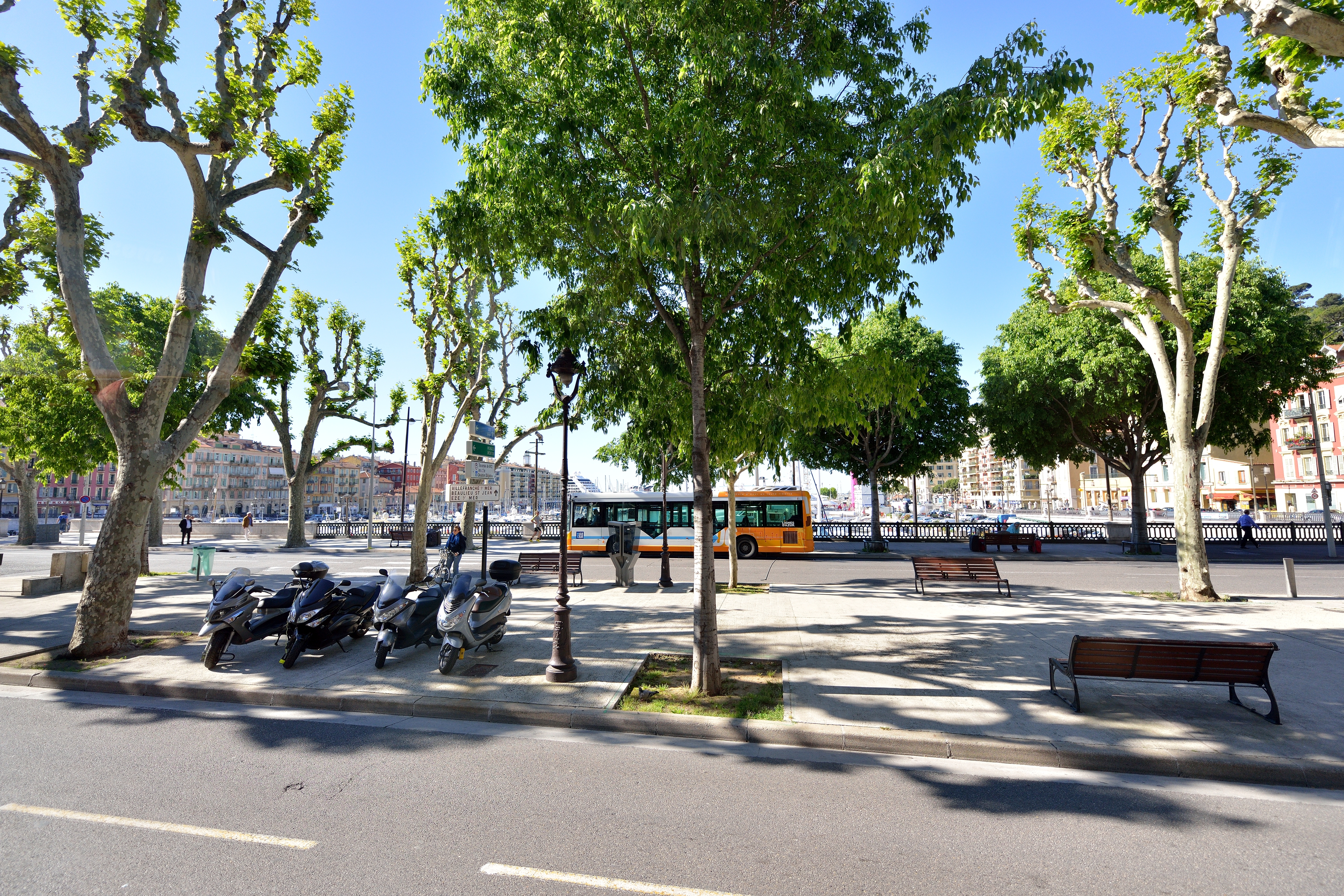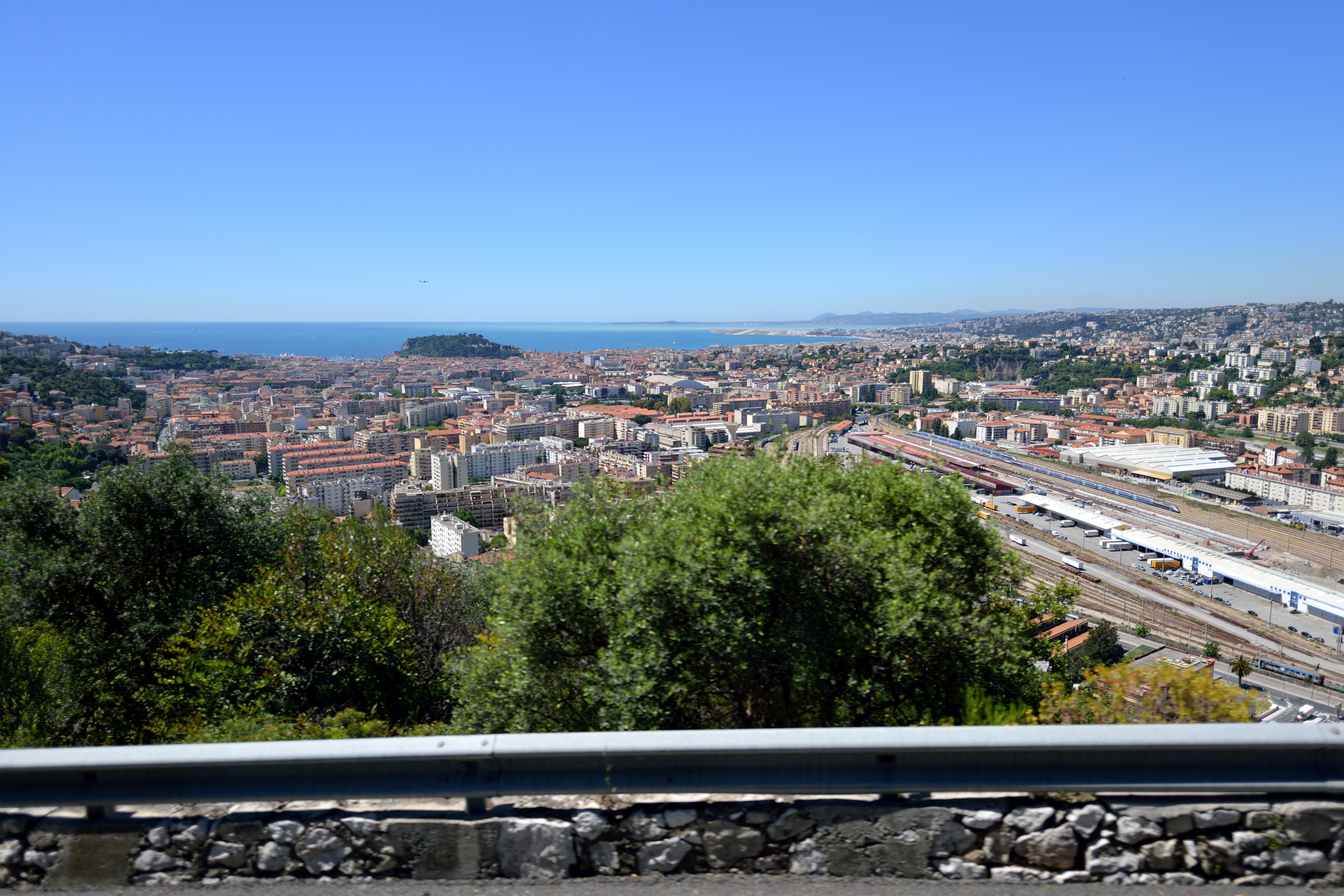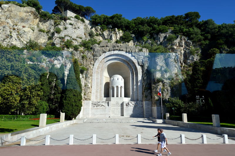 | 戦争記念碑 [Monument aux Morts] / 城の丘 [La Colline du Château] (09:18) 第一次世界大戦中に死亡したニースの英雄を称えるために建てられた記念碑だが、現在では、その後の戦争犠牲者の名前も刻まれている。 記念碑の後方の丘は、"城の丘" [La Colline du Château] と呼ばれ、嘗て城があった所。 ここはニース発祥の地で、紀元前1000年頃に、北イタリア に住んでいた古代土着民のリギュール人が、この地に住んでいたが、紀元前600年頃になると既にマルセイユなどに住んでいたマサリオ族 (現在のギリシャ人) たちが商業の拠点を探す目的で、この地にやって来る。 そして、海に面した小高い丘を見つけ、海の方から攻めて来る敵から身を守るのに都合か良く、 また、交通、取水の便も良いことから、この地を "ニカイヤ" と名付け、丘の上に住み始めた。 ニカイヤはギリシャ語で発音すると、"ニケ" と発音される事から、ギリシャ神話に出てくる勝利の女神 "ニケ" から名が取られ、また、この "ニケ" がニースの語源になったと考えられている。 その頃にはこの丘の上には城があったが、城はルイ14世の頃に無くなり、現在は市民の憩いの広場となっている。 (車窓からの風景) 「北西」MAPLay. A |