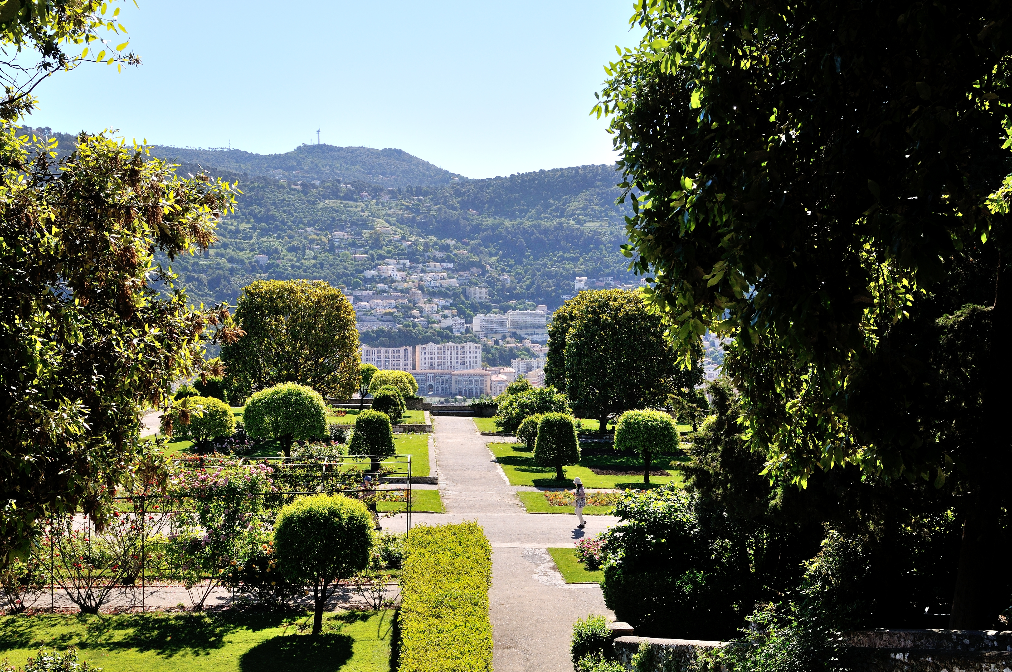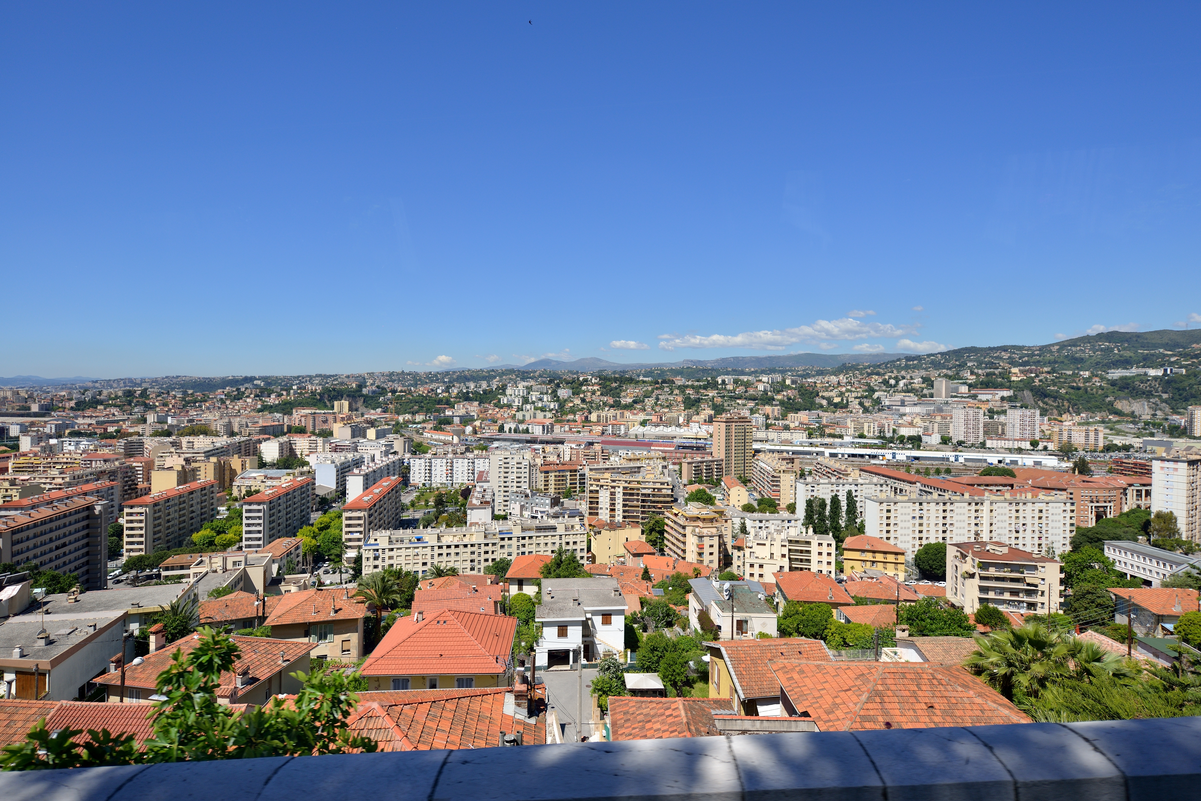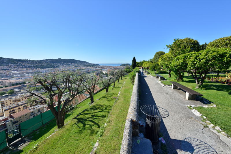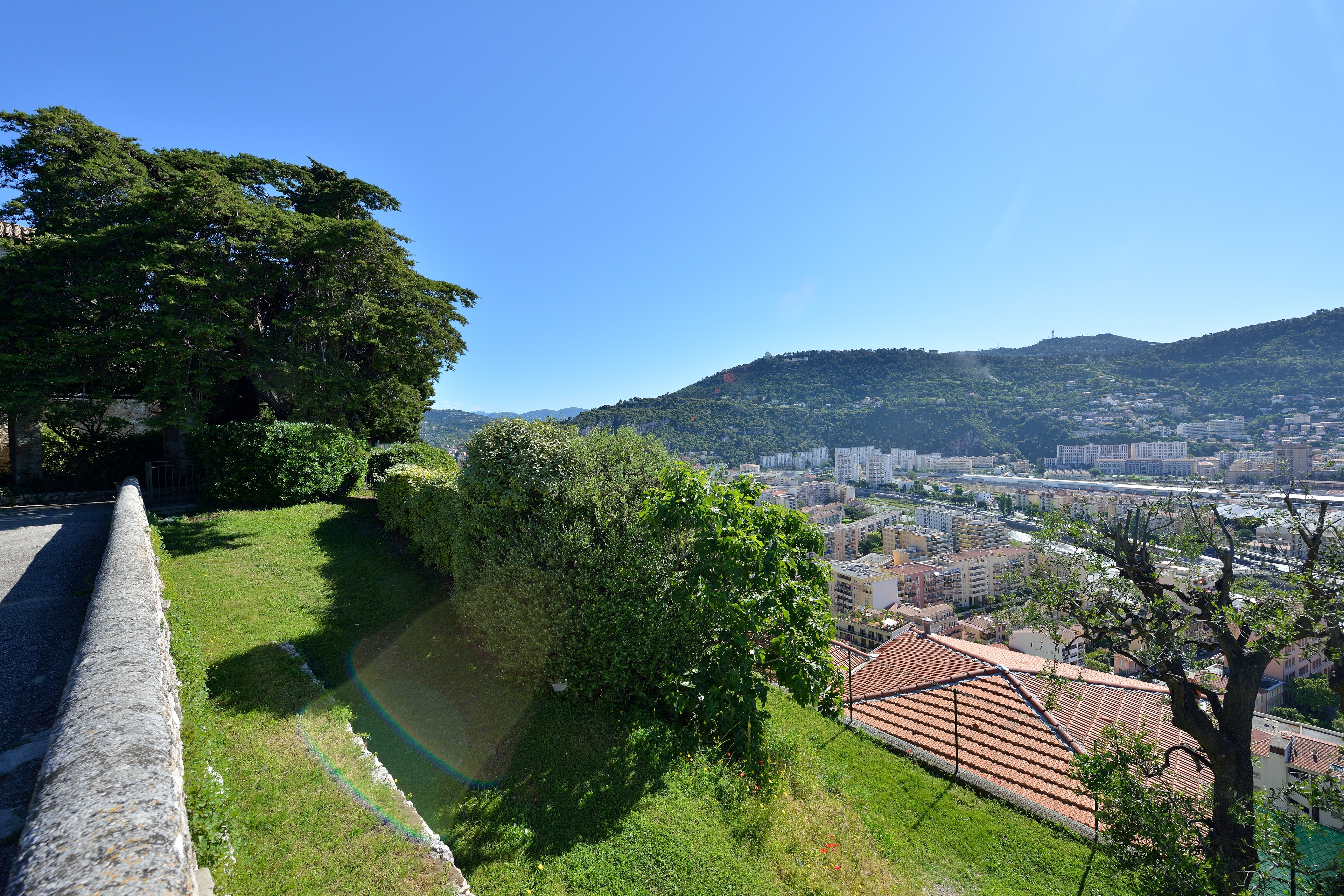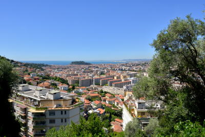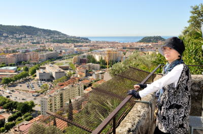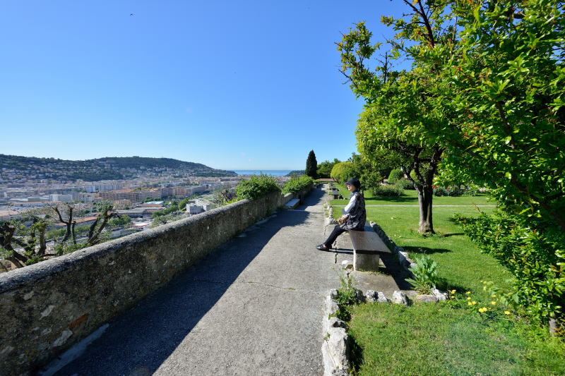 | シミエ・フランシスコ会修道院の庭園からの景色 (09:46) 中央のこんもりした森は、城の丘 [La Colline du Château] 。 「南東」MAPLay. A |