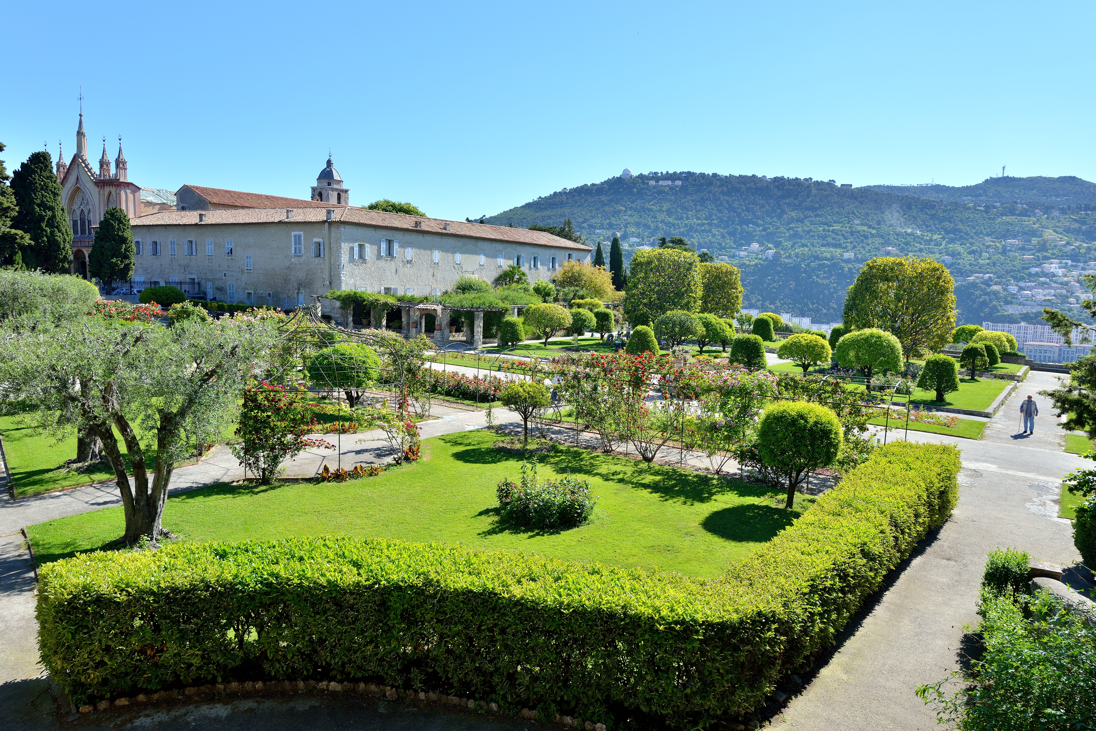 | シミエ・フランシスコ会修道院の庭園入口 (09:37) アレーヌ・ド・シミエ公園 [Parc des Arène de Cimiez] を挟んで、西側のマティス美術館と対峙する東側にシミエ・フランシスコ会修道院がある。 シミエ修道院は、サンポンス修道院のベネディクト修道士によって9世紀に設立された修道院。 現在は、教会と13世紀からのニース・フランシスコ会の修道士の生活展示館 (フランシスコ会博物館) を統合している。 1993年6月4日には、修道院全体が歴史的建造物として認定された。 「南」MAPLay. A |