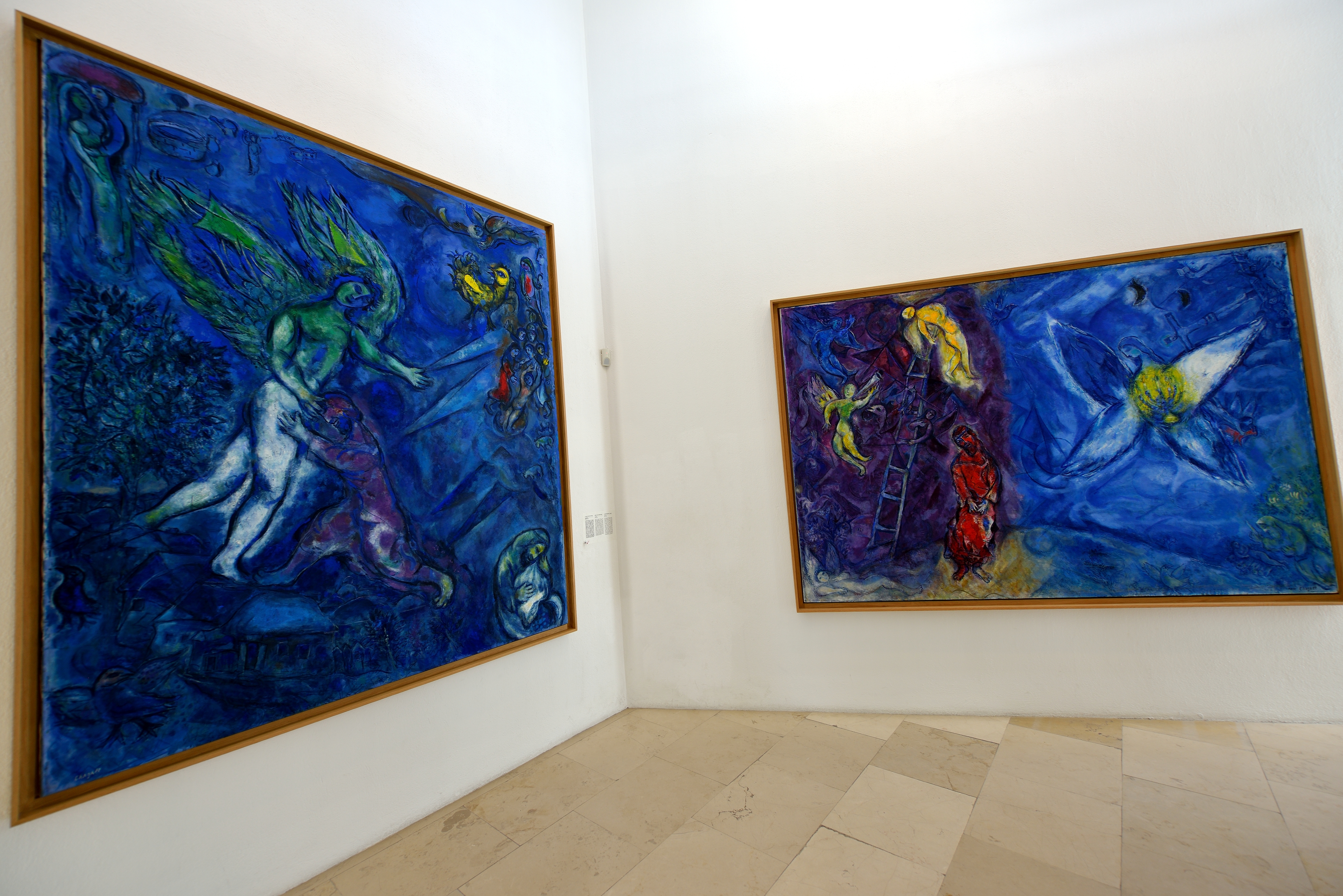 | 国立マルク・シャガール美術館 [Musée National Marc Chagall] (10:58) 中央の絵は、『イサクのいけにえ』 (1960年~1966年)。 MAPLay. B |
