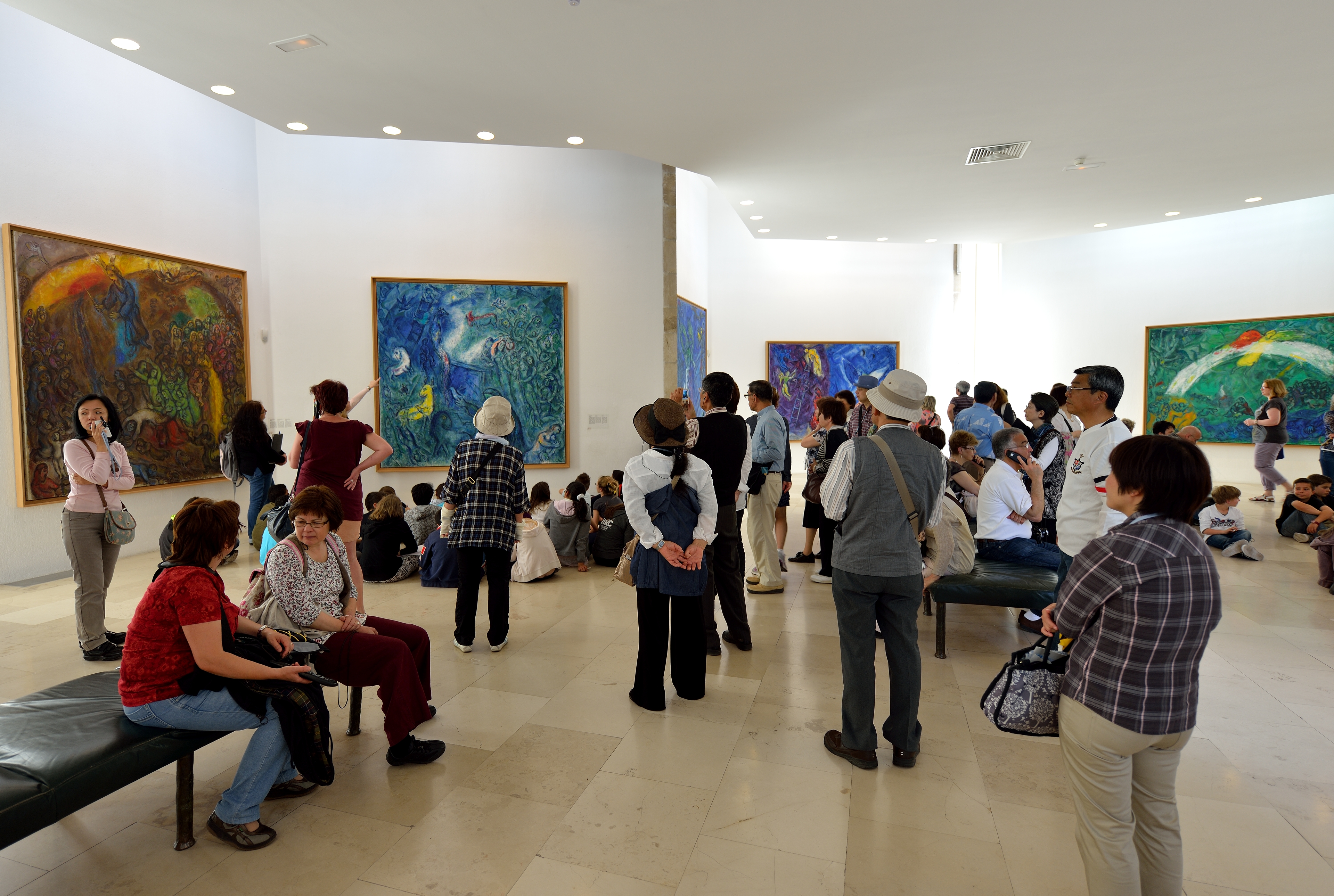 | 国立マルク・シャガール美術館 [Musée National Marc Chagall] (11:08) 中央の絵は、『十戒の石板を授かるモーゼ』 (1960年~1966年)。 MAPLay. B |