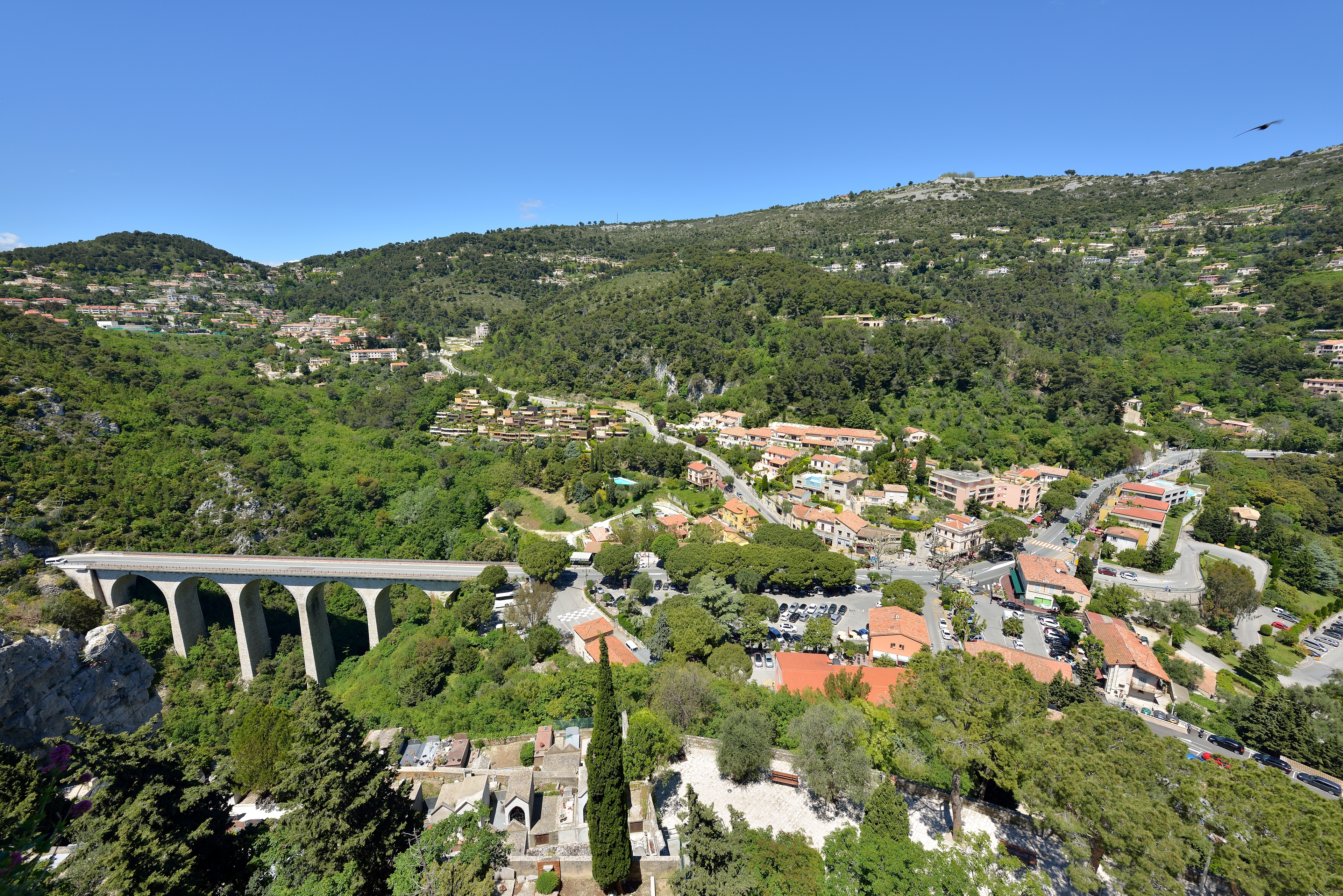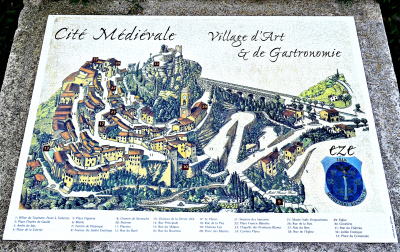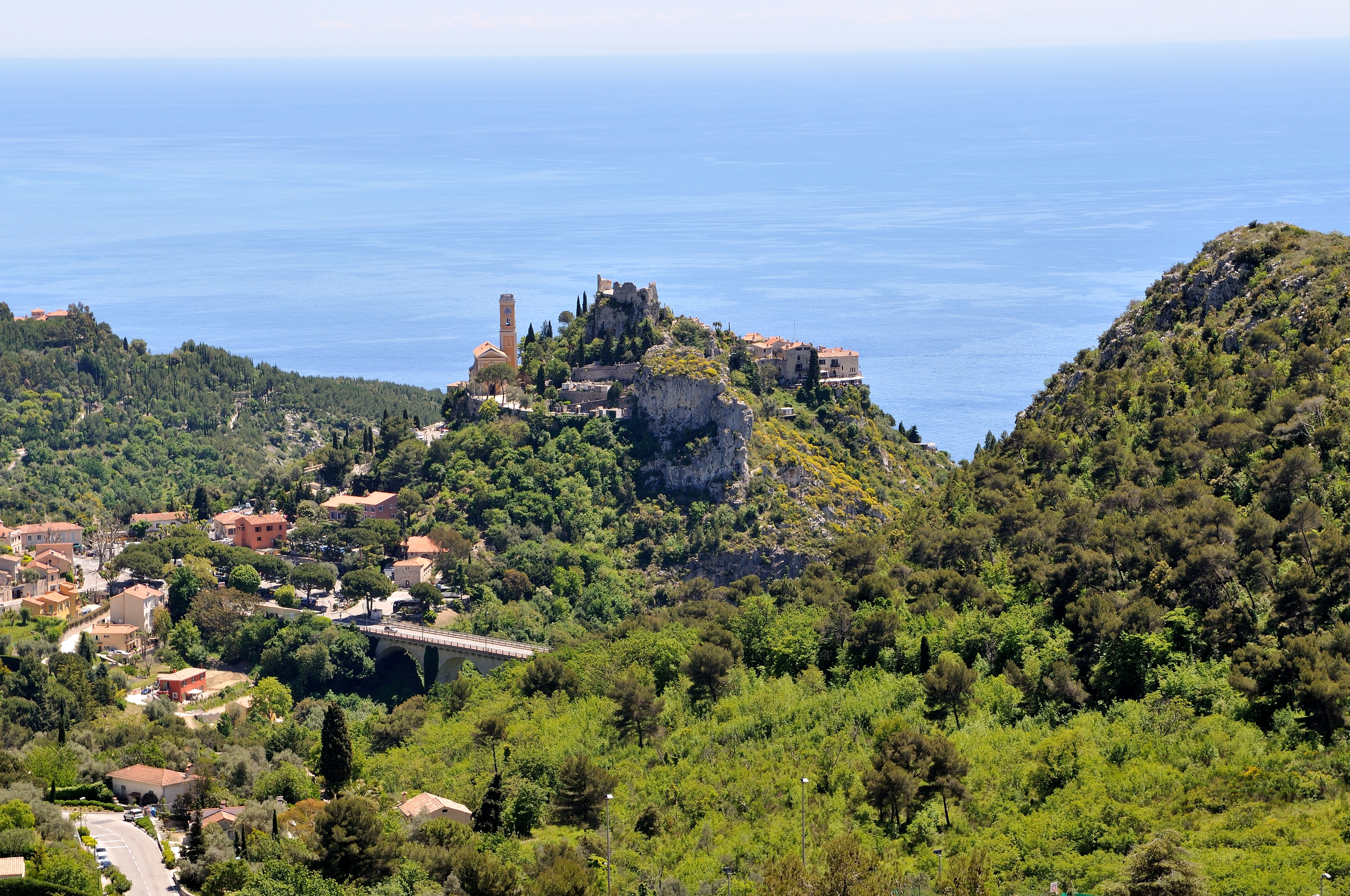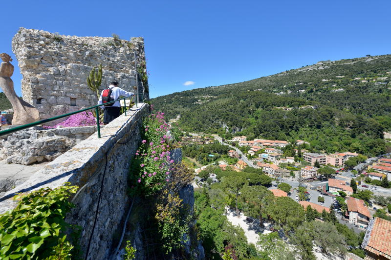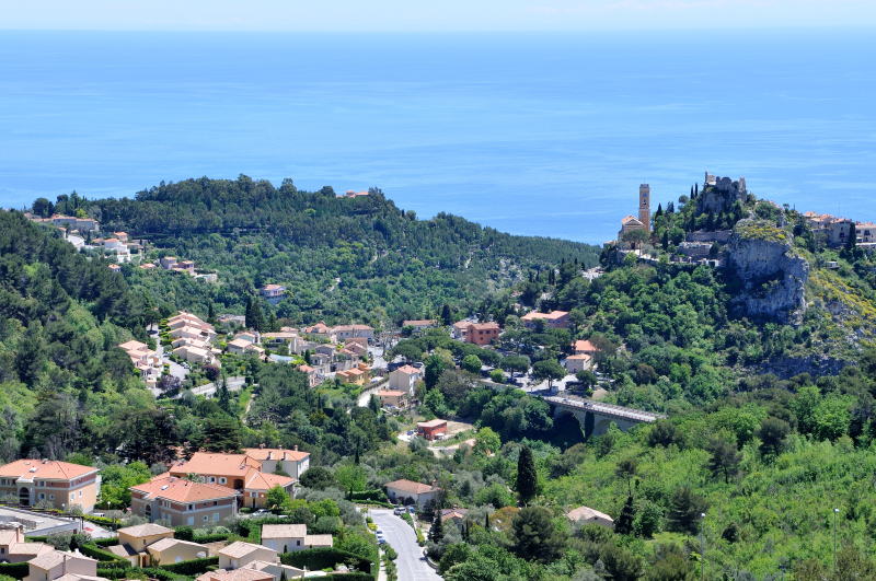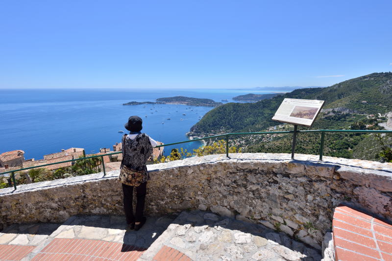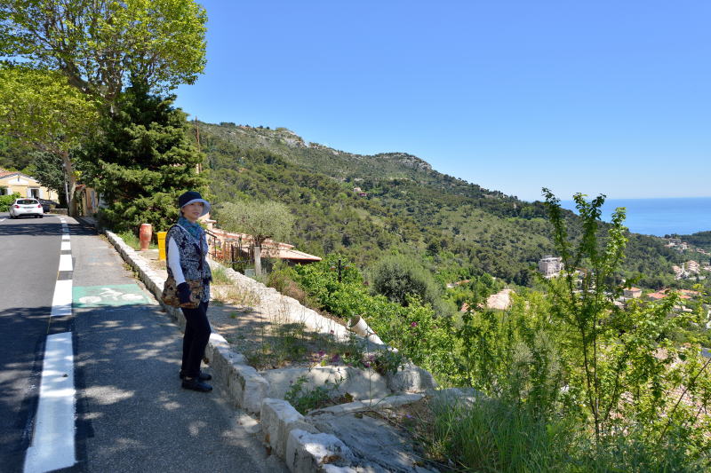 | ディアブル・ブルー通り [Avenue des Diables Bleus] から望むエズ [Èze] 村 (13:27) エズ村は、"鷲の巣村" とも呼ばれ、"鷲の巣村" は、中世の混乱期、安全を守るために山の頂上や中腹に築かれた村をいう。 エズの他には、サン・ポール・ド・ヴァンスが有名。 「南東」MAPLay. B |
