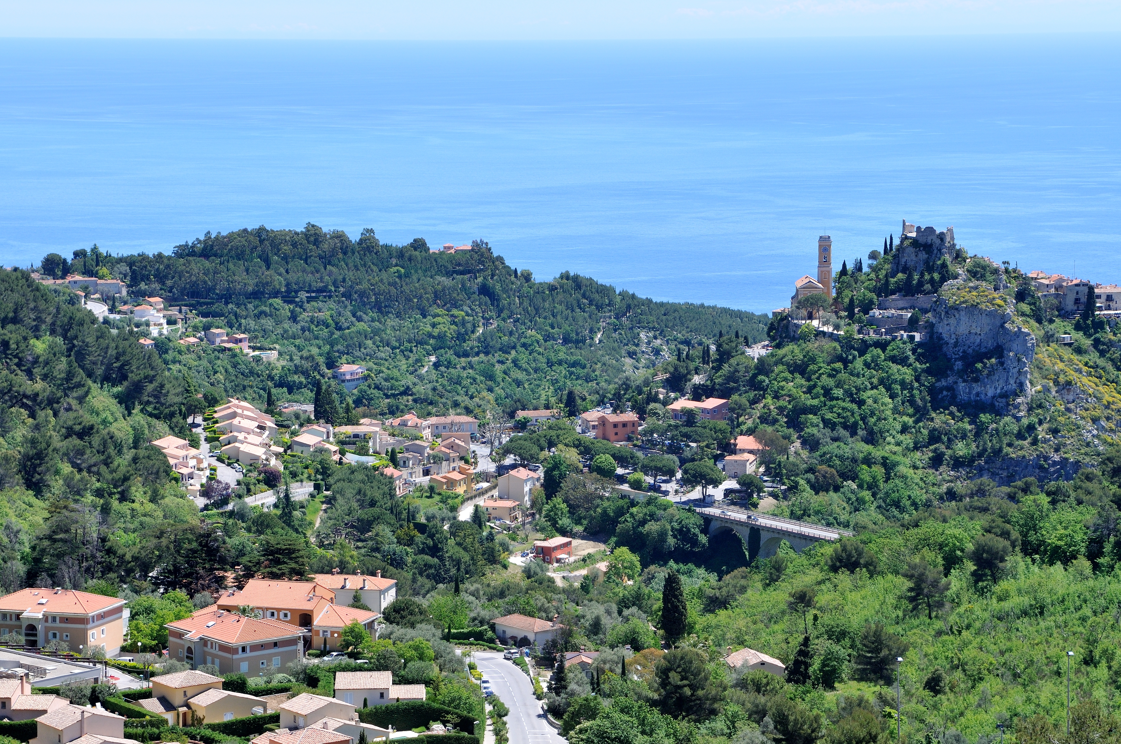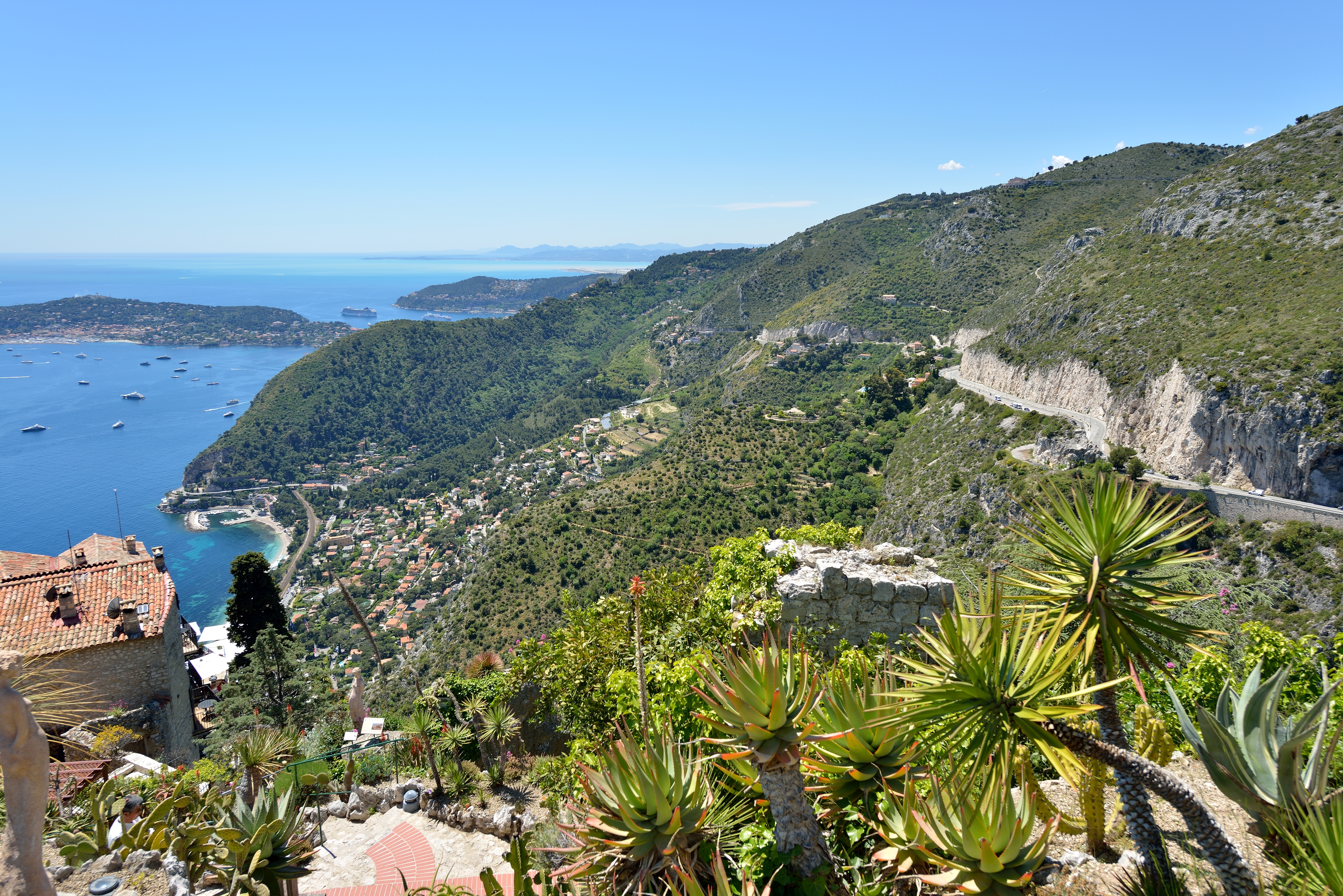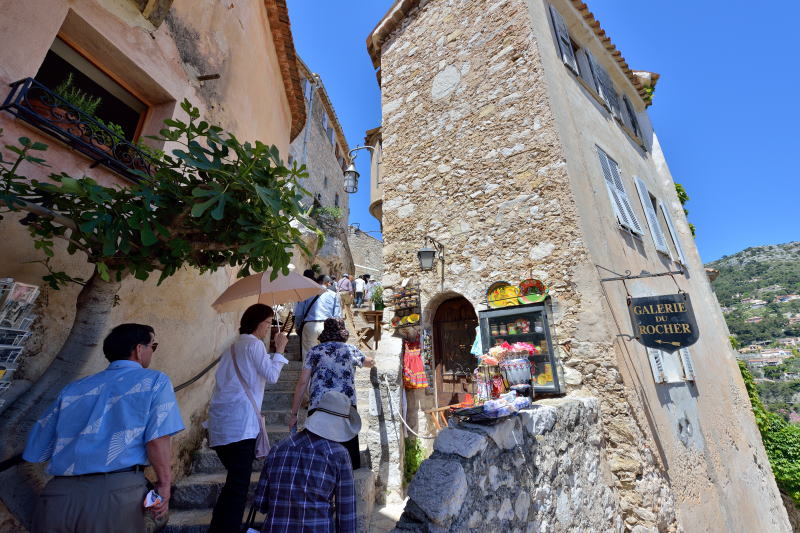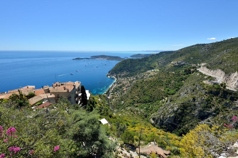 | ディアブル・ブルー通り [Avenue des Diables Bleus] から望むエズ [Èze] 村 (13:27) エズ村は、"鷲の巣村" とも呼ばれ、"鷲の巣村" は、中世の混乱期、安全を守るために山の頂上や中腹に築かれた村をいう。 エズの他には、サン・ポール・ド・ヴァンスが有名。 「南東」MAPLay. B |