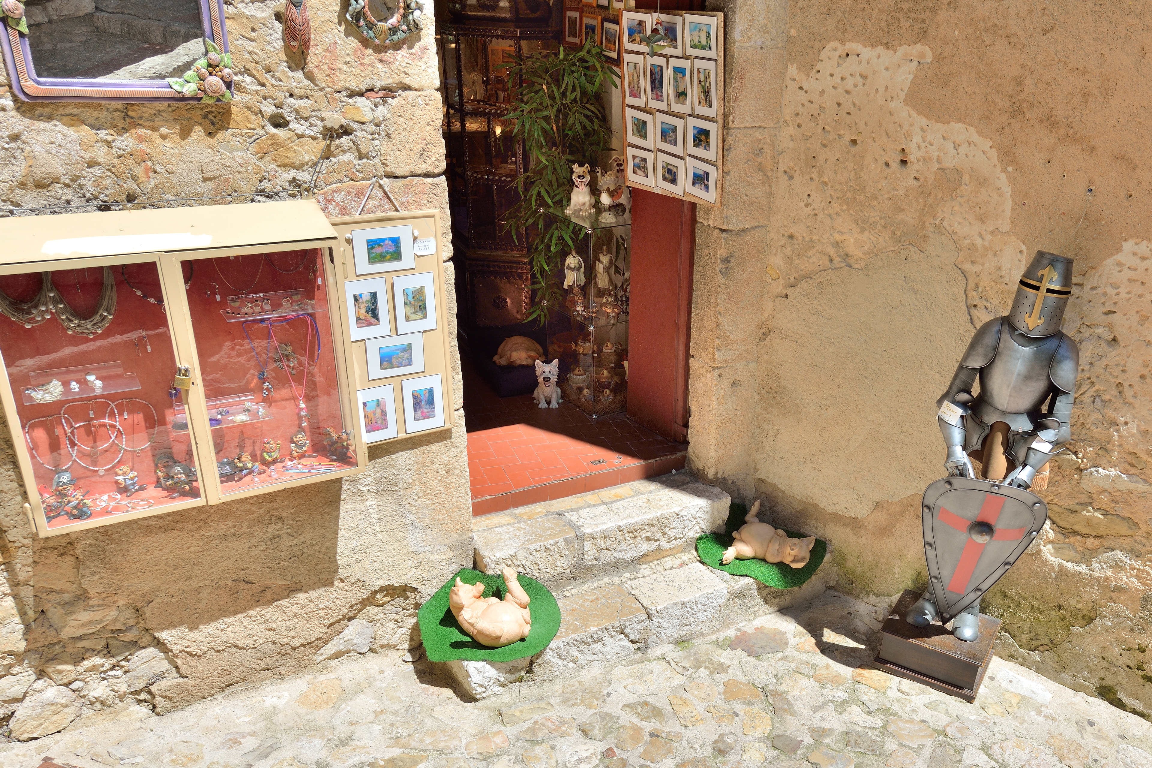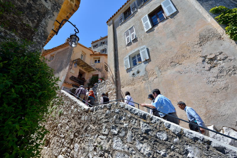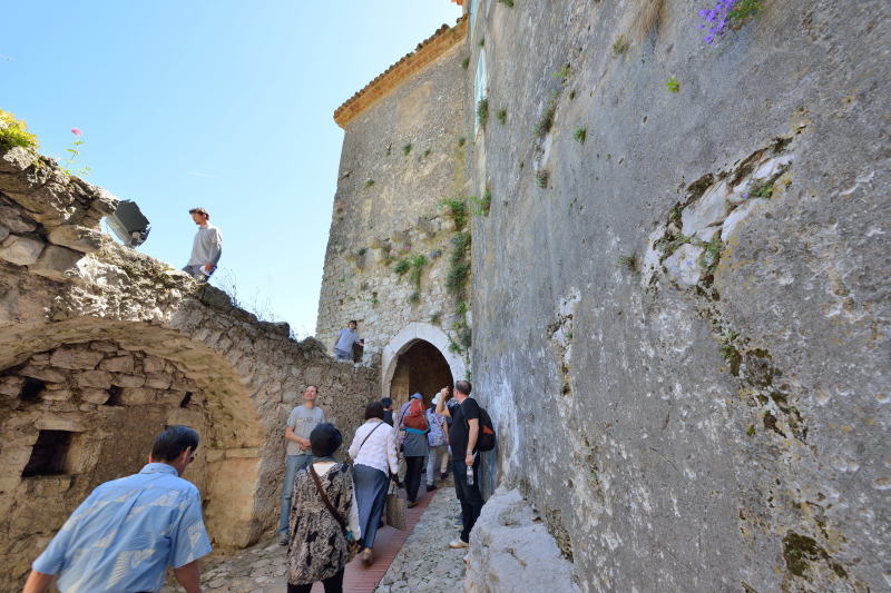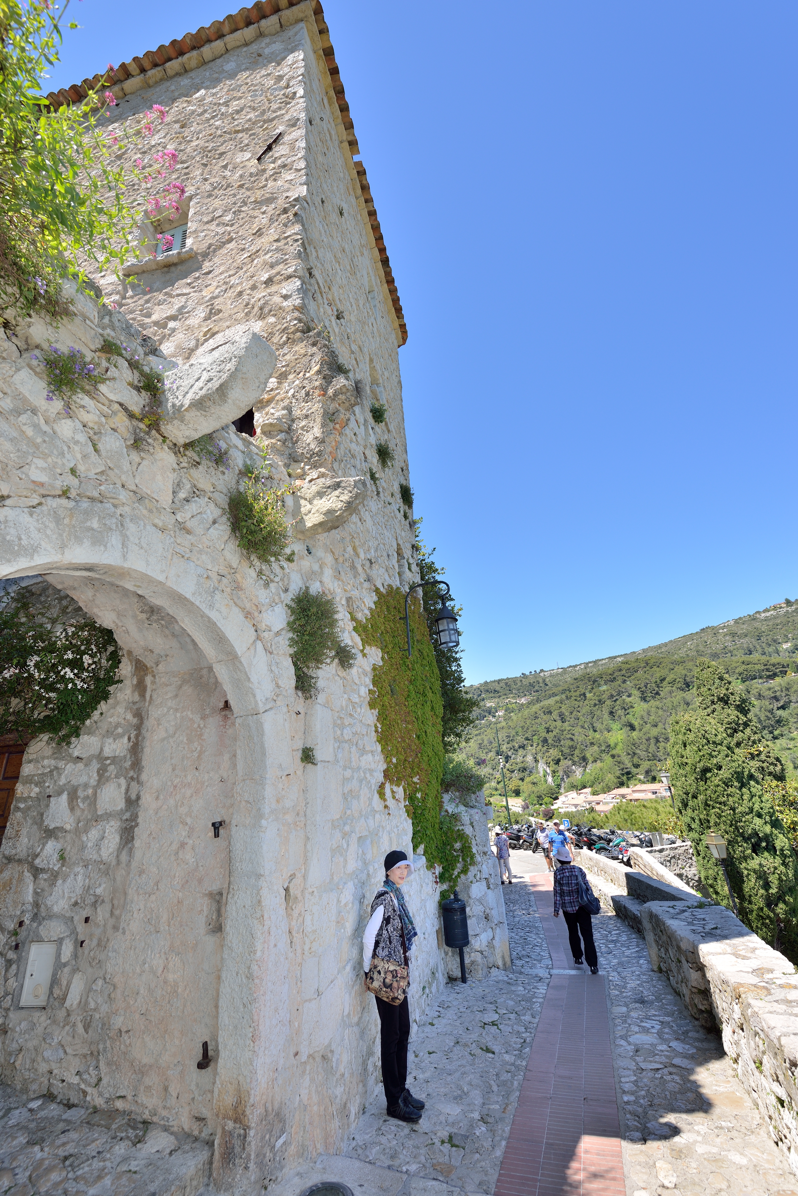 | エズ [Èze] 村の裏門 [Poterne] を入った所 (13:45) エズ周辺には紀元前2000年頃に居住が開始された。 Èzeの名前はサン=ローラン・デズ("St. Laurent d'Èze")と呼ばれる港として、Antoninの海事本に見受けられる。 この地域はローマ人だけでなく、973年にプロヴァンス伯ギヨームによって追い払われるまで約80年間ムーア人による支配を受けた。 1338年まで街はサヴォイア家の管轄下にあった。 近隣のニースに備えるために、サヴォイア家は街を要塞化した。 エズはフランス地中海の上方の標高427mに位置する高い崖を見下ろす場所にあるため、鷲の巣 [eagle's nest] と言われる。 (出典:Wikipedia) 「南」MAPLay. B |