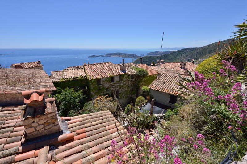 | 頂上にある熱帯庭園 (エキゾチック庭園) [Jardin Exotique] (14:02) よく見ると、写真の中央部に十字架が立てられた小さな屋根が見て取れるが、この建物は13世紀に建てられた礼拝堂 "Chapelle des Pénitents Blancs" で、エズに残る一番古い建築物である。 この礼拝堂は歴史的に重要で、1860年に住民がフランスへの併合を可決した場所でもある。 (下の写真を参照) 「南東」MAPLay. C |