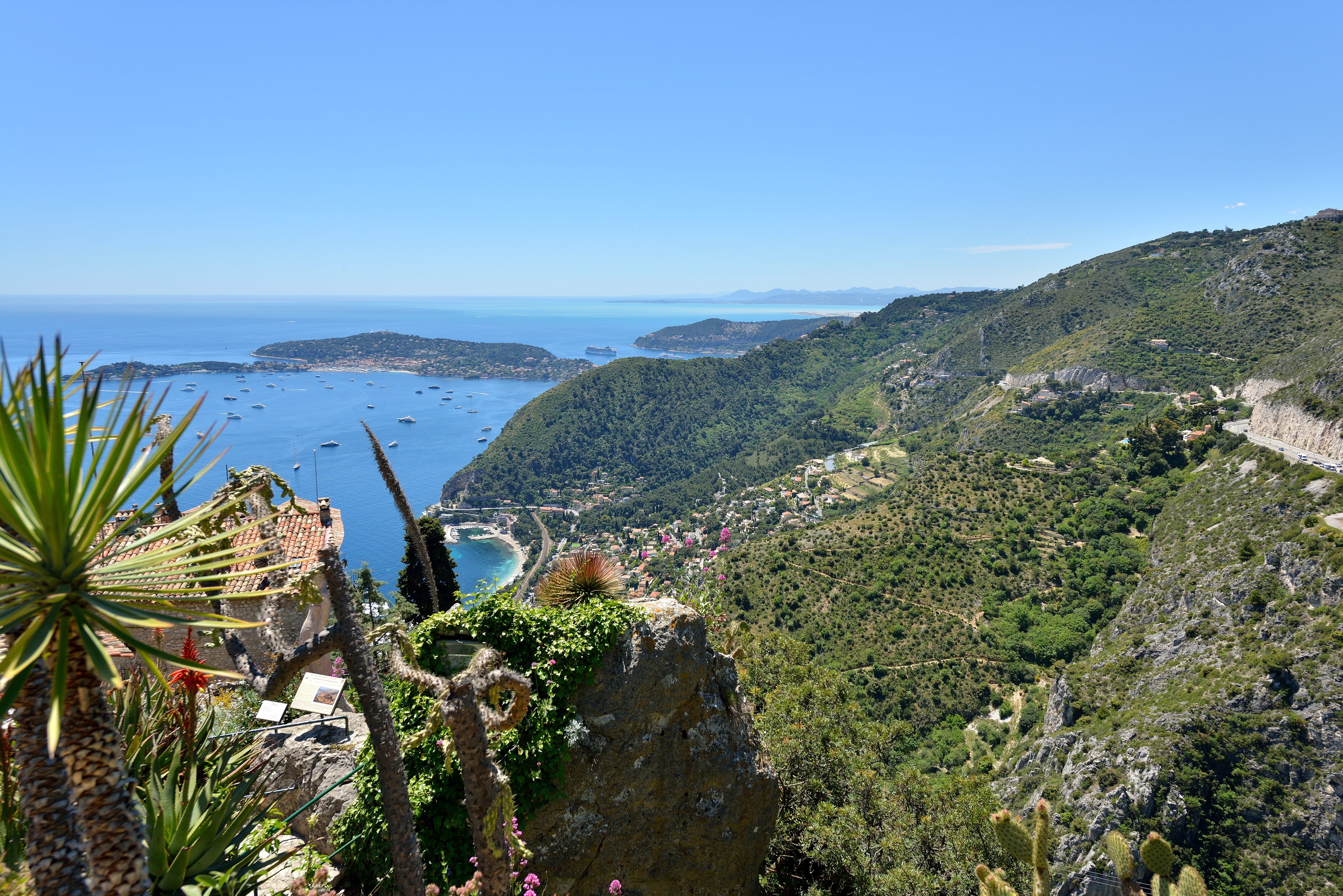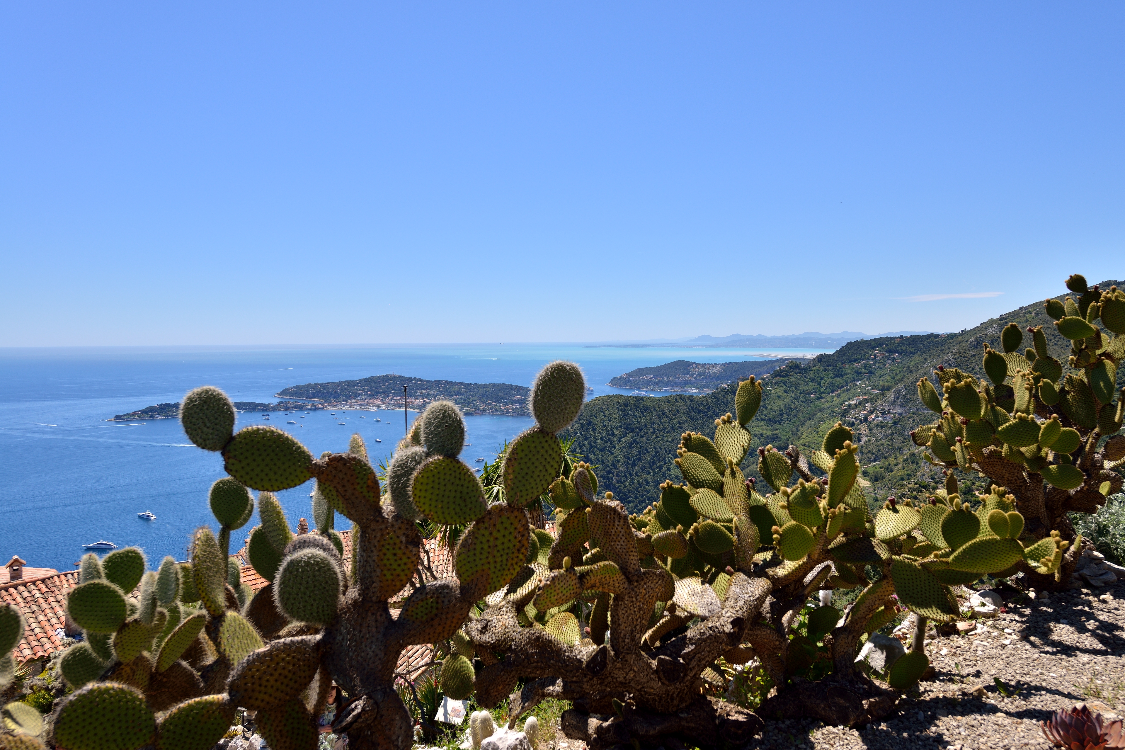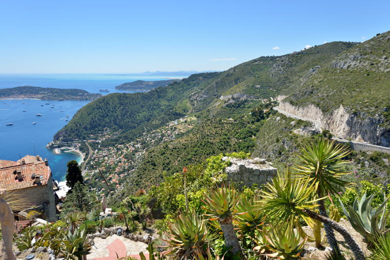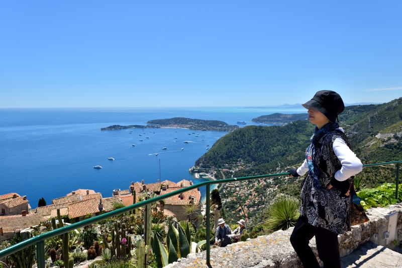 | 頂上にある熱帯庭園からの展望 (13:52) 町の頂上は、標高429mにも達し、このエズは海を真上から覗き見る景観が醍醐味。 中央に見える岬は、サン・ジャン・カップ・フェラ岬 [Saint Jean Cap Ferrat cape] 。 「南西」MAPLay. B |