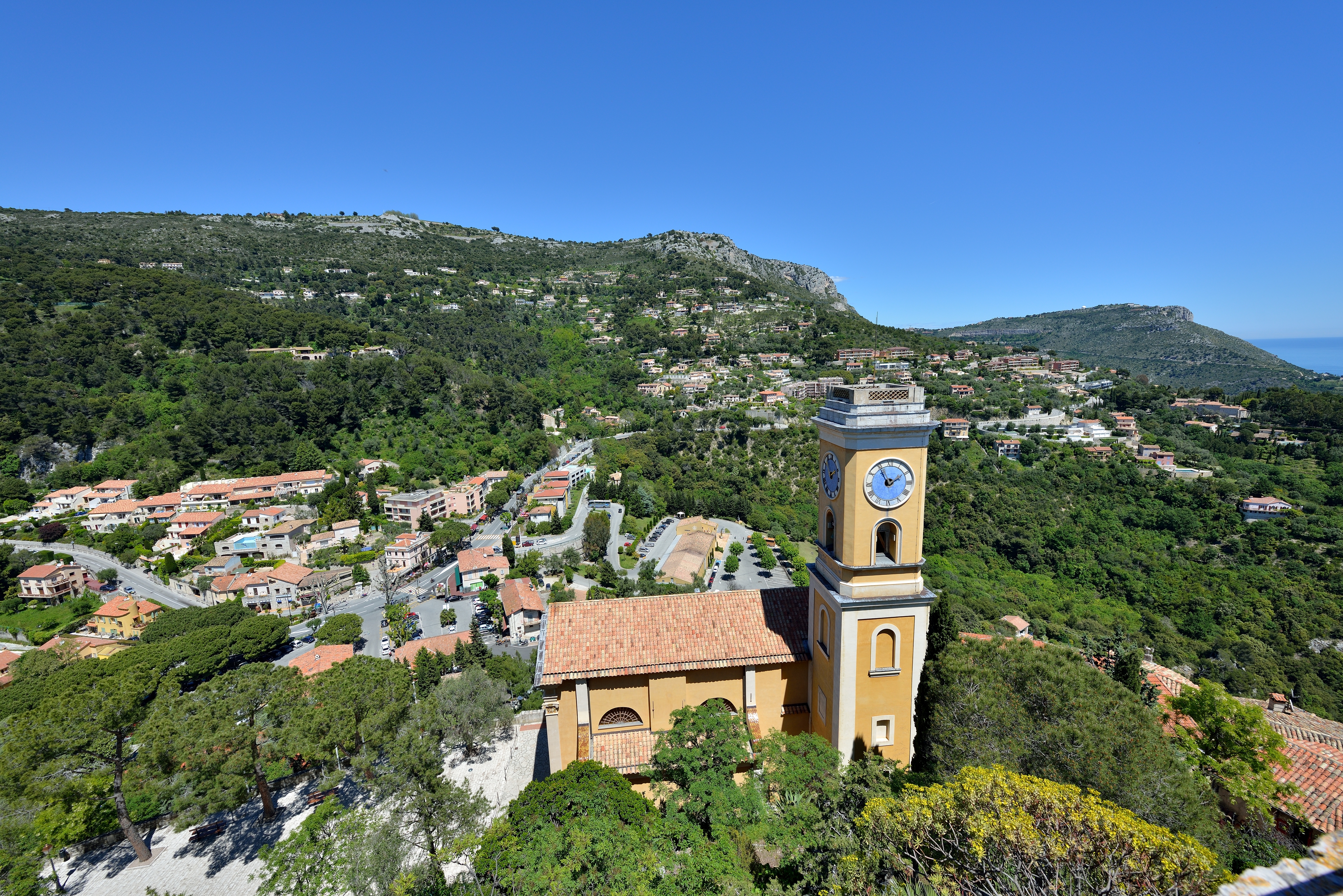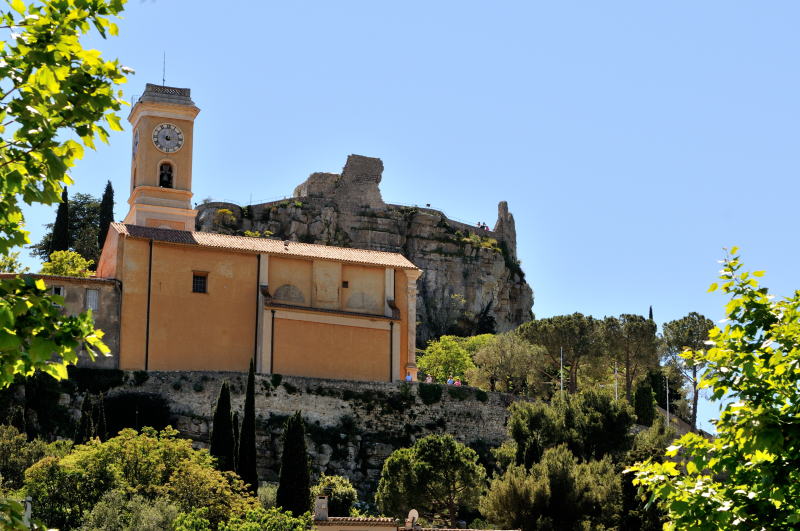 | エズの教会 [L'église d'Èze] (15:02) 香水専門店フラゴナールの駐車場から見る "エズの教会" 。 「南西」MAPLay. C |