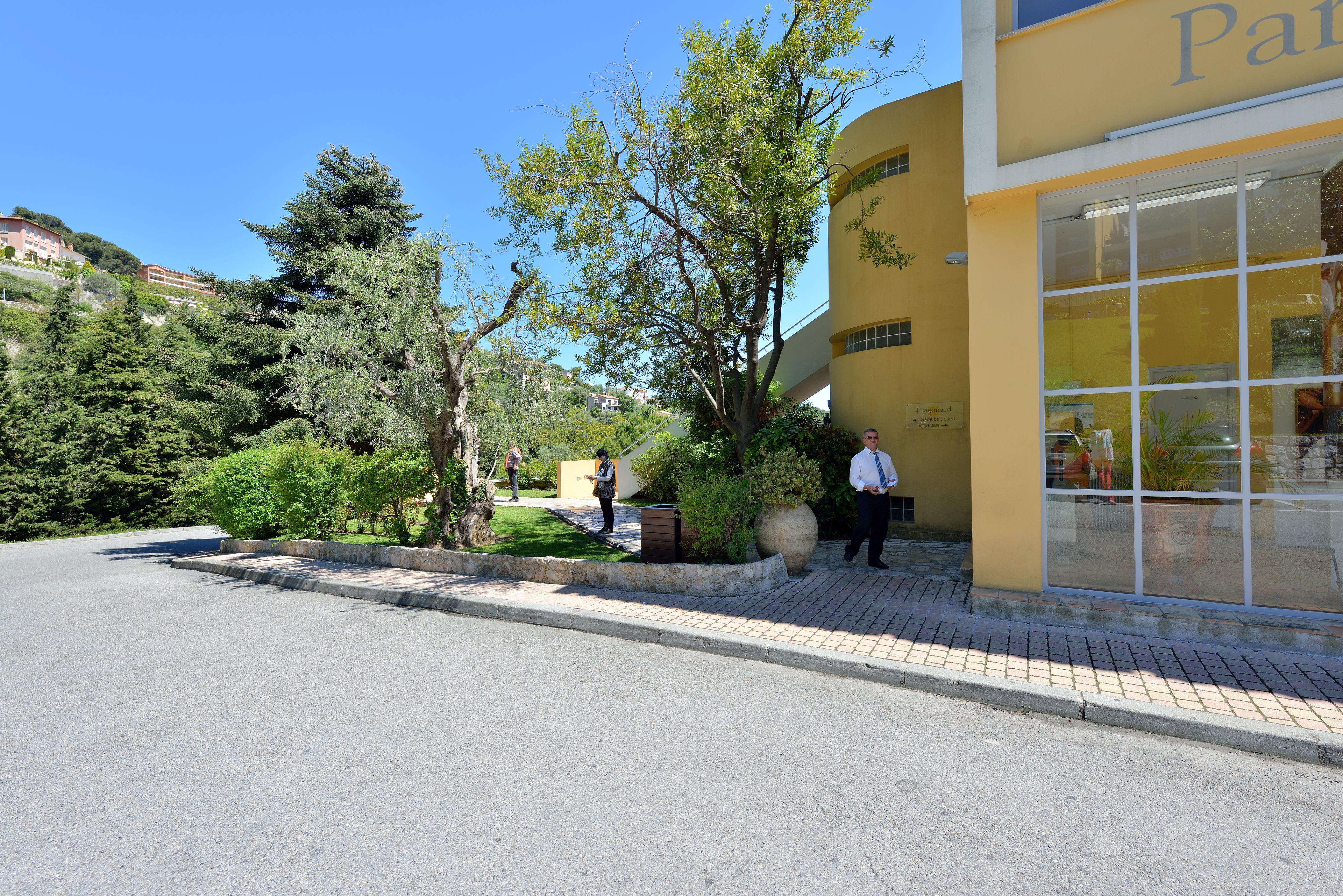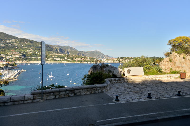 | 頂上にある熱帯庭園からの展望 (13:53) 右手に見える道路はモワイヨンヌ・コルニッシュ [Moyenne Corniche] 道路。 「西南西」MAPLay. B |