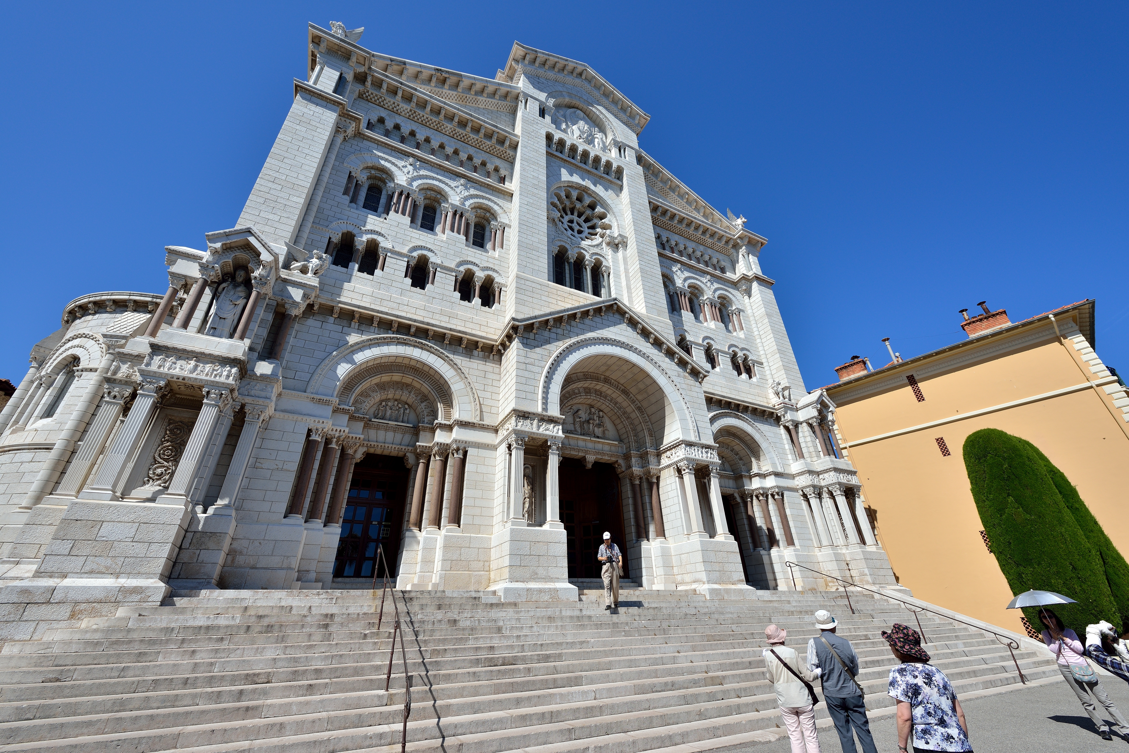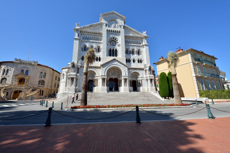 | モナコ大聖堂 [Cathédrale de Monaco] (16:12) 聖堂の中には、ニース出身の画家ルイ・ブレア [Ludovic Bréa] (1450~1523年) が1500年に描いた「聖ニコラの祭壇画」、「テストゥ主任司教のピエタ」、天井にある「聖母子」のモザイクなどがある。 「北」MAPLay. C |