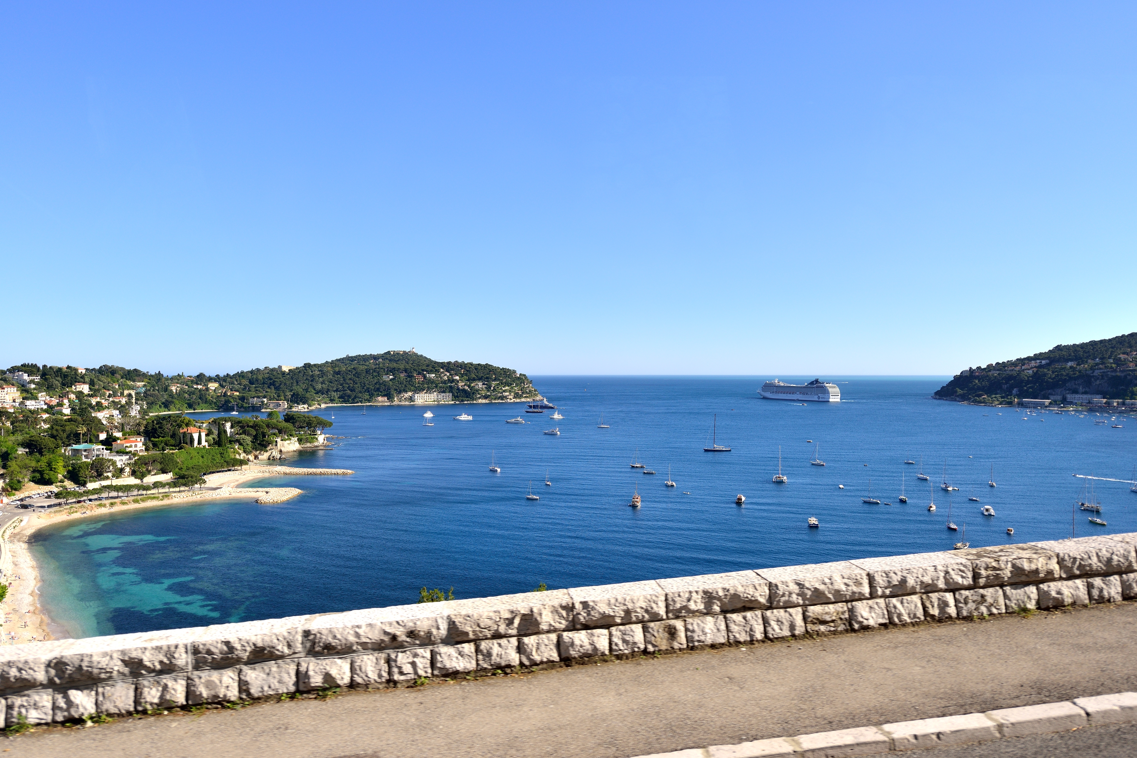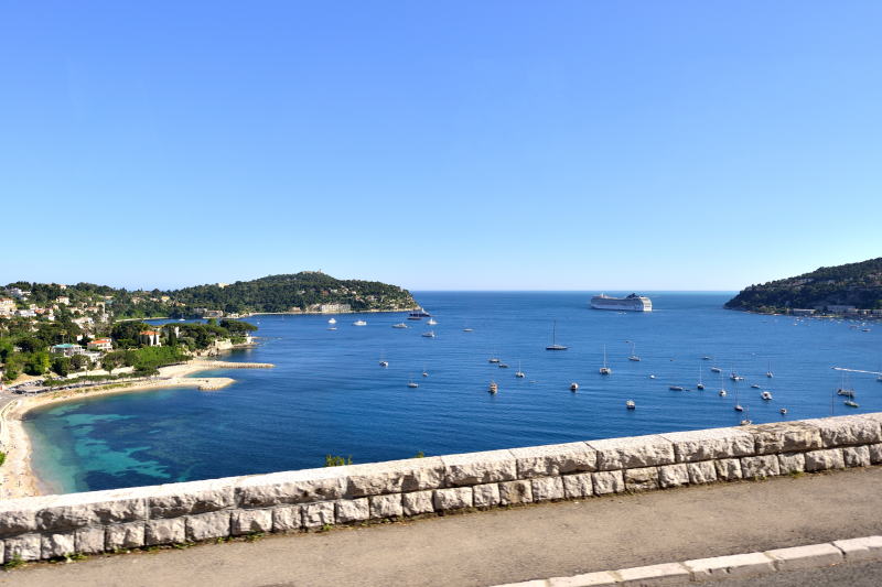 | レスパルマドール湾 [Baie de I'Espalmador] (17:35) ナポレオン大通り [Boulevard Napoléon III] から撮影。 左手に見える岬は、サン・ジャン・カップ・フェラ岬 [Saint Jean Cap Ferrat cape] 。 「南」MAPLay. C |