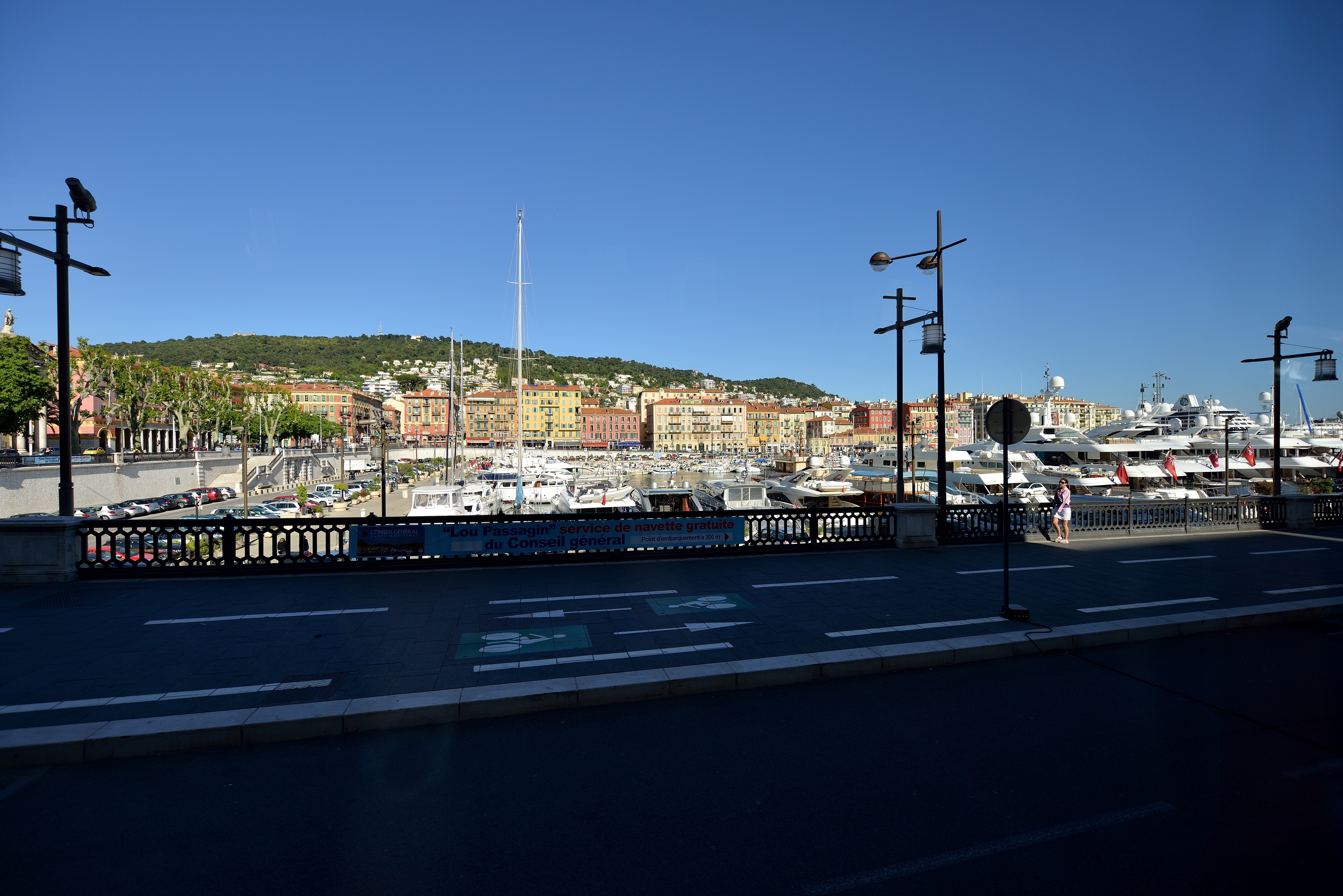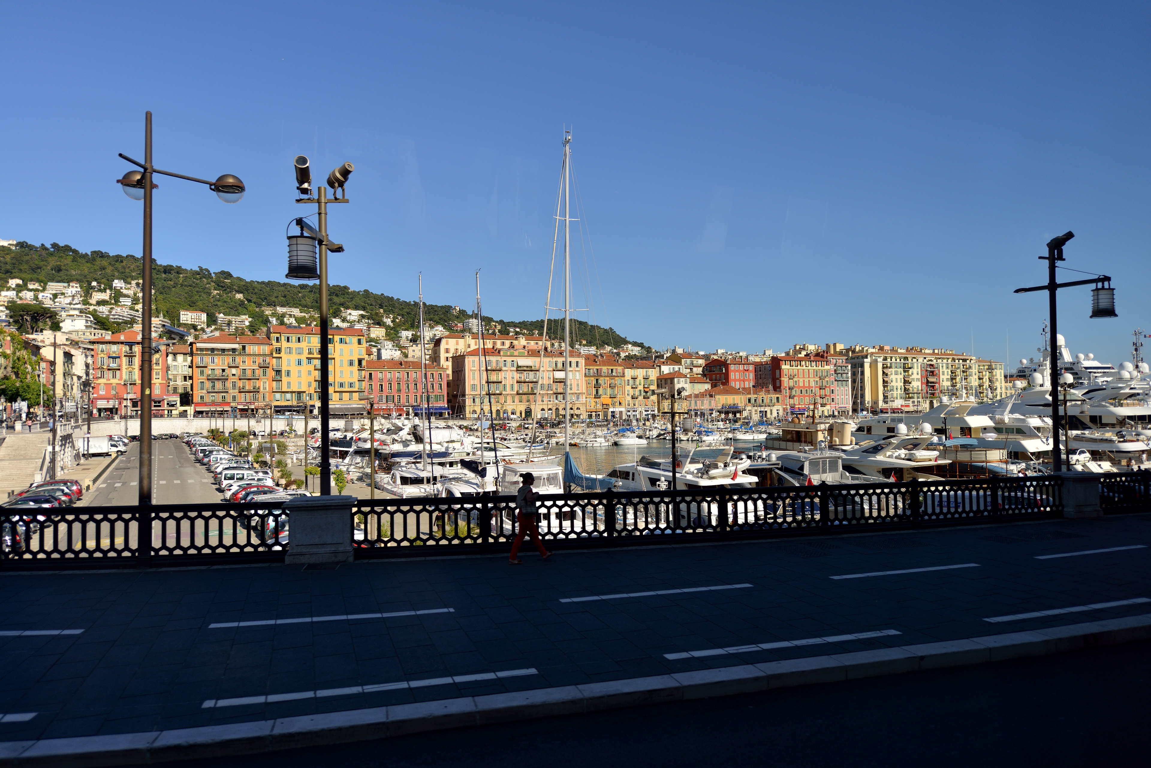| ニース港 [Nice Port] (車窓からの風景) (09:21) ニース港はリンピア港 [Port Lympia] とも呼ばれる。 「南」MAPLay. A |