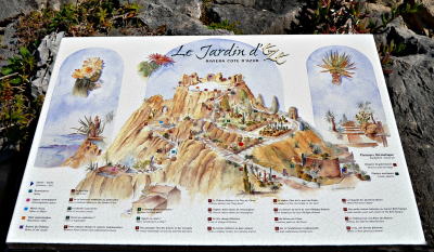 | エズ庭園 [Jardin d'Eze] (13:50) シャルル15世の命で1706年に破壊された城の跡地に、1949年、モナコの熱帯庭園を手本に、熱帯庭園 (エキゾチック庭園) [Jardin Exotique] が造成されている。 「南西」MAPLay. B |