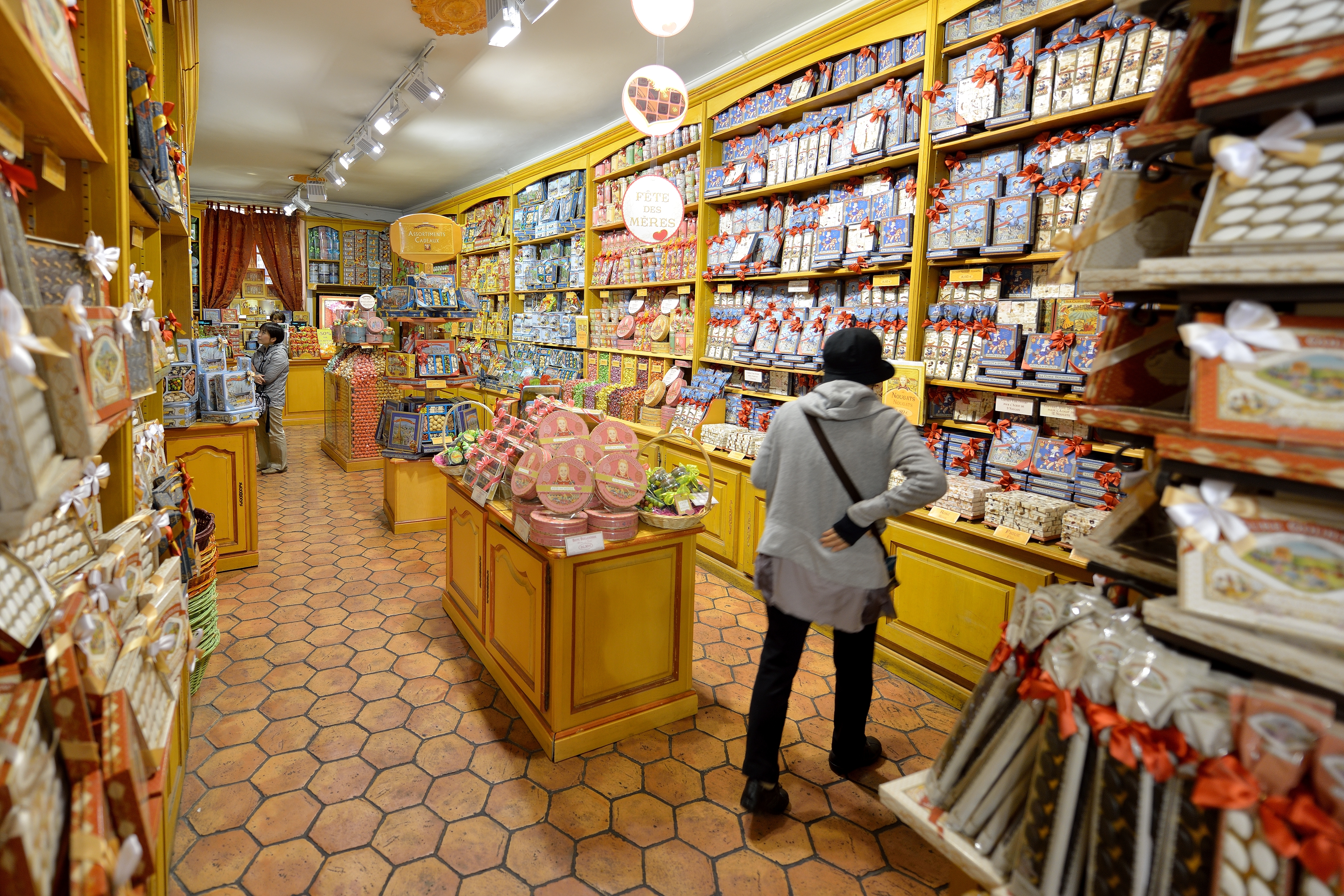 | 市庁舎広場に面した "La Cure Gourmande" (11:28) プロヴァンスの可愛らしい素朴なクッキーなどを販売している店。 MAPLay. A |