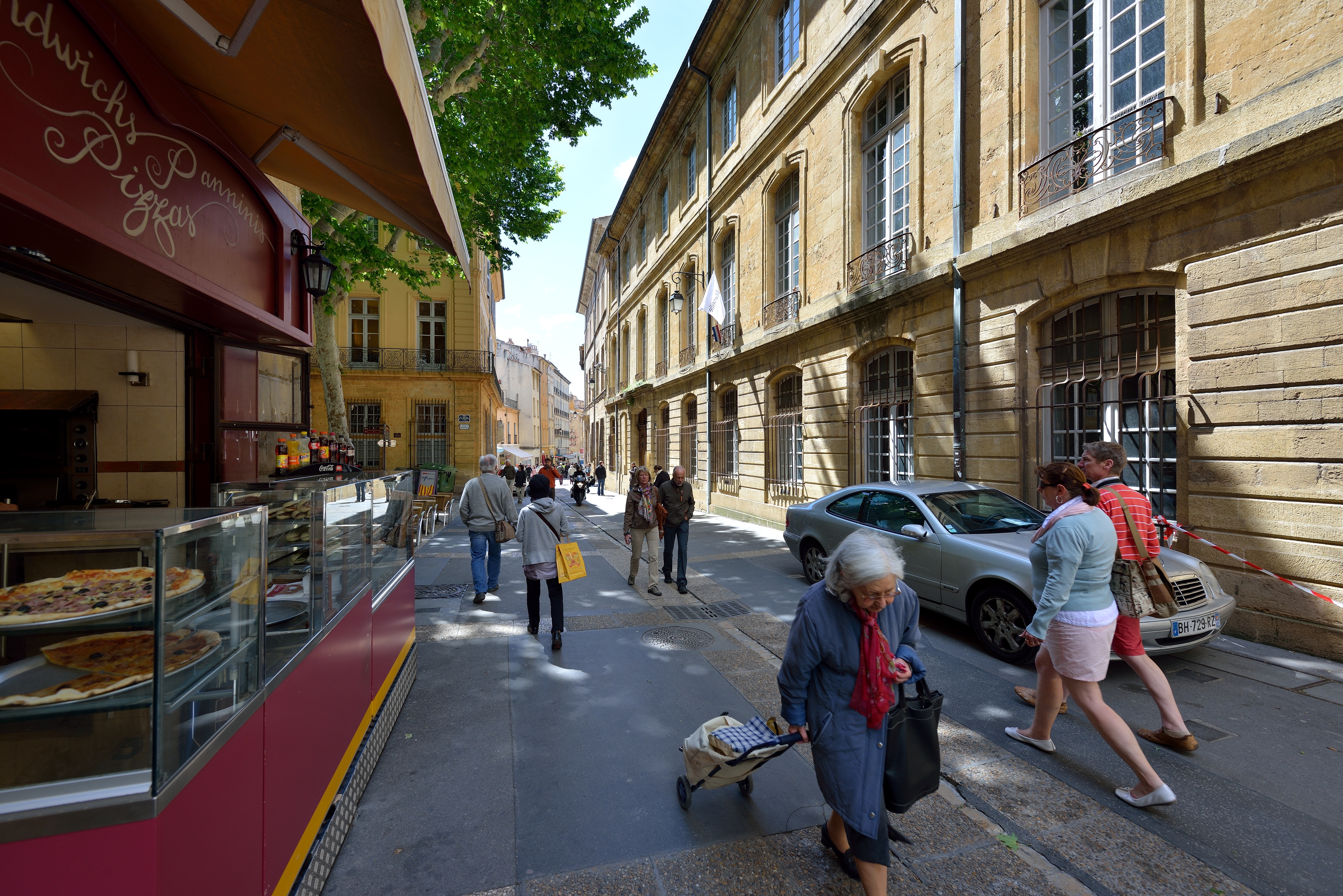| ヴォヴナルグ通り [Rue Vauvenargues] (11:26) 右手には、市庁舎広場 [Place de l'Hôtel de ville] がある。 「南東」MAPLay. A |