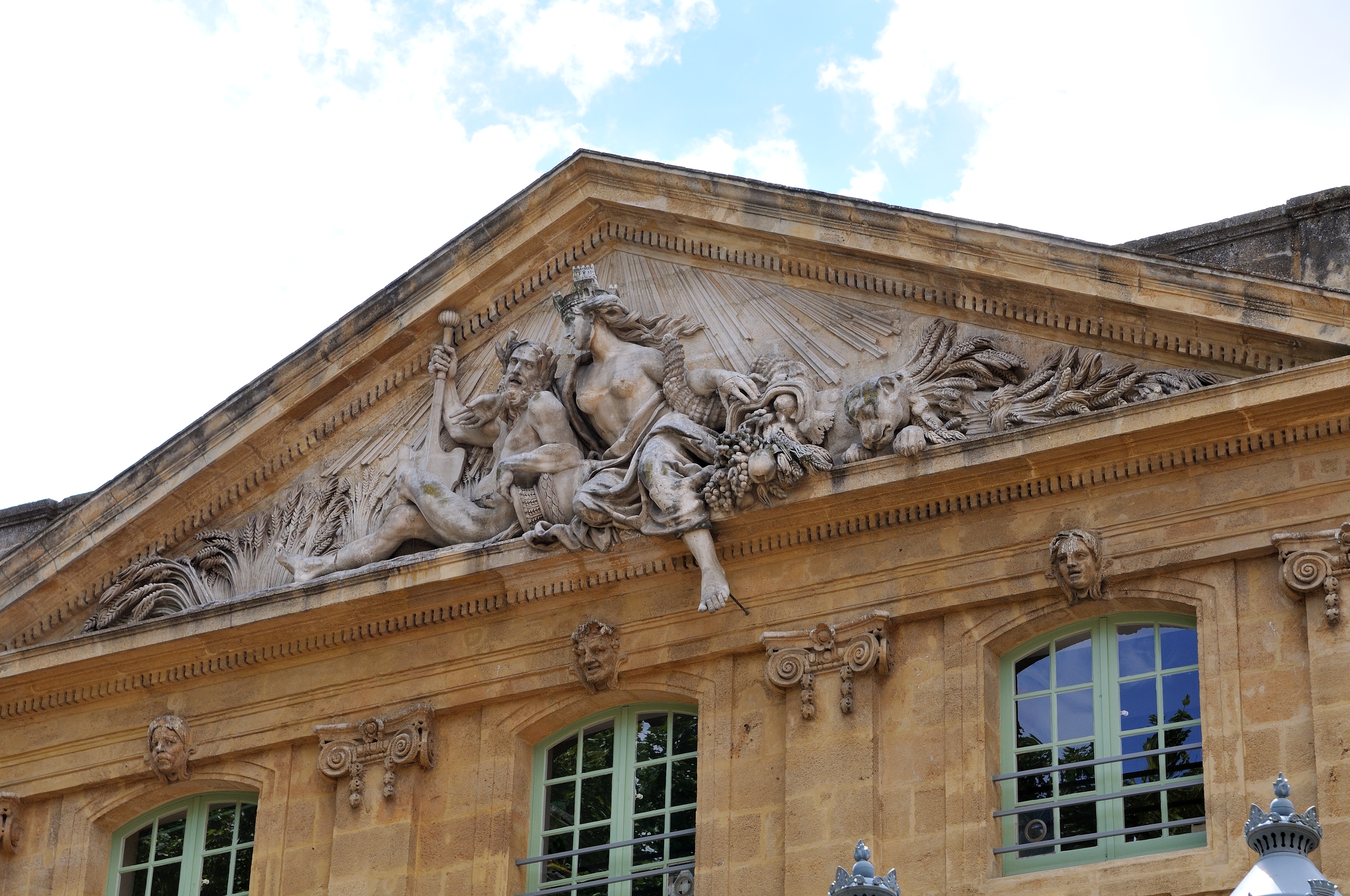 | ミラボー通り [Cours Mirabeau] (11:14) エクス・アン・プロヴァンスのメインストリート (1664年に、4輪馬車を通すために城壁を壊した跡につくった長さ約500mの通り) 。 樹齢500年といわれるプラタナス (スズカケ) の並木が美しく、また、涼しい木陰を作っている。 通りの北側にはカフェが軒を連ねており、その背後には17世紀の城塞都市の名残を残す旧市街がある。 また、通りの南側は、貴族たちが豪邸を構えていたという マザラン地区 [Quartier Mazarin] (MAP) がある。 ミラボーの名は、フランス革命初期の中心的指導者である "オノーレ・ミラボー" [ Honoré-Gabriel Riqueti de Mirabeau] に由来する。 「東北東」MAPLay. A 《注意:下の文は上の写真を説明したものではありません》 ローマ人による街の建設は、紀元前122年 ガリア地方に築かれた最初のローマ都市であったが、遺跡は殆ど残っていない。 鉱泉源のそばに、初代総督 "セクスティウス" が要塞と街を建設したのが始まり。 この町のエクスはラテン語で水を意味する アクア と彼の名前を合わせアクアエ・セクスティアエ(Aquæ Sextiæ:セクスティウスの水、の意)と名付けられていた。 その古い名前のアクアエが転訛し、現在のエクスという名前になったと言われている。 |