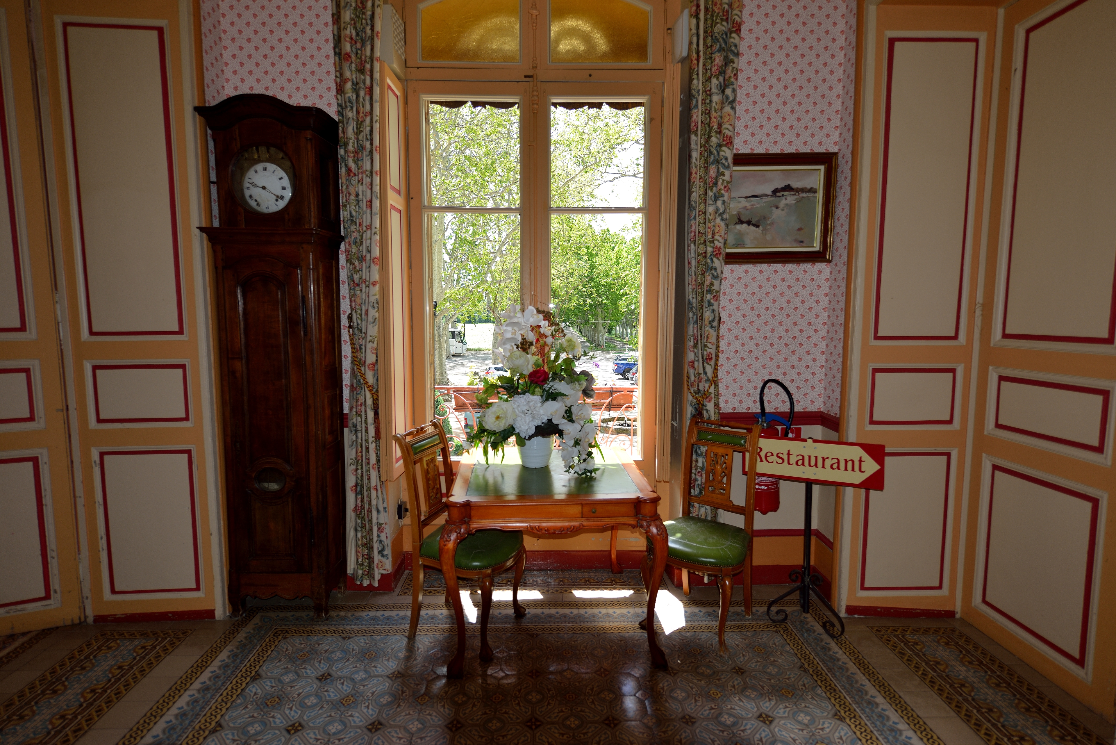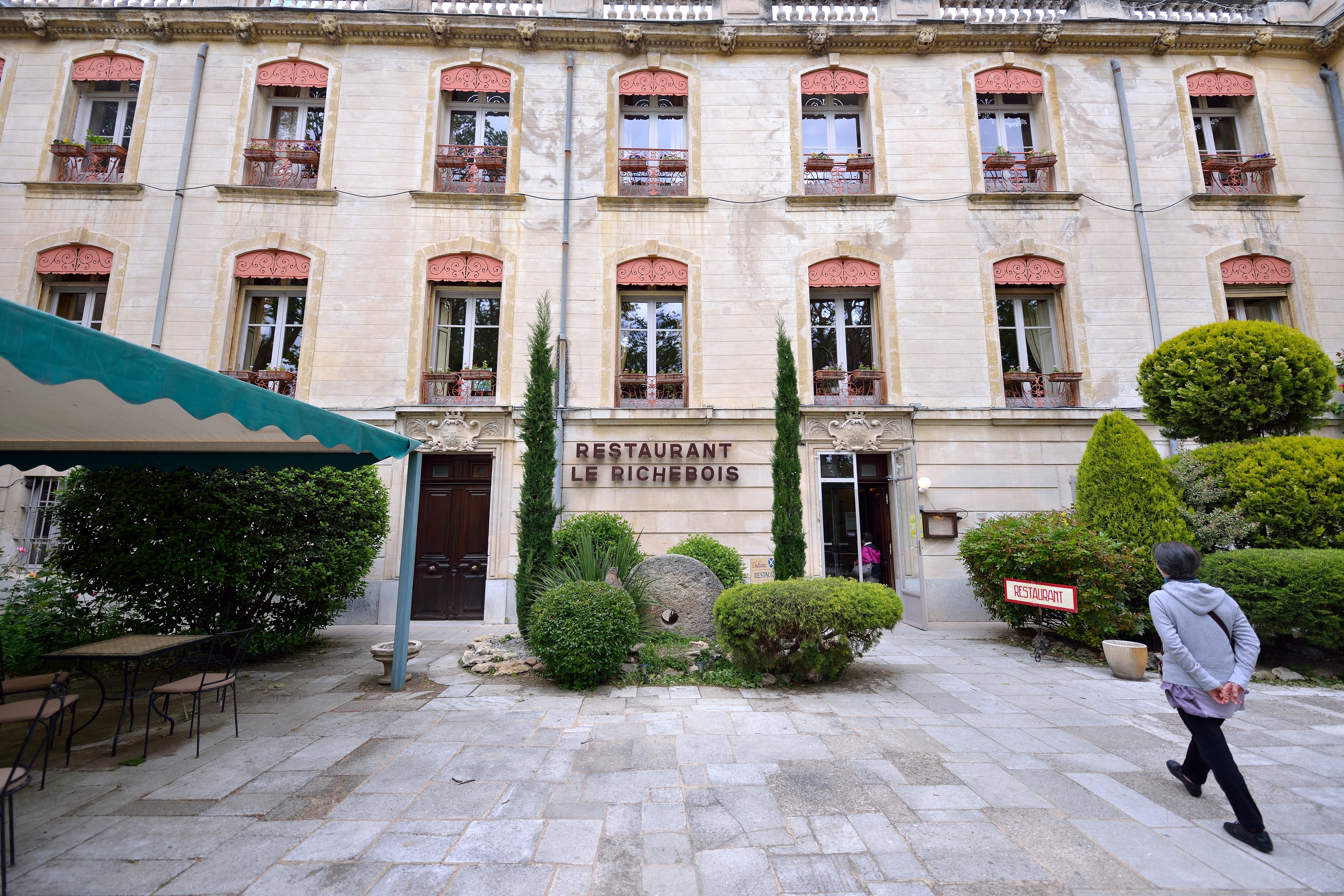 | 昼食のレストラン "シャトー・リシュボア" [Château de Richebois] (12:57) プラタナスの並木道の奥まった所にある、17世紀後半の本格的なプロバンスの建物でレストランを営んでいる。 この建物は、 "ピエール・アンドレ・ド・シュフラン" (Bailli de Suffren) の以前の邸宅であったものを、レストランに改装して使用している。 「北」MAPLay. B |