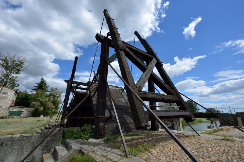 | 復元されたゴッホの跳ね橋 [Pont Van Gogh] (15:07) カナル・ダルル・ア・ブック [Canal d'Arles à Bouc] (アルル・ブック運河) に架けられている復元されたゴッホの橋。 アルルBouc運河は、1820年 ~ 1830年を中心に構築され、1837年にオープンされている。 嘗て、この運河には、オランダ人技師によって、11本の木製橋が架けられていたが、全て破壊され、現在、ゴッホの描いたラングロワ橋 [Le Pont de Langlois] のみが復元されている。 「北北東」MAPLay. B |