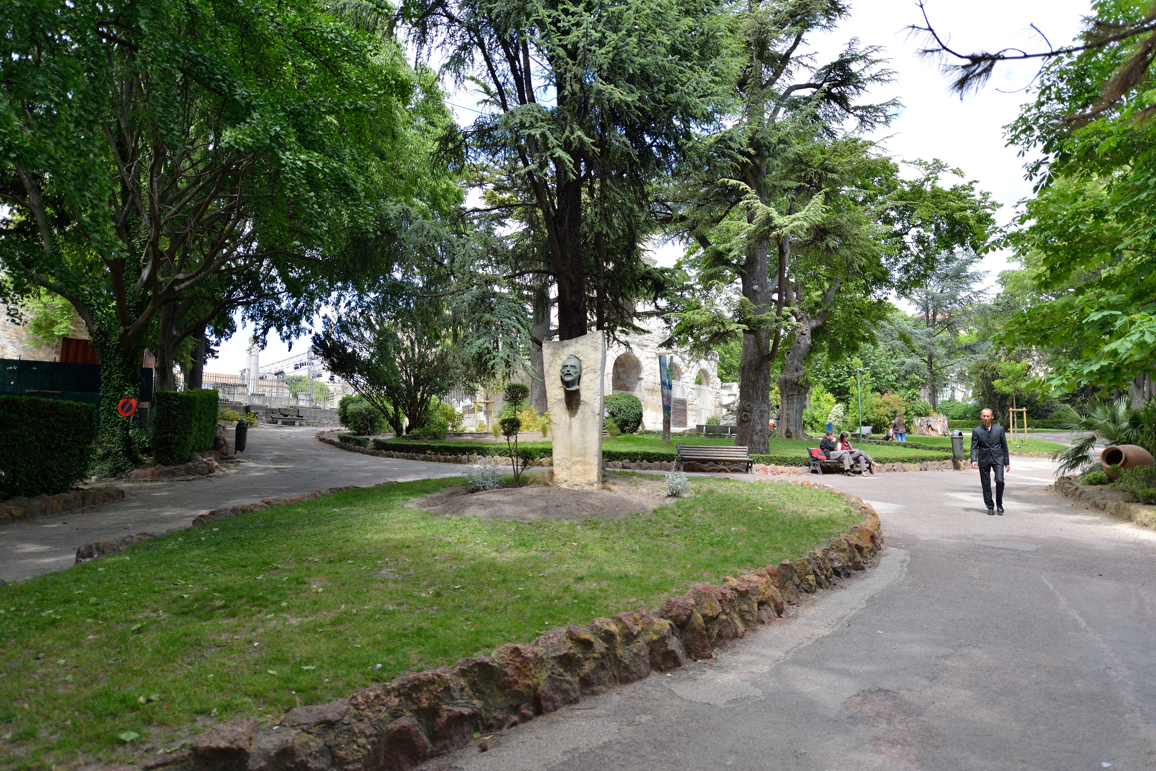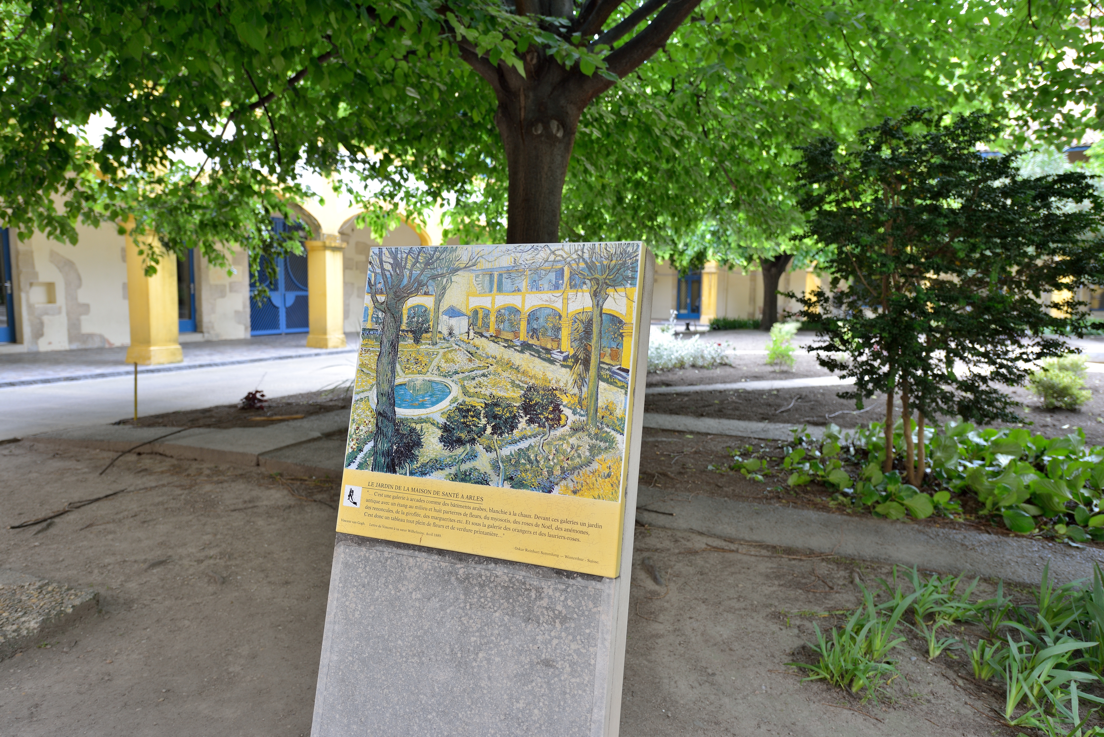| ジャルダン・エテ [Jardin d'été] (夏の庭園) (15:22) 1866年に設立した公園。 この沢山の大きな木の中には、その当時、日本から輸入されてきた銀杏の木もある。 銀杏の木は、ゴッホ像の左の道路標識の立っている所にある。 1888年、ゴッホはこの公園で、 " L'entrée des jardins publics à Arles" (アルルの公園への入り口) と言う作品を描いている。 「北東」MAPLay. B |