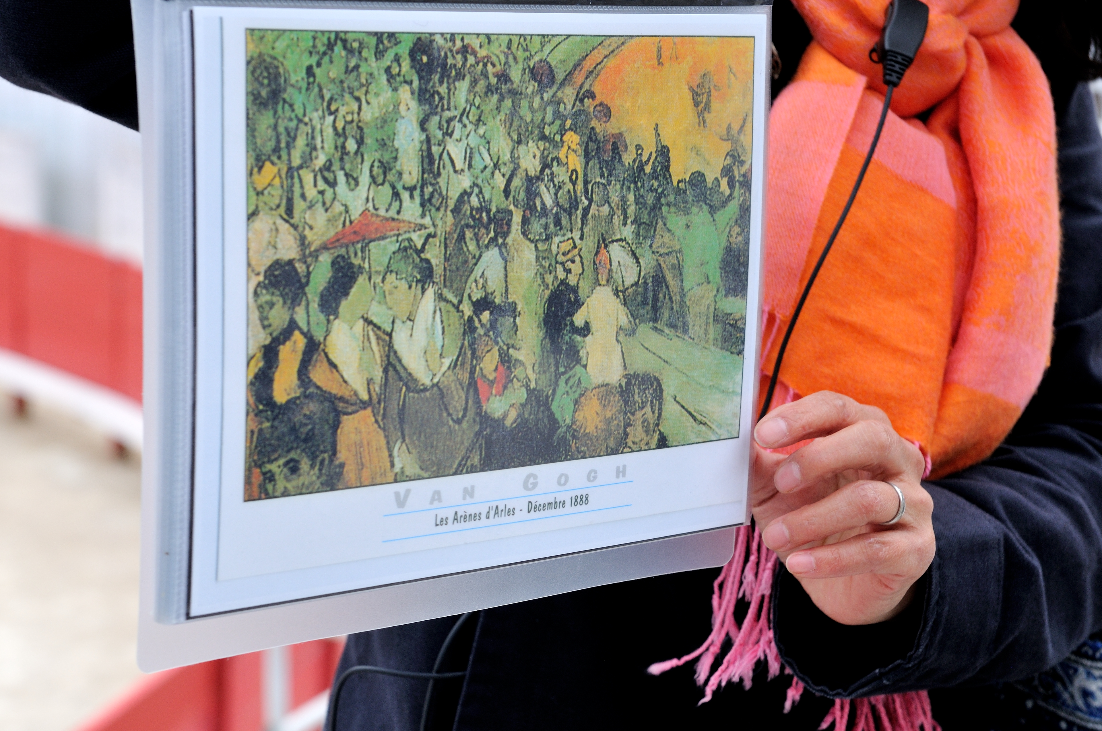 アルルの競技場 [Les Arènes d'Arles] (15:55) 1888年12月にゴッホが描いた作品で、キリストの復活祭 (4月) の時に行われた闘牛の様子が描かれている。 MAPLay. C |