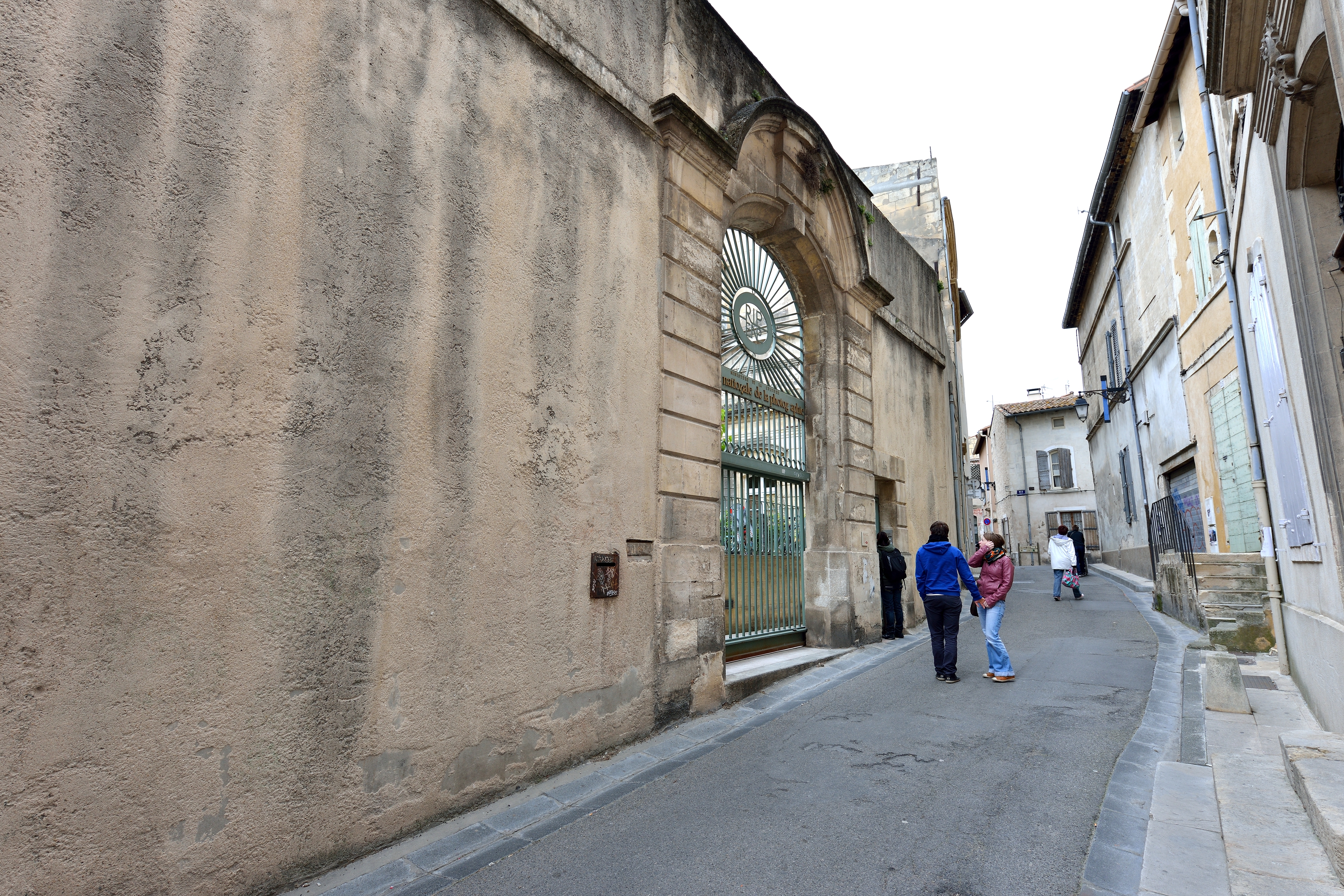 | エスパス・ヴァン・ゴッホ [Espace Van Gogh] (16:47) ホテル・デュ [HOTEL-DIEU] (神の館) と書かれた入口がある。 1573年からある建物で、嘗ては、アルル市立病院だった。 ゴッホは、ここで4ヶ月間療養していた。 「西南西」MAPLay. D |