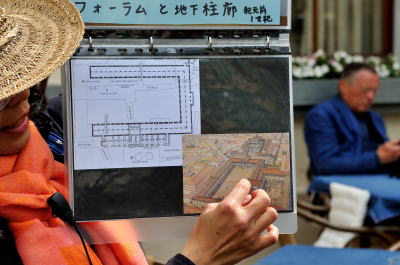 | フォーラム (フォルム) [Forum] の図面 (16:27) 嘗て、大きな回廊の奥には神殿があった。 その跡地は、ミストラル氏が創設したアルラタン博物館の中庭に位置している。 MAPLay. D |