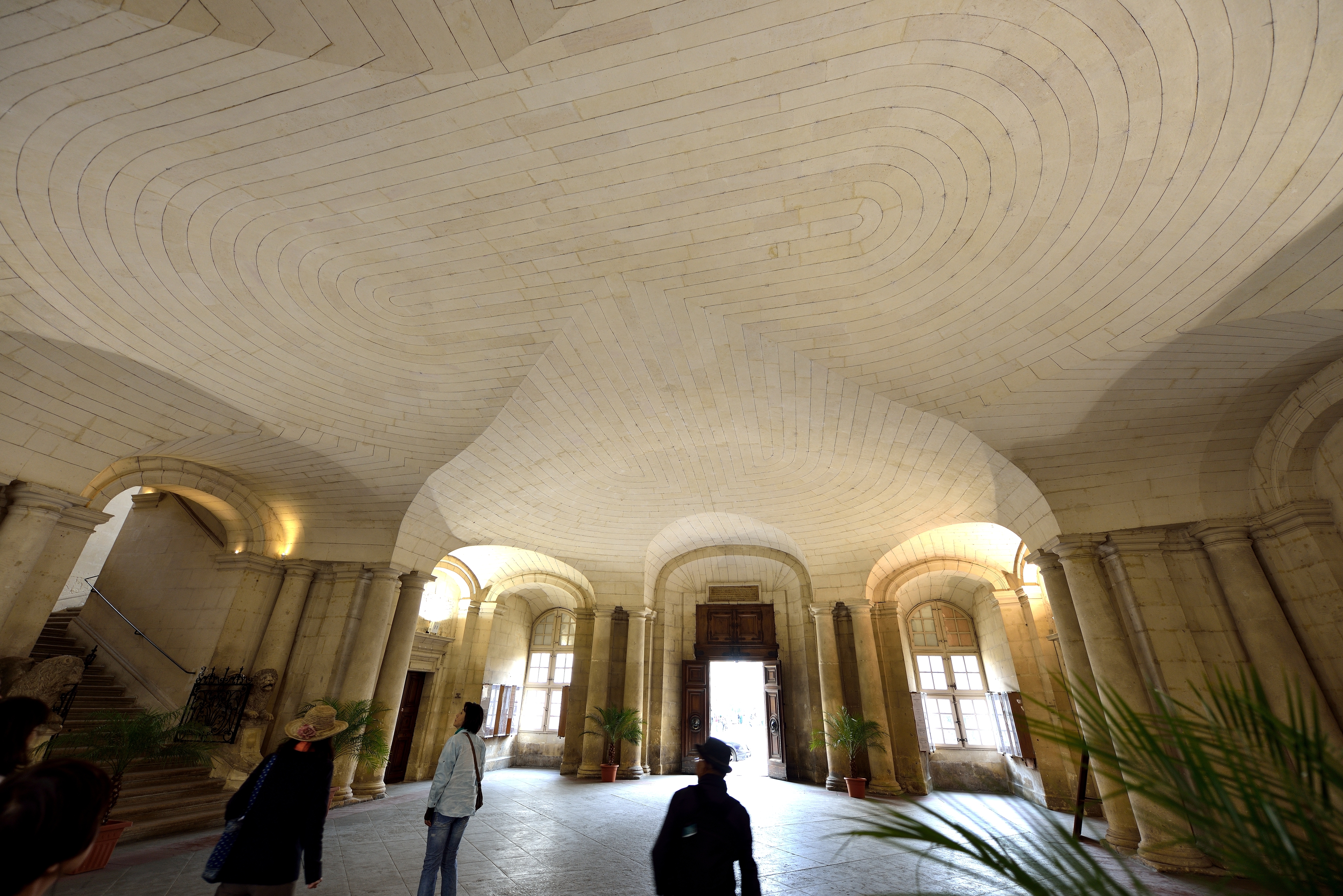 | アルルの市庁舎 [Mairie d'Arles] (16:29) 17世紀の建物で、 ヴェルサイユ宮殿の一部を設計した事で知られる、ジュール・アルドゥアン=マンサール [Jules Hardouin-Mansart] が設計している。 特に有名なのは、大きなホールで、ホールの真ん中には柱は無く、周囲の20本の柱で天井高を保っている。 天井の模様や曲線美などが高く評価されている。 「南」MAPLay. D |