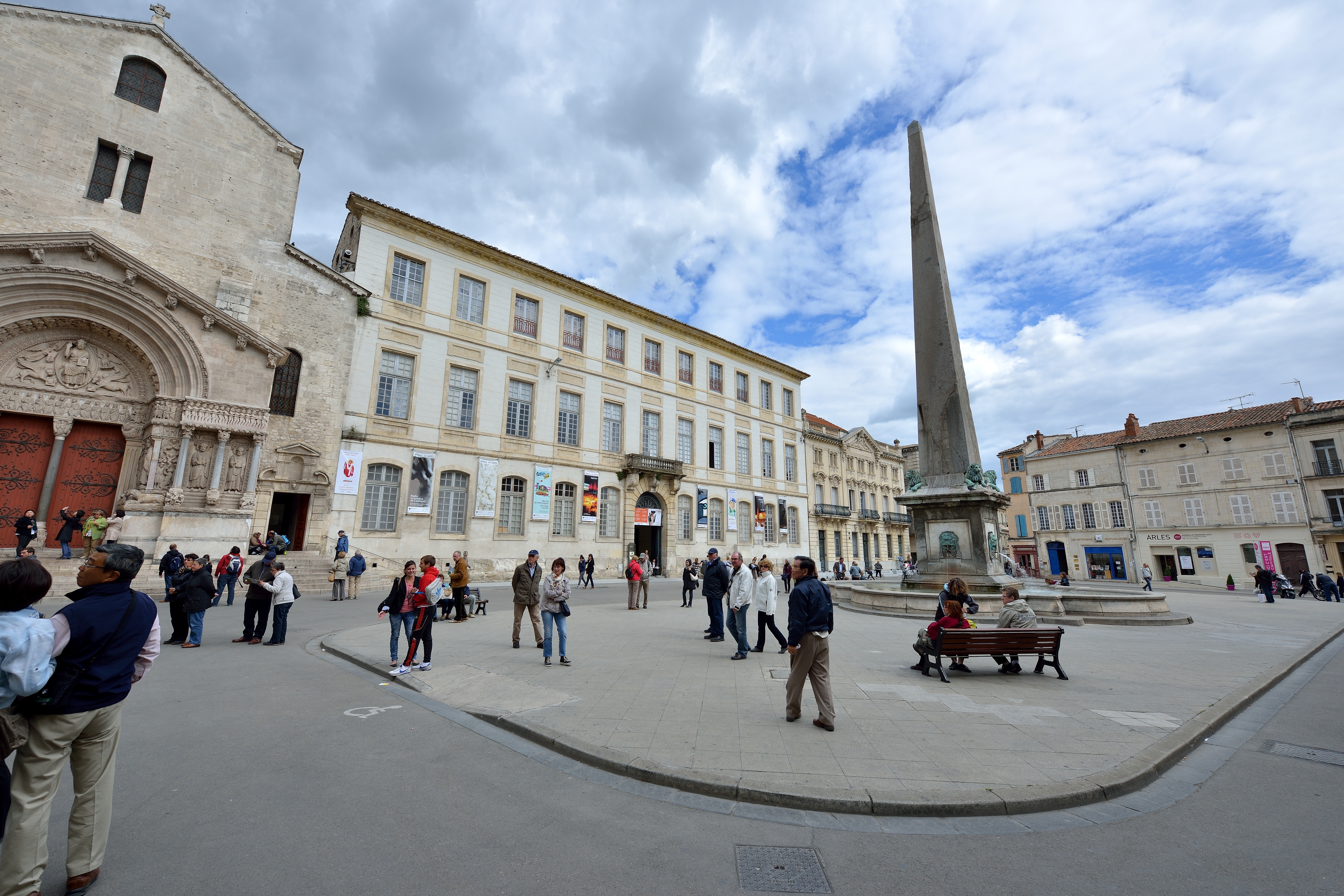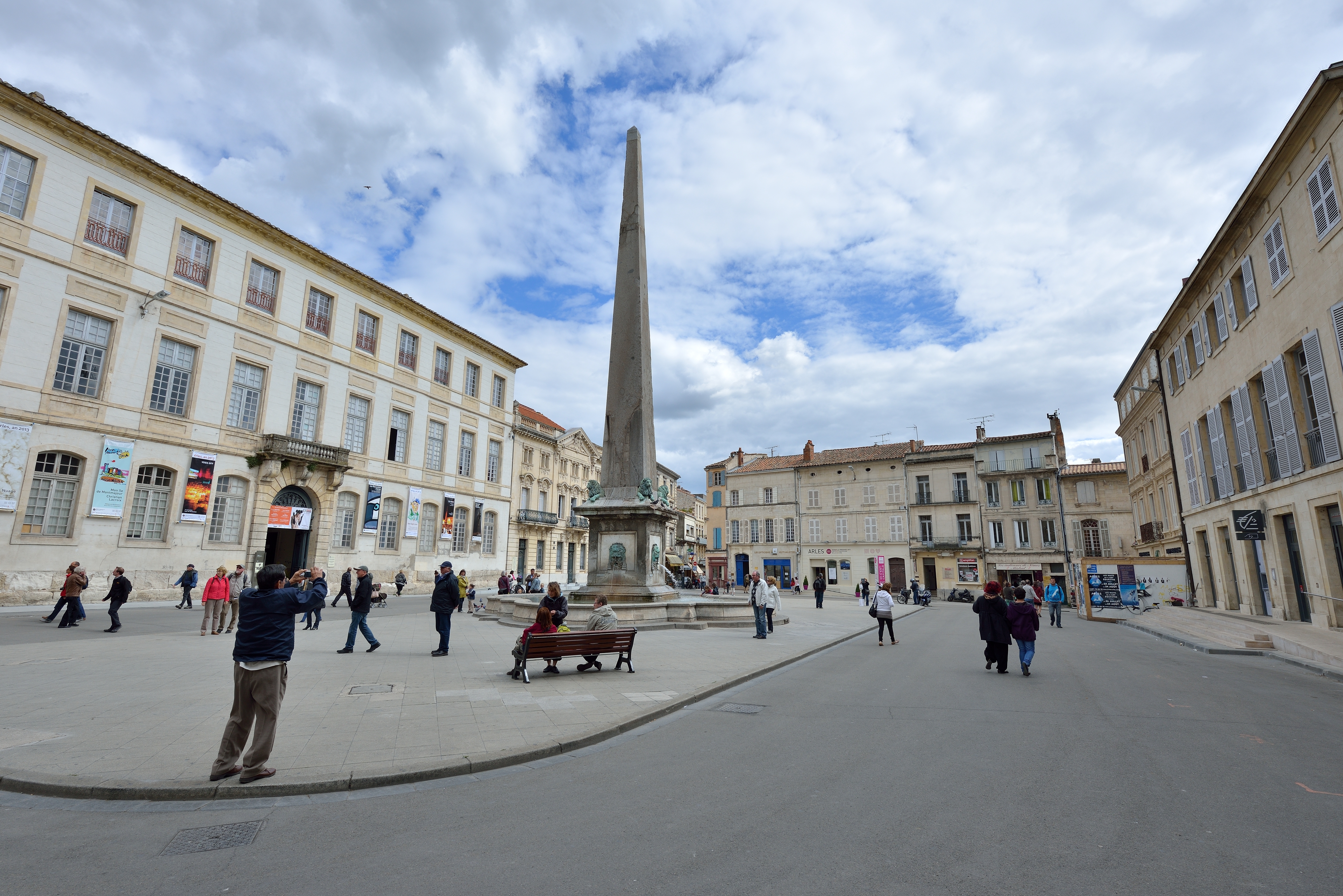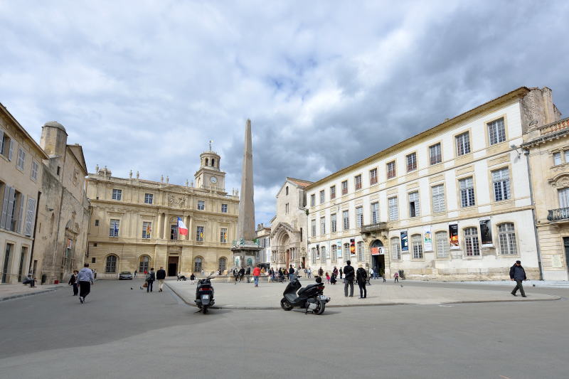 | レピュブリック広場 [Place de la Republique] (共和国広場) (16:42) 広場の中央に建っているオベリスクは、4世紀の頃にローマ人によってアルルで造られ、近くにあった競馬場の中央に立てられていたもので、18世紀の頃に発掘され、この広場に移された。 「北北東」MAPLay. D |