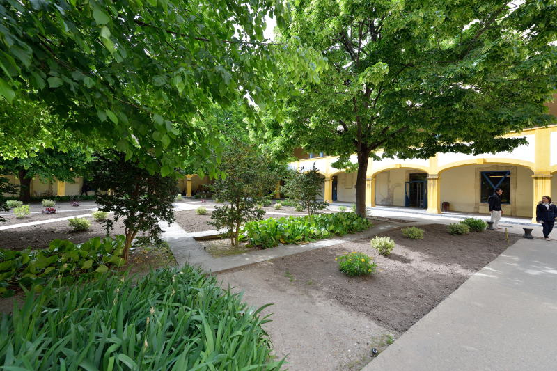 | エスパス・ヴァン・ゴッホ [Espace Van Gogh] (16:48) ゴッホが4ヶ月間療養生活を送ったアルル市立病院の跡。 現在は図書館、店舗などが入った総合文化センターになっている。 中庭はゴッホの絵「アルルの療養所の庭」に基づいて復元されている。 「北西」MAPLay. D |