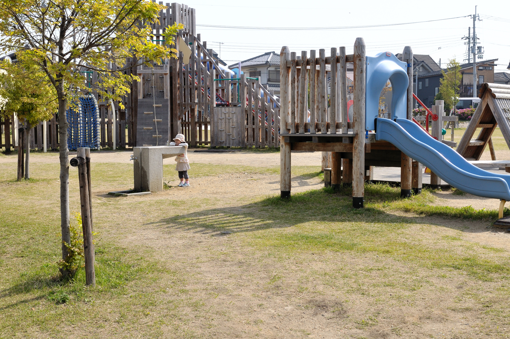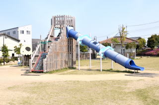 | 八木遺跡公園中央出入口付近からの展望 注 滑り台は、2025/11/中旬 に撤去されています。 |