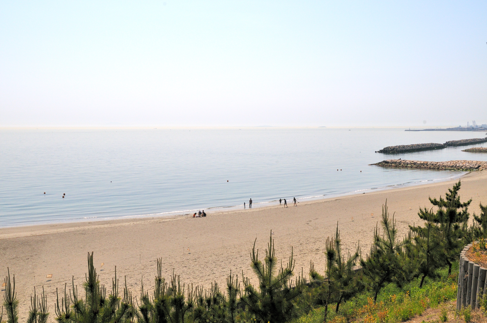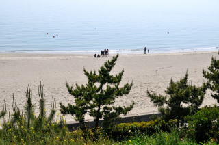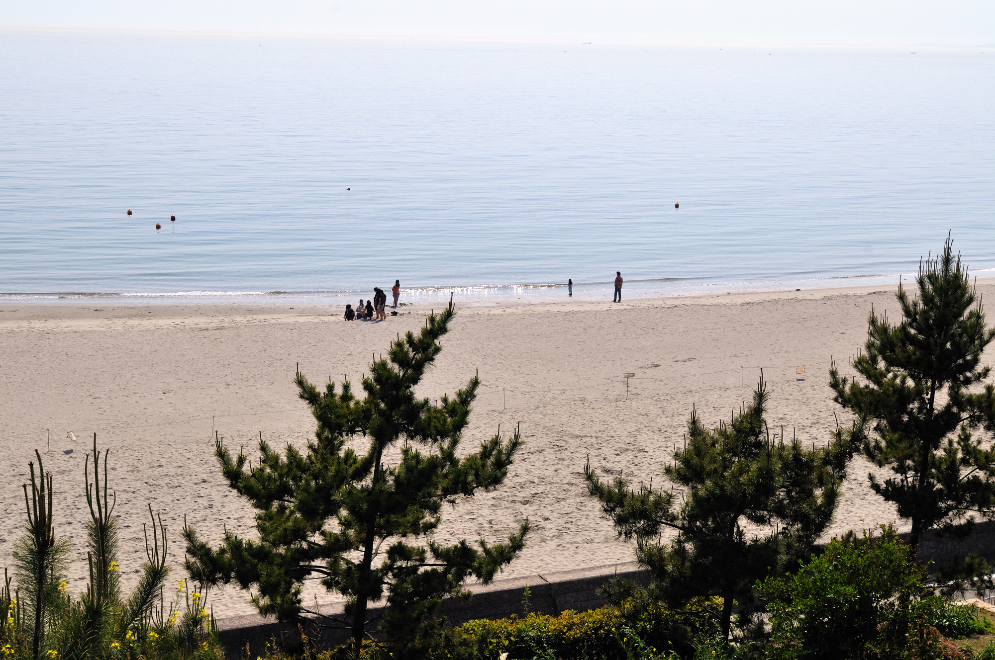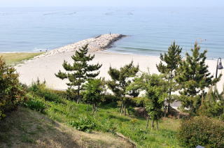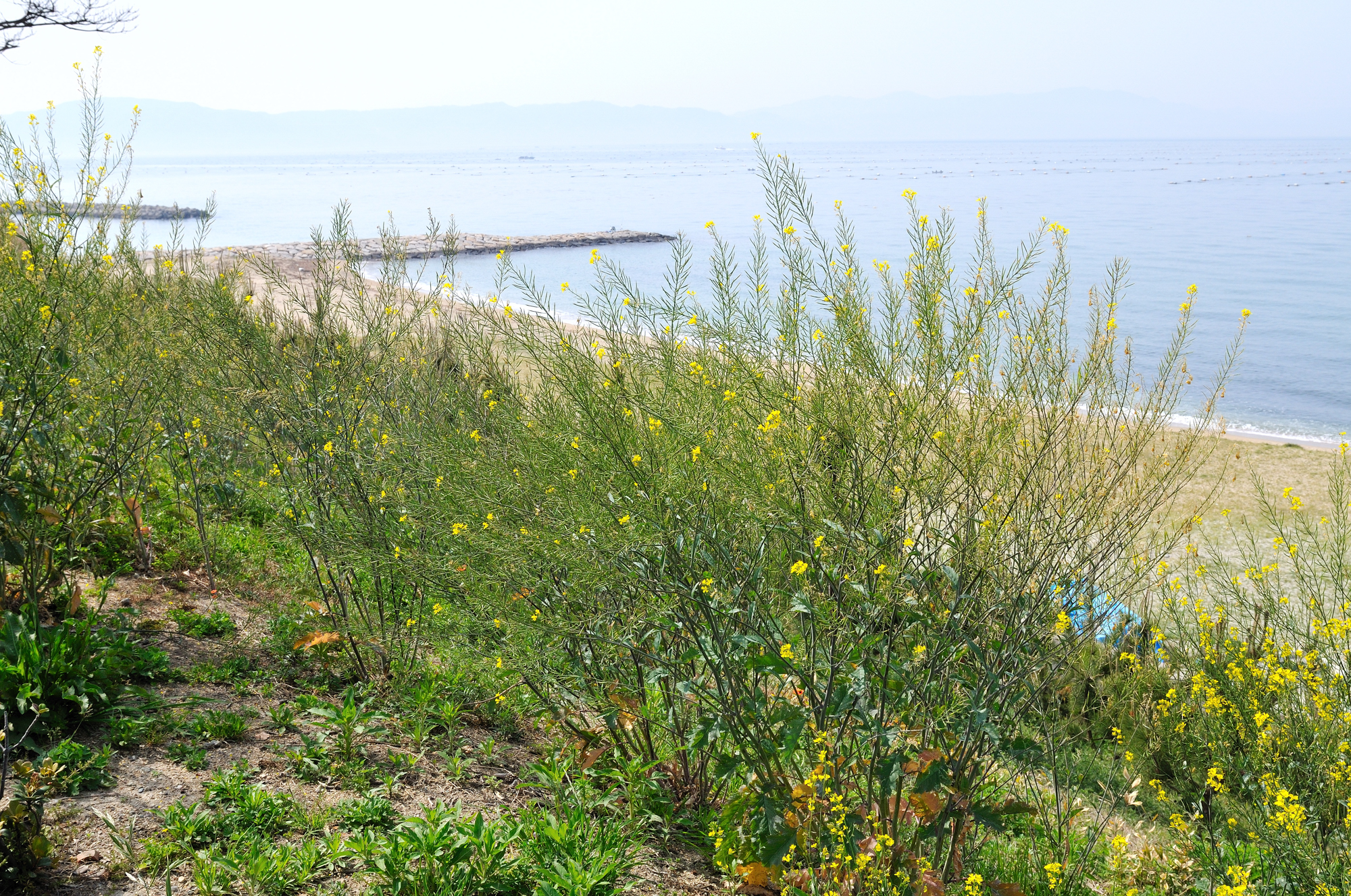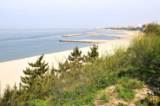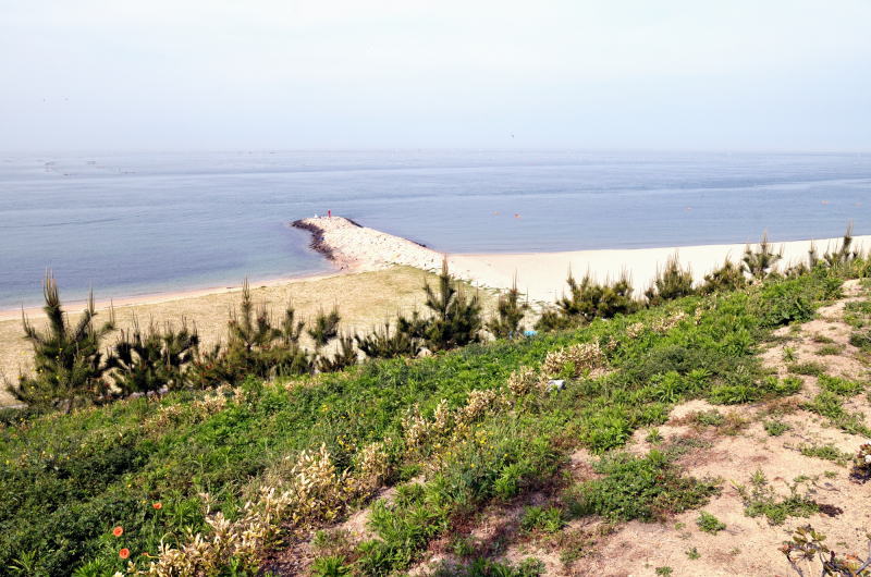 この海岸の沖合では、秋から春にかけて "海のり" の養殖が行われている。