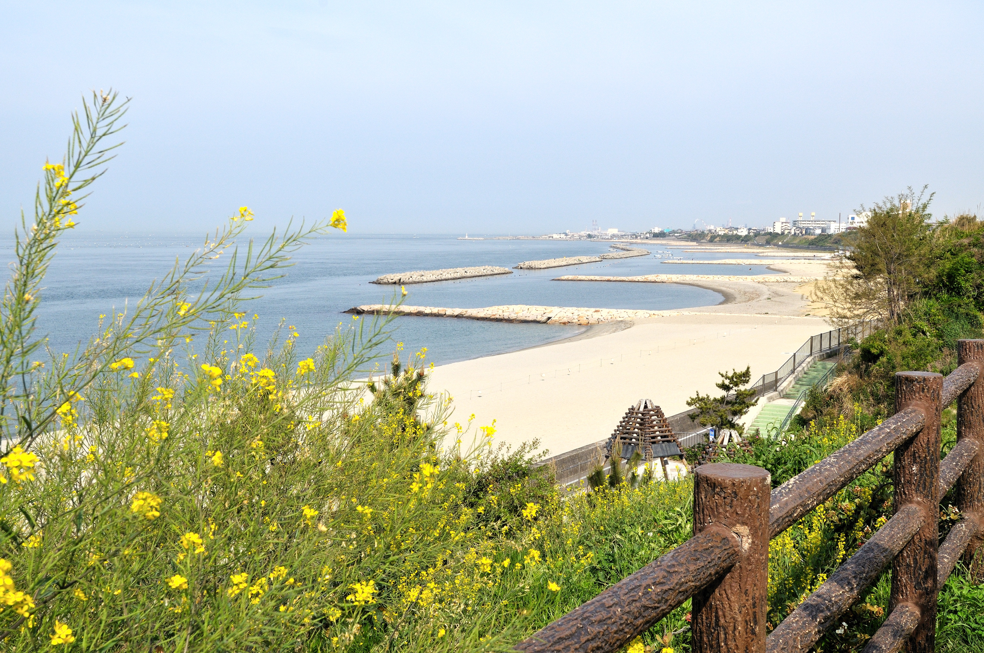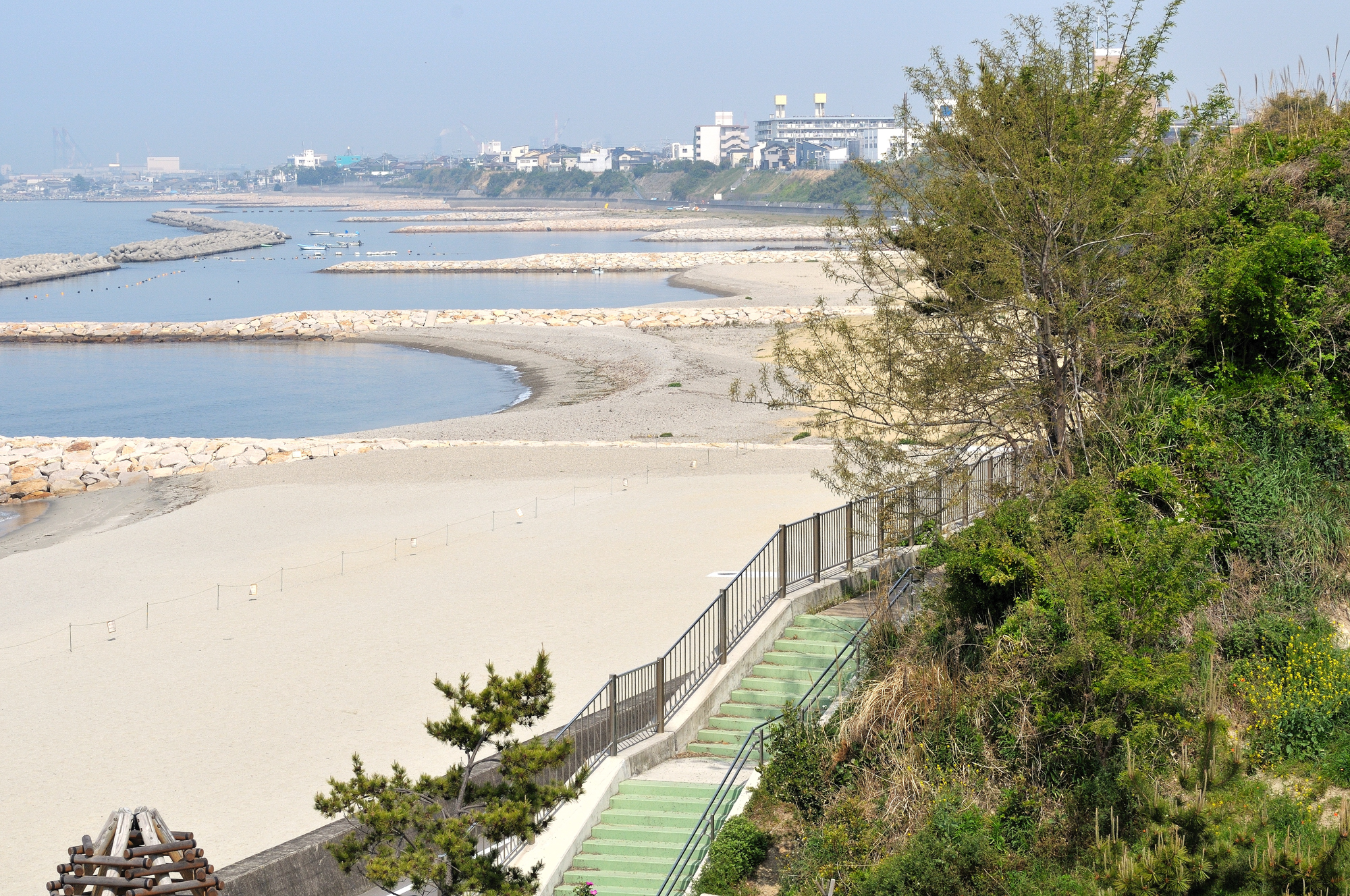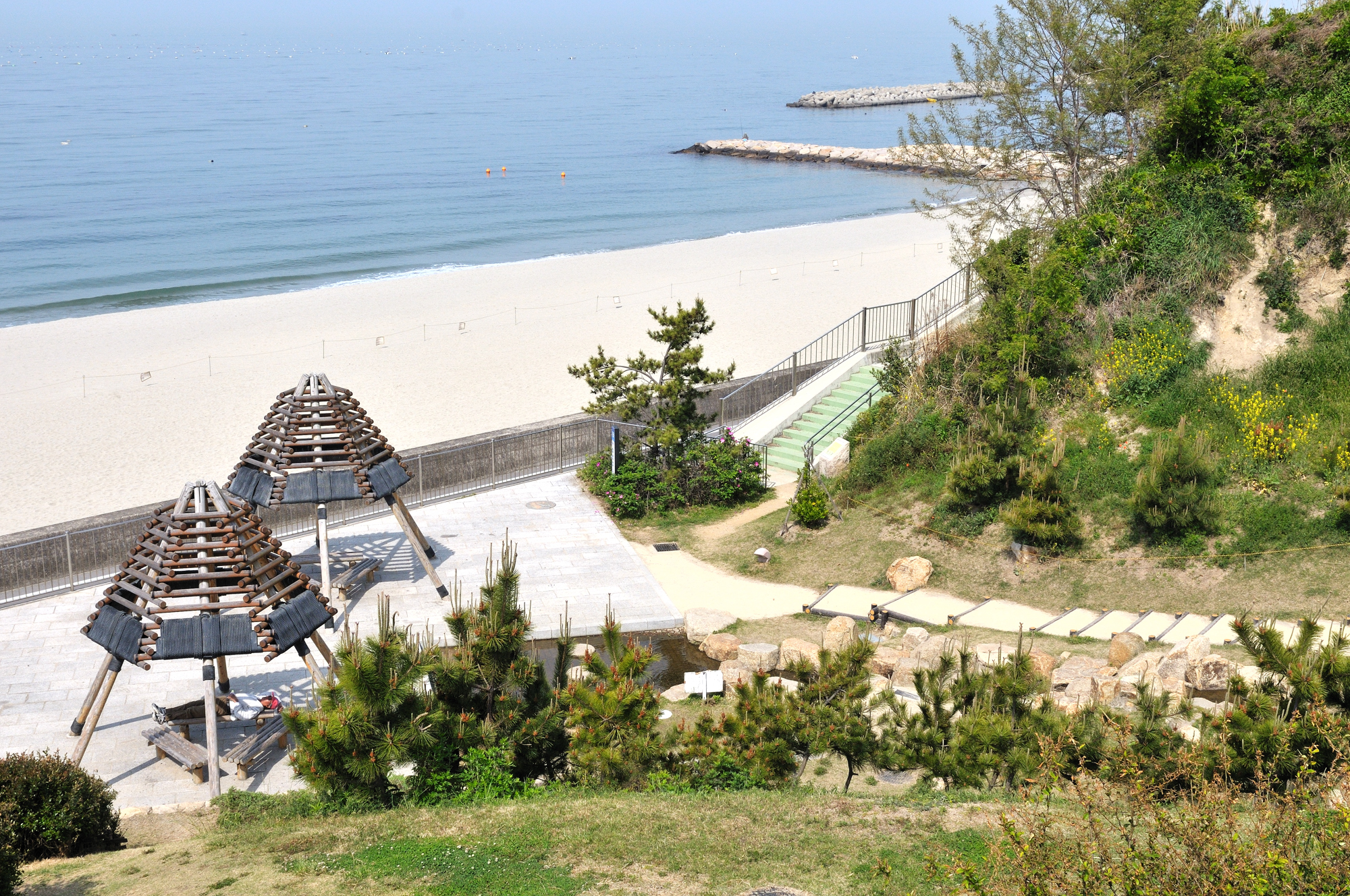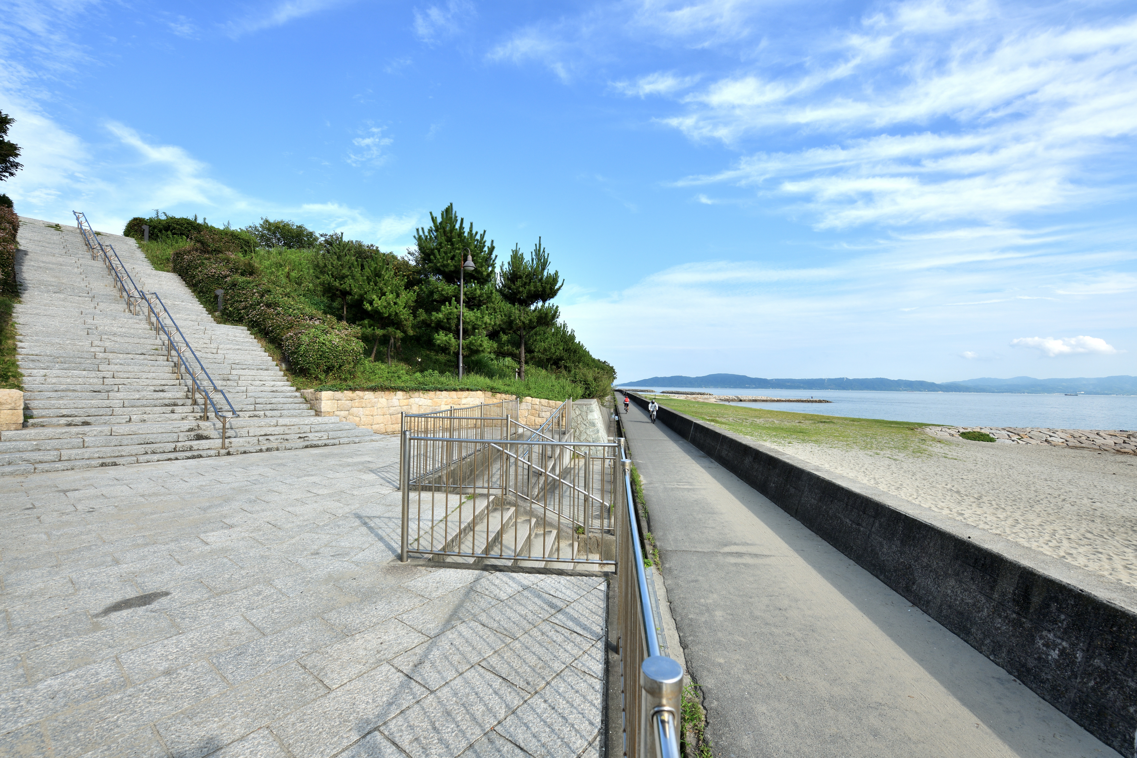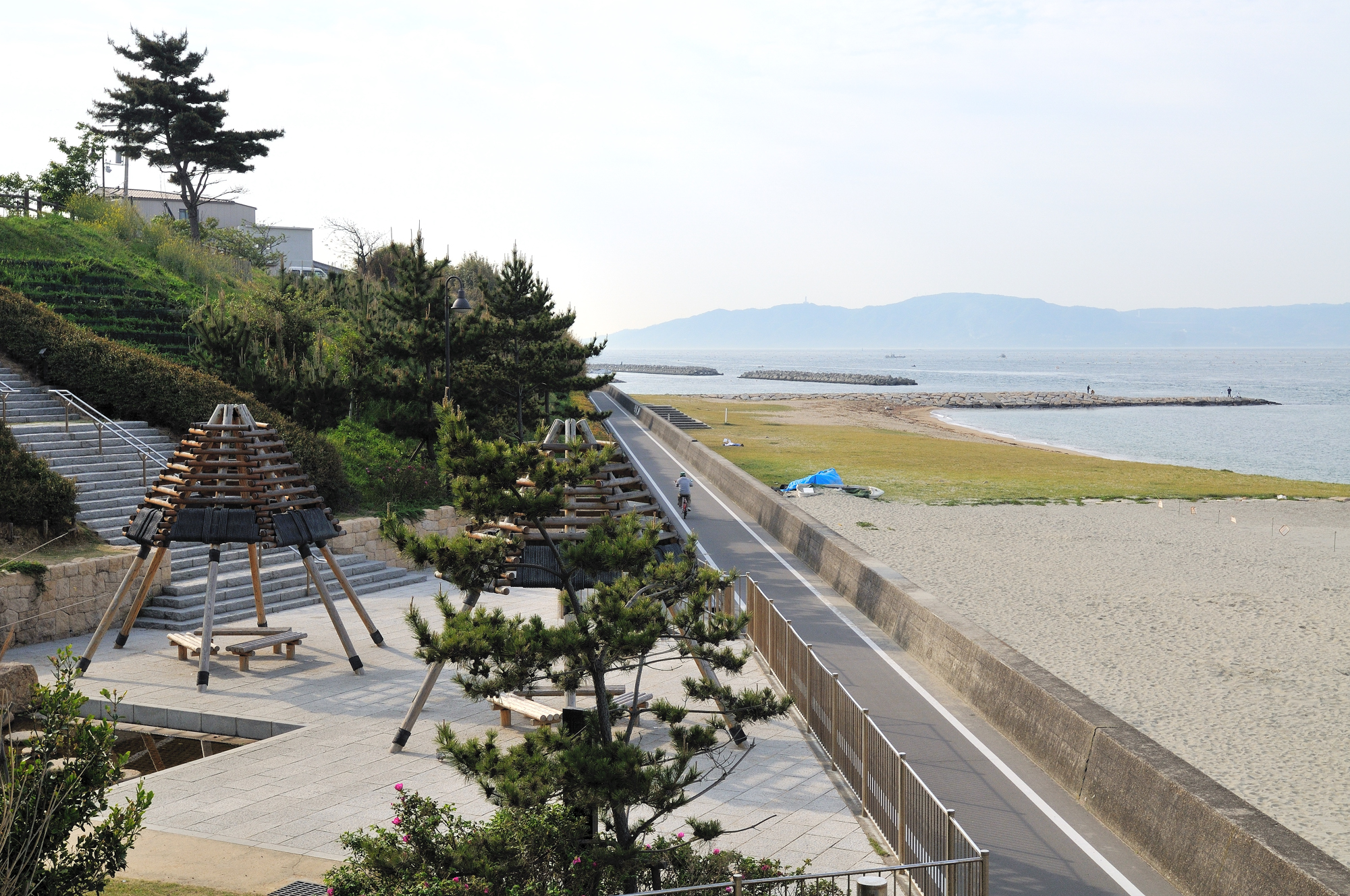 | 公園下段は浜の散歩道(播磨サイクリングロード)へ通じている MAP G |
