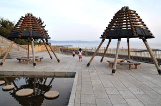 | 八木遺跡公園は、明石市の屏風ヶ浦海岸に位置する公園で、近くにある明石原人や明石象の化石発掘地にちなんで、平成16年春にオープンされました。 山陽電車の中八木駅から徒歩で約5分、JR大久保駅南口から(たこ)バス利用で約23分の位置にあります。 公園には滑り台などの遊具、水飲み場、手洗い場、小川、トイレなどが設備が整っており、家族連れでも充分、楽しむことが出来ます。 また、公園の直ぐ南側では淡路島を望む事が出来、晴れた日には四国や小豆島、家島などの島影を望む事が出来る、すばらしいロケーションに位置しています。 すぐ下の屏風ヶ浦海岸へ下りれば、広い砂浜で、リクレーションなど、様々なイベントを楽しむ事が出来ます。。 |