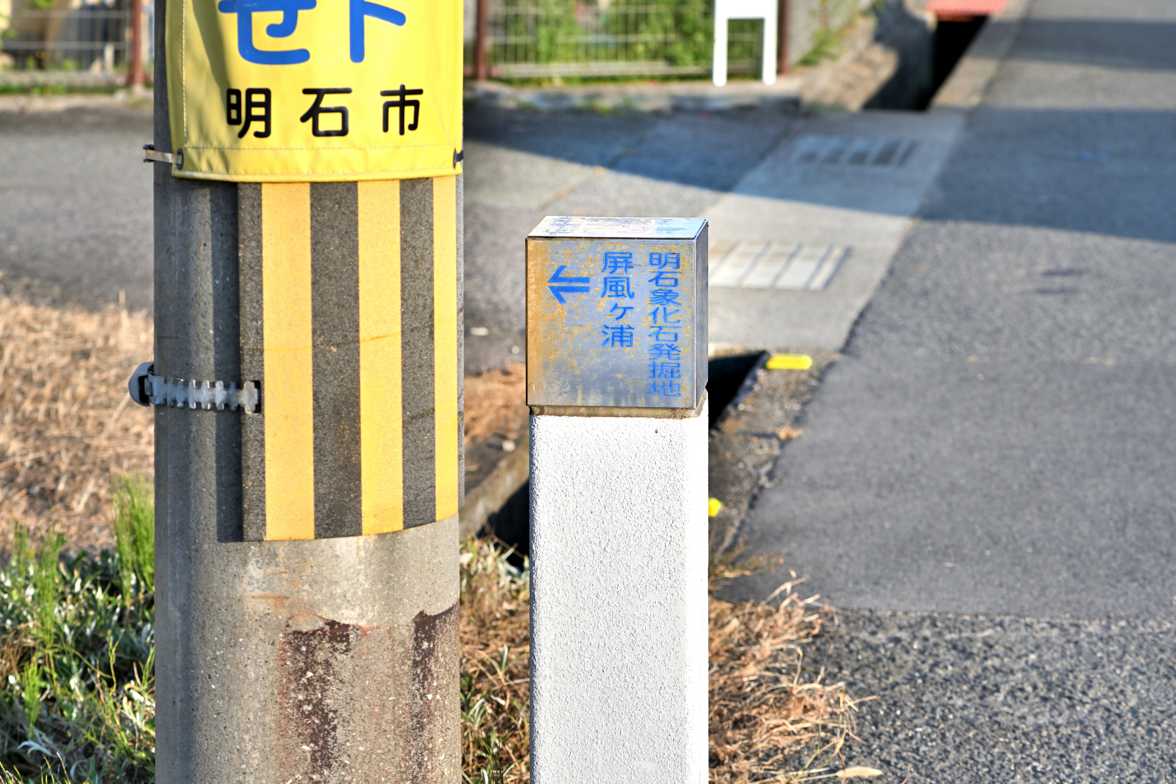 | 屏風ヶ浦 (ビョウブガウラ) にある、明石象化石発掘地への道標 | |