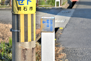 屏風ヶ浦、明石象化石発掘地への道標 撮影方向 (南南西) MAP d |