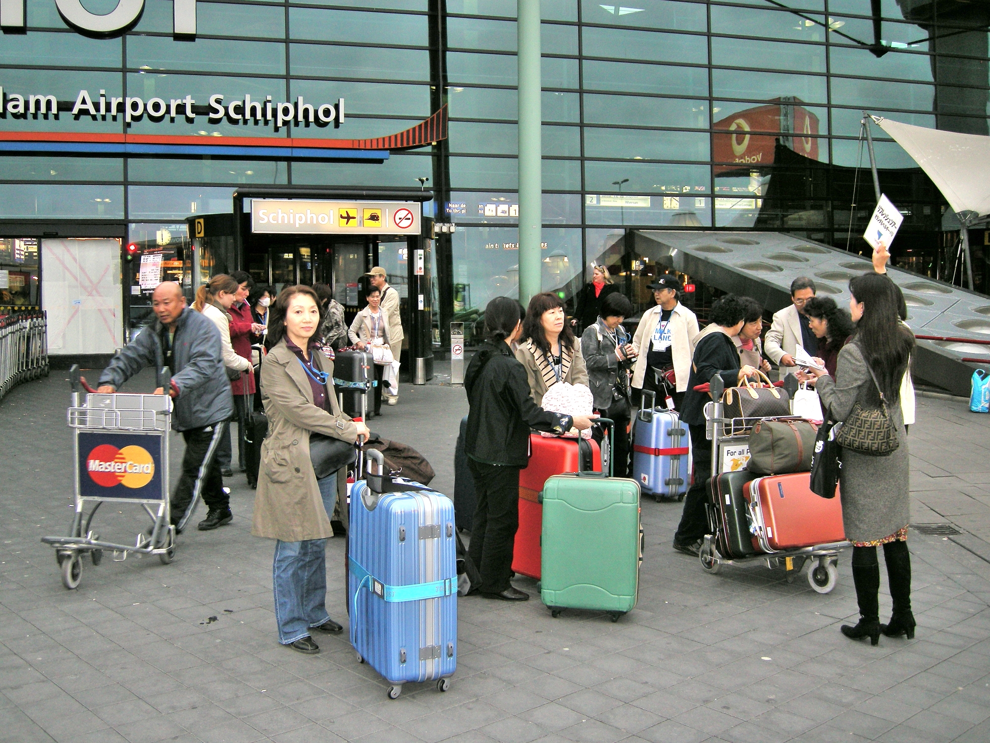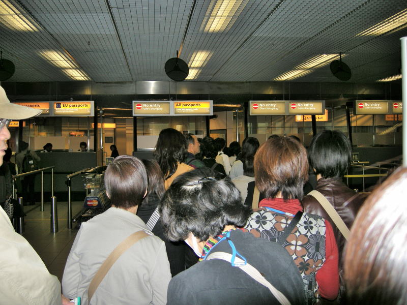 アムステルダム・スキポール空港 [Amsterdam Airport Schiphol] で入国審査待ち。